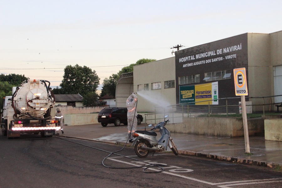 A gerência de Saúde do município de Naviraí desenvolveu nesta madrugada de sábado, dia 04 de abril, mais um trabalho de desinfecção em locais com maior aglomeração de pessoas, ou seja, nos principais pontos comerciais da cidade, em especial na Rua Alagoas e Avenida Weimar Torres. Segundo o gerente de Saúde Welligton Santussi, “nosso trabalho nessa madrugada foi realizado graças a uma parceria firmada com a Sanesul, através da empresa LOG Engenharia e mais uma vez também com apoio da Usina Rio Amambai Agroenergia. Eles nos cederam os caminhões pipa e usamos só hoje em torno de 20.000 litros de água para fazer a desinfecção programada e necessária”, disse ele.