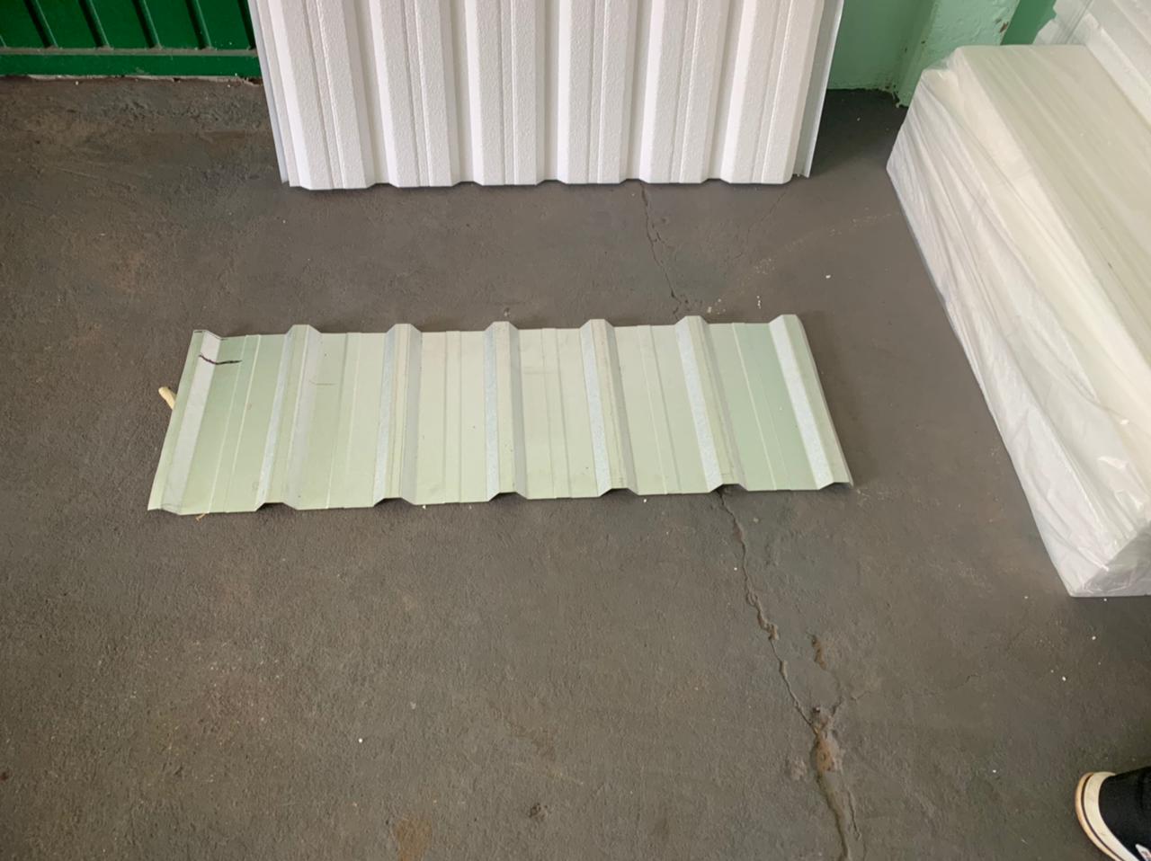 A indústria Isoterms tem capacidade de fabricar 100 mil metros por mês de “telha sanduíche”, nome popular da telha termoacústica. “Esta telha é utilizada para aumentar o isolamento térmico e acústico de uma obra, sendo composta por duas chapas com um material metálico (zinco) e isolante térmico no meio, que pode ser o isopor ou o poliuretano”, explicou Vanderson de Souza.