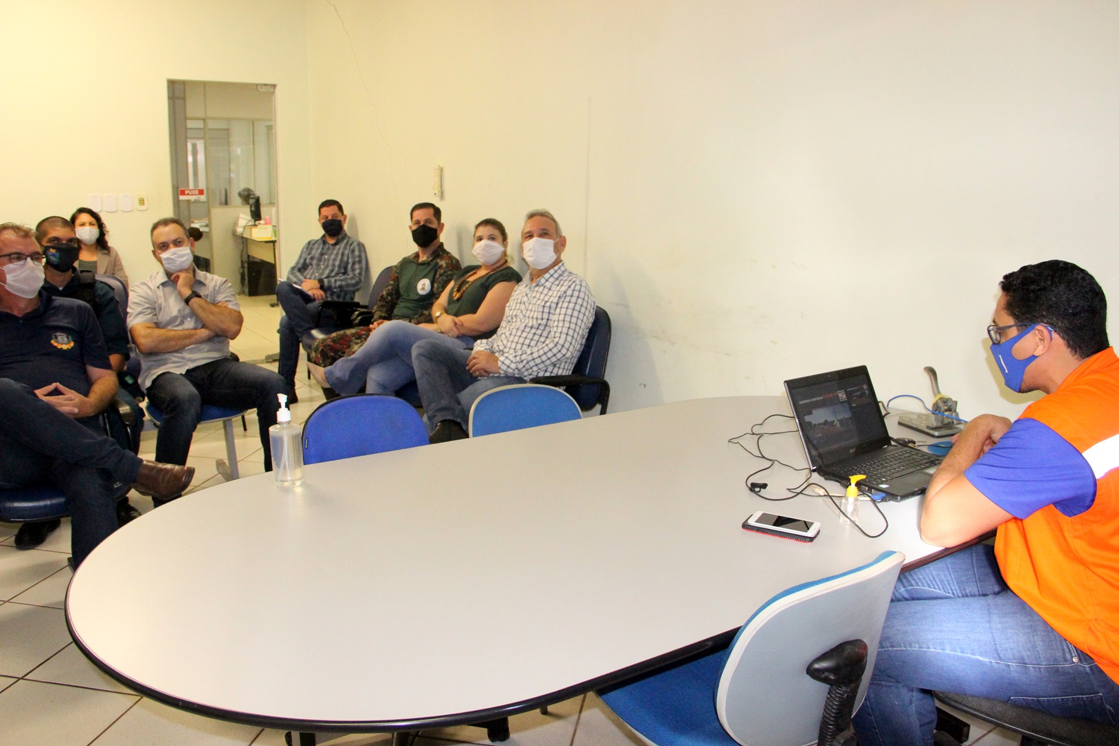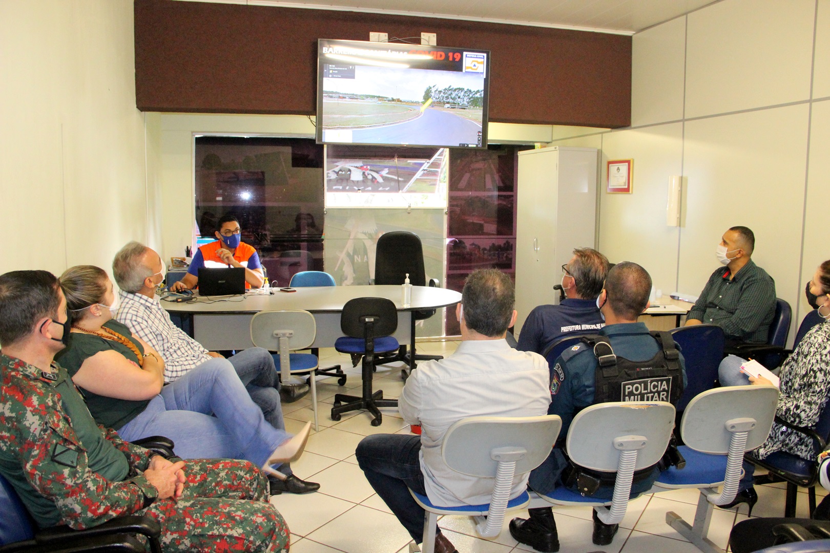 Aconteceu na manhã desta terça-feira (09) na Prefeitura de Naviraí, uma reunião entre o prefeito Dr. Izauri Macedo e representantes das instituições policiais de nossa cidade, como, Corpo de Bombeiros, Polícia Civil, Polícia Militar e Polícia Militar Ambiental, juntamente com a Vigilância Sanitária e Epidemiológica, além das gerências de Saúde, Meio Ambiente e Obras e, ainda, a Defesa Civil do município. Segundo o prefeito em comum acordo os parceiros definiram que em quatro pontos estratégicos devem funcionar barreiras sanitárias com a finalidade de fazer prevenção contra o Coronavírus, fazendo a aferição de temperaturas de quem vem de outras localidades para entrar na cidade.