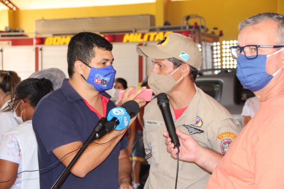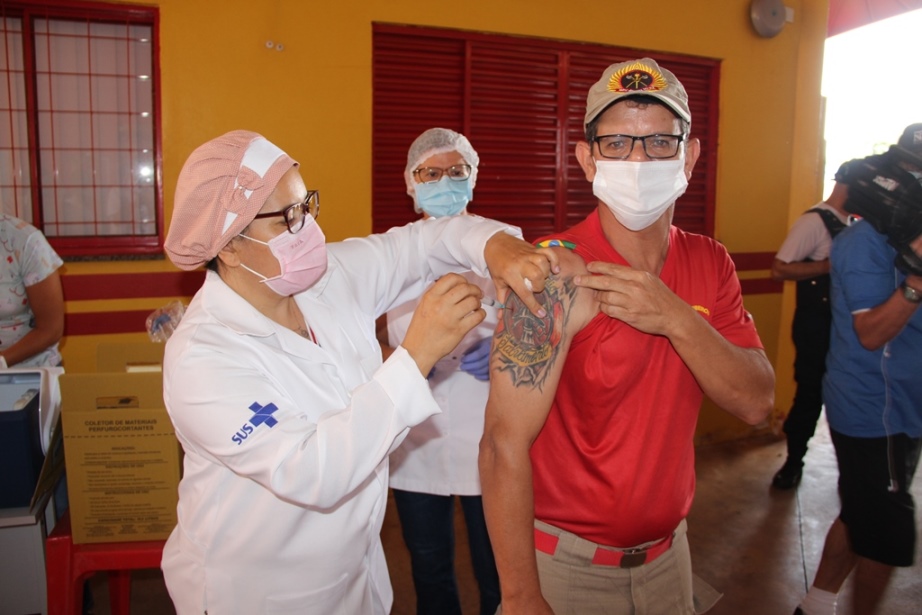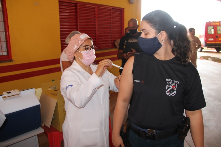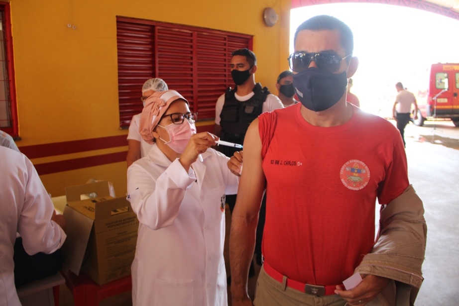 Rhaiza Matos: “Esta ação é o resultado da soma de esforços, pela saúde e pela vida”, afirmou a prefeita muito contente em atender reivindicação dos policiais e dos bombeiros que pediram prioridade para serem vacinados.