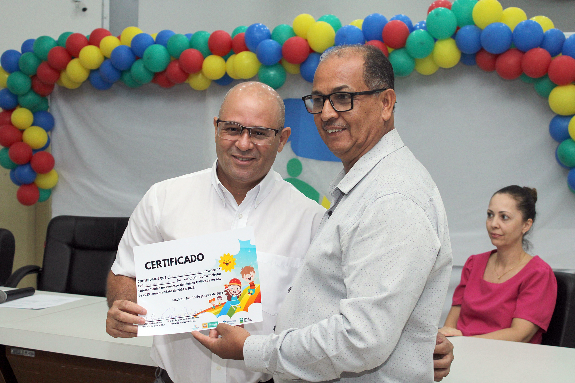 Foram diplomados e empossados os seguintes Conselheiros Tutelares: Adriano de Pontes Souza, Alex Alves Miranda, Francismar de Jesus Ferreira, Osmar Alves de Oliveira Sobrinho e Ruthi Lopes dos Santos. Esses cinco membros agora assumem a responsabilidade de zelar pelos direitos e proteção das crianças e adolescentes de Naviraí.