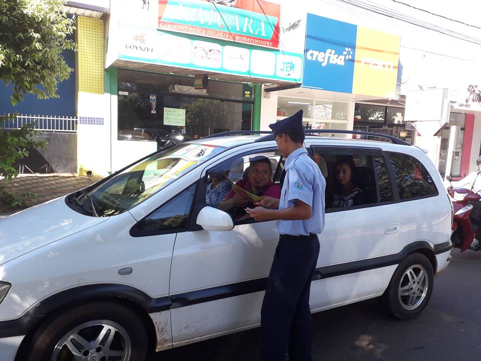 O Núcleo Municipal de Trânsito em parceria com o 2º GPM de Trânsito e a Guarda Mirim de Naviraí realizou na manhã desta sexta-feira (1º) uma blitz educativa com a entrega de abanicos na Avenida Weimar Gonçalves Torres.