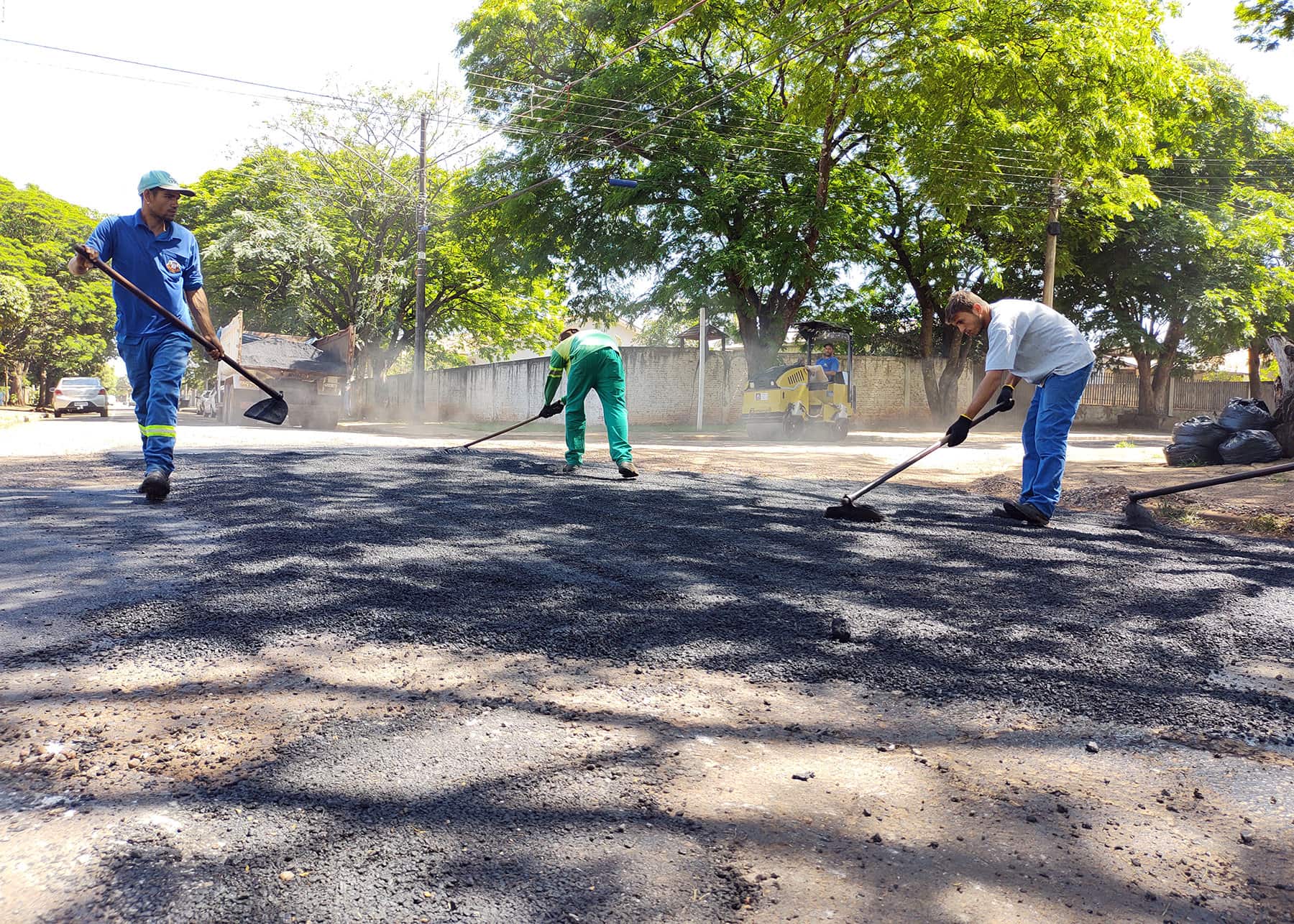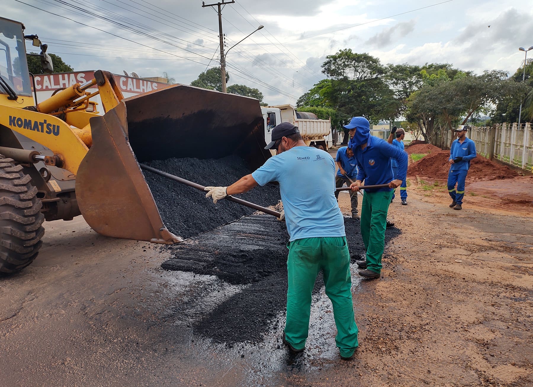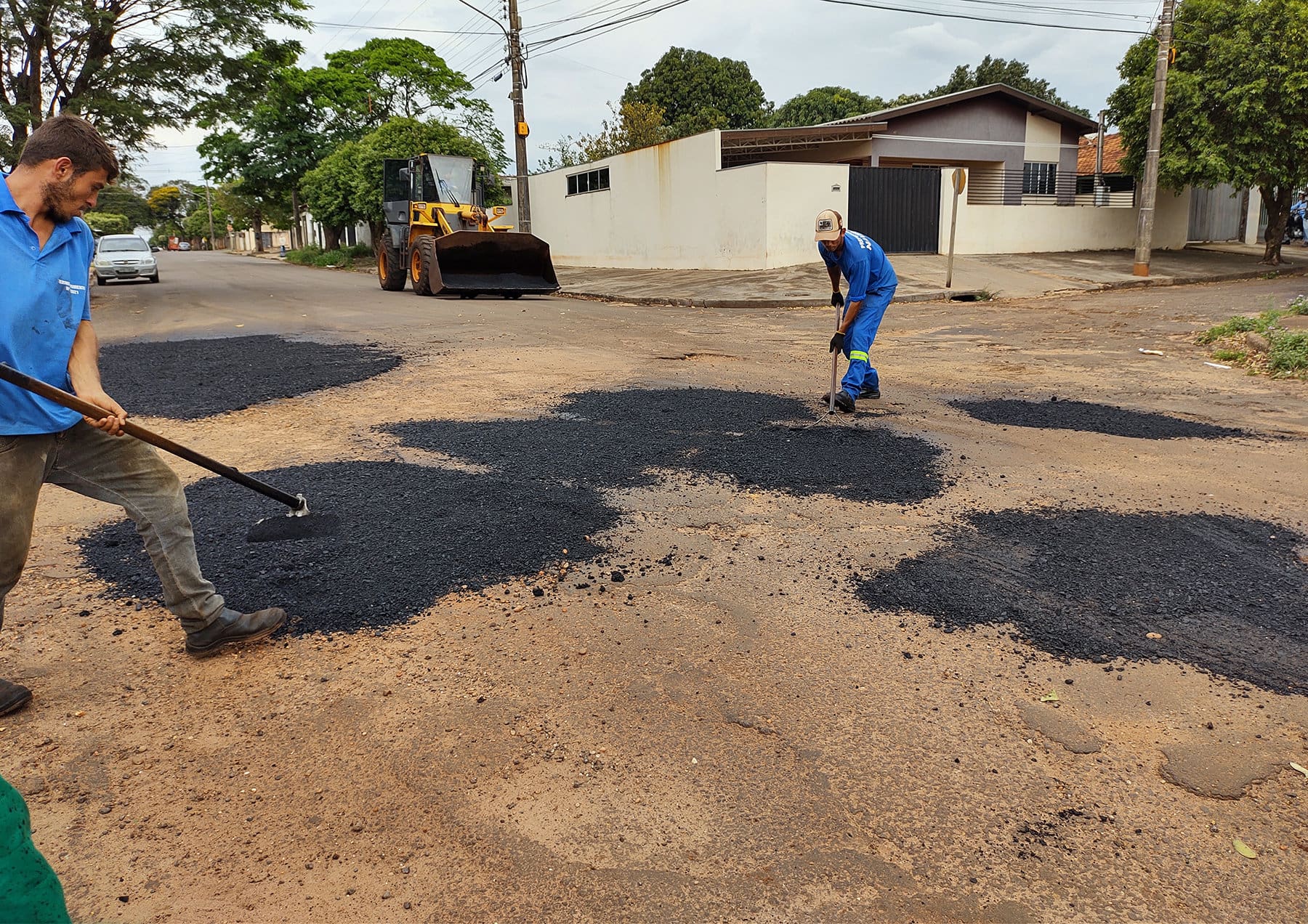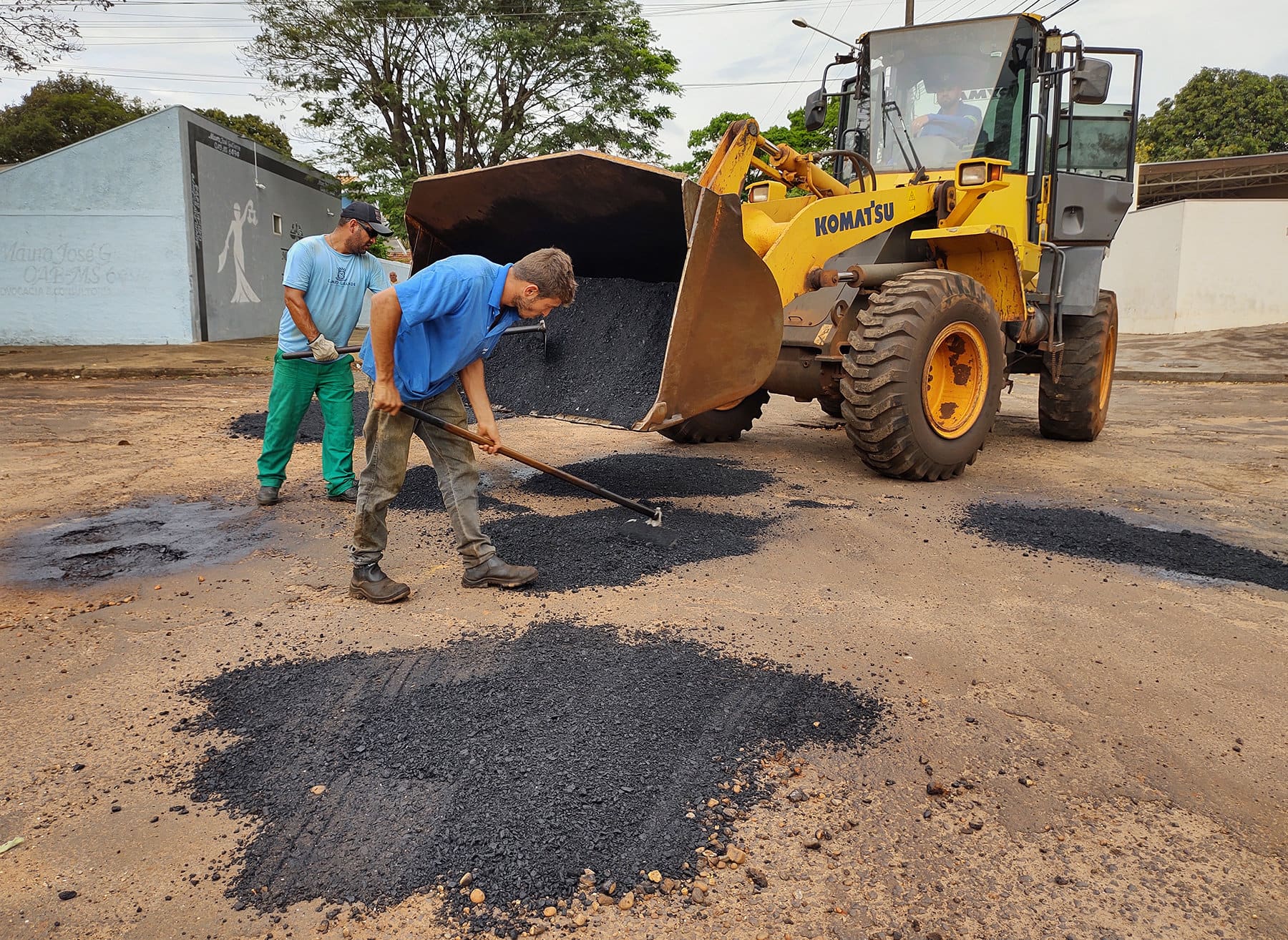 Para atacar estes problemas é utilizado massa asfáltica a quente (Concreto Betuminoso Usinado Quente) que é fornecido por uma empresa contratada. Para suprir os dias de chuva em que a usina de massa a quente da empresa contratada não roda e consequentemente não fornece o produto, é utilizado pela equipe massa a frio (Concreto Betuminoso Usinado Frio) produzido pela usina da Prefeitura Municipal e assim o trabalho não para.