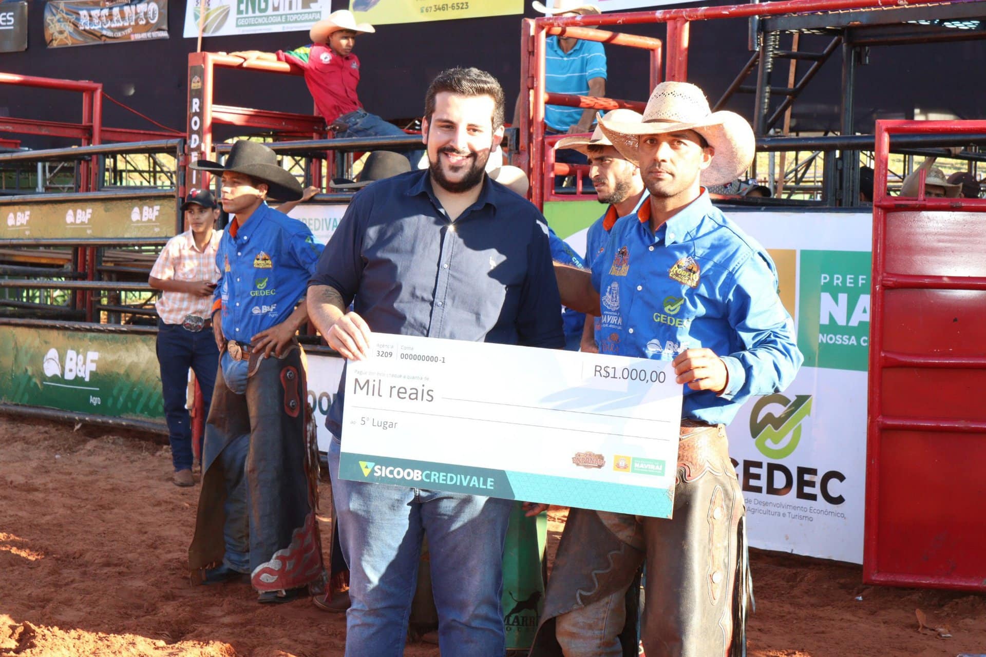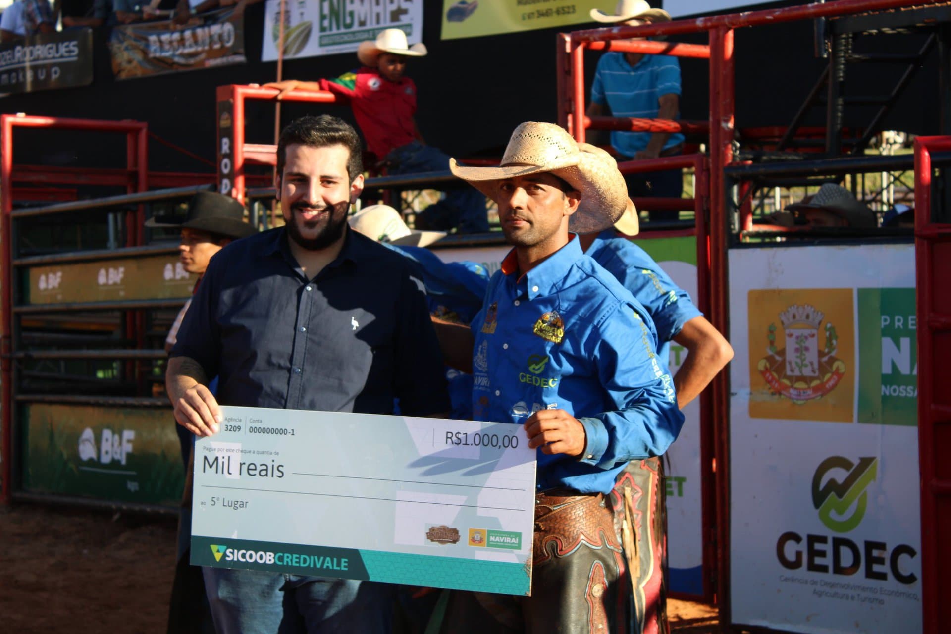 Os cinco primeiros colocados receberam as premiações entregues pela Prefeita de Naviraí, o titular da Gerência de Desenvolvimento Econômico e representantes da Assembleia Legislativa e Câmara dos Vereadores. A Prefeita de Naviraí parabenizou todos os peões, locutores e organizadores do rodeio. A Chefe do Executivo também destacou a presença do público, que prestigiou a 28ª Exponavi sendo peças fundamentais para o sucessodo evento.