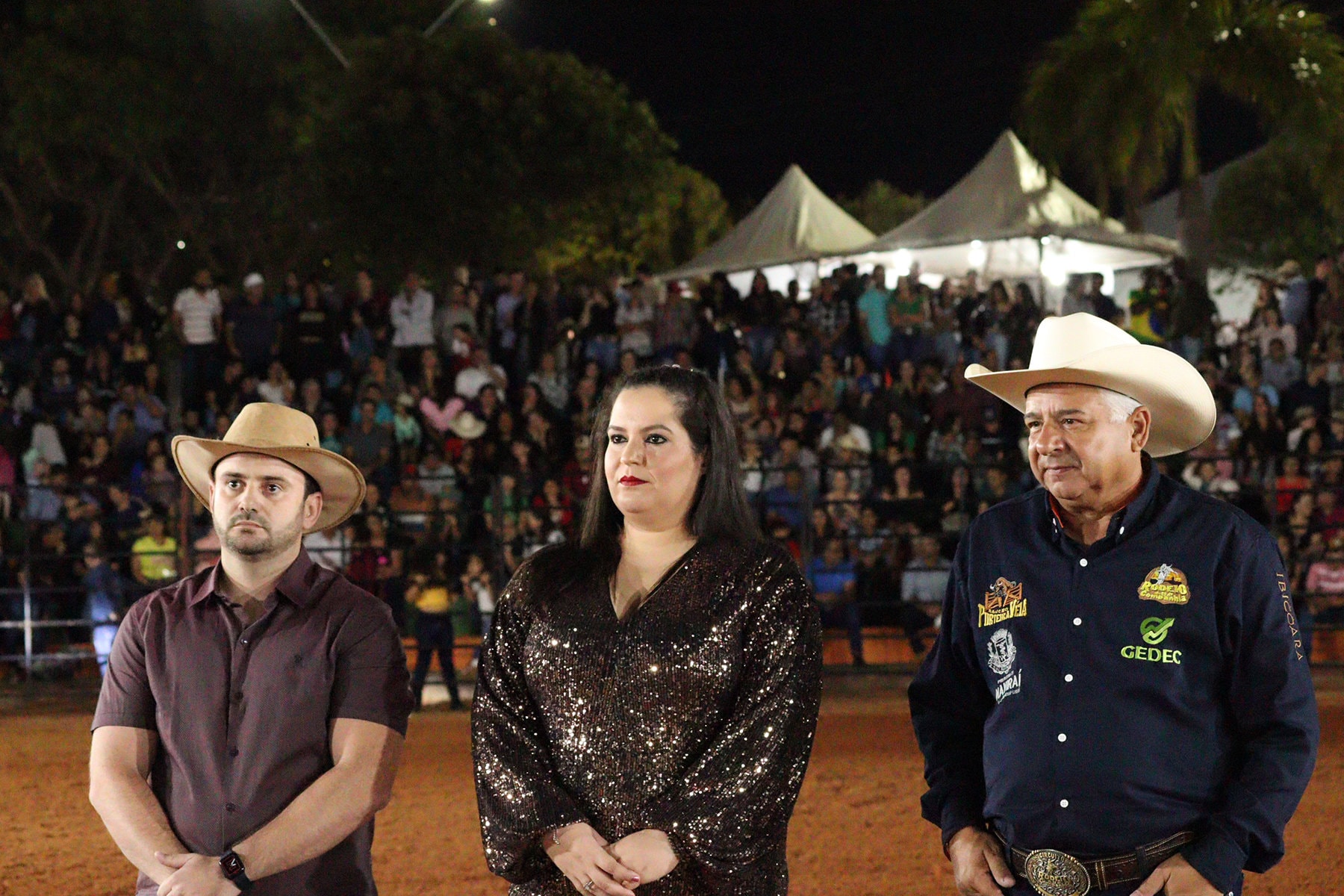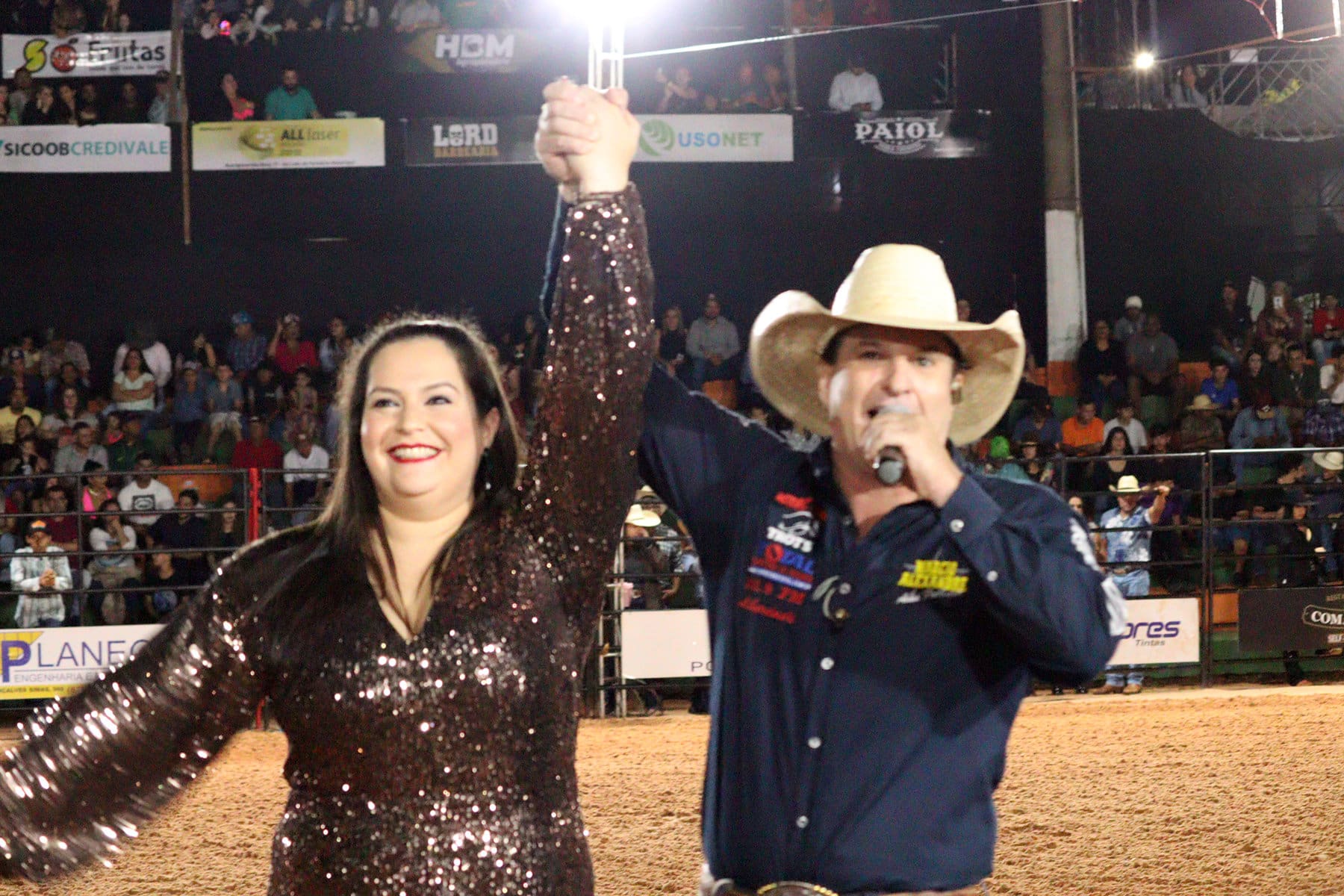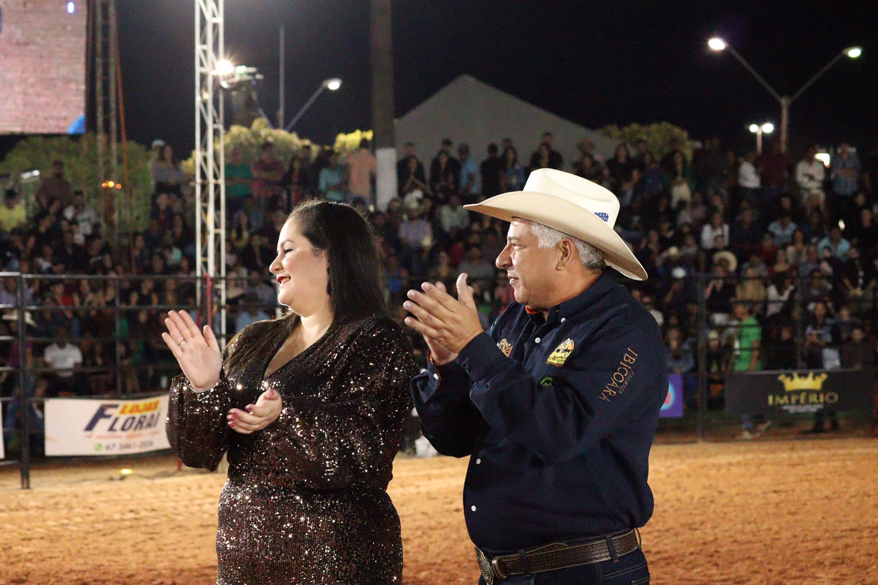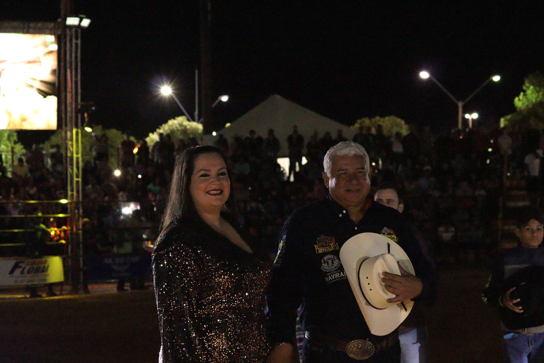 A Prefeita de Naviraí e o titular da Gerência de Desenvolvimento Econômico participaram da abertura do rodeio (Foto: Roni Silva)