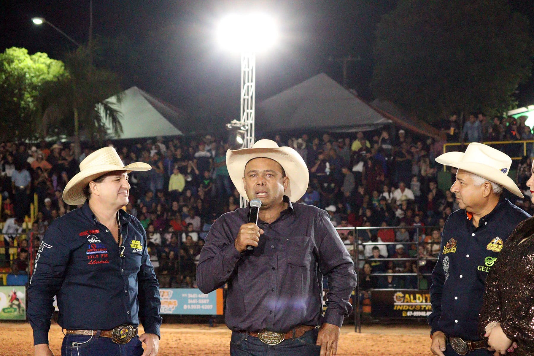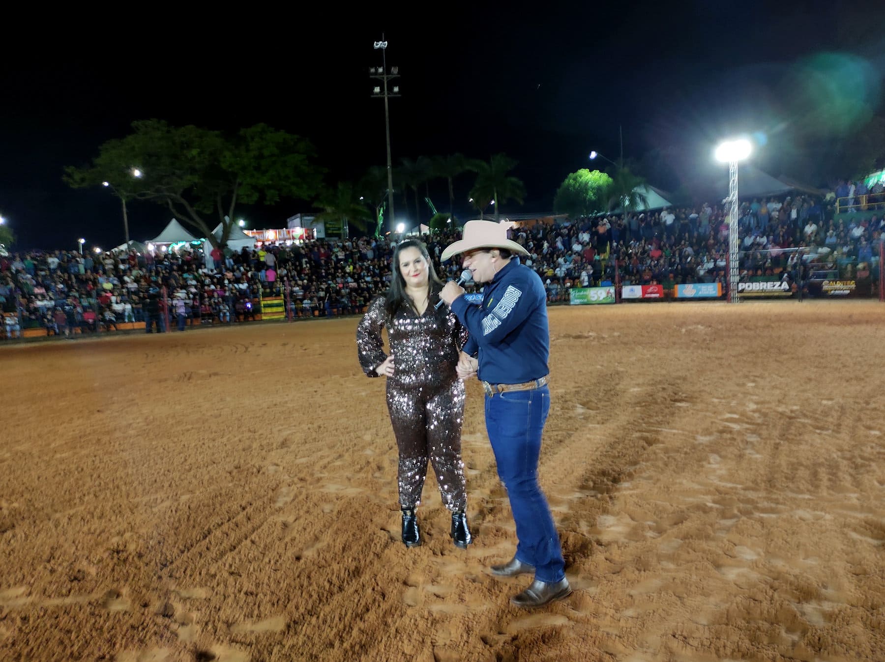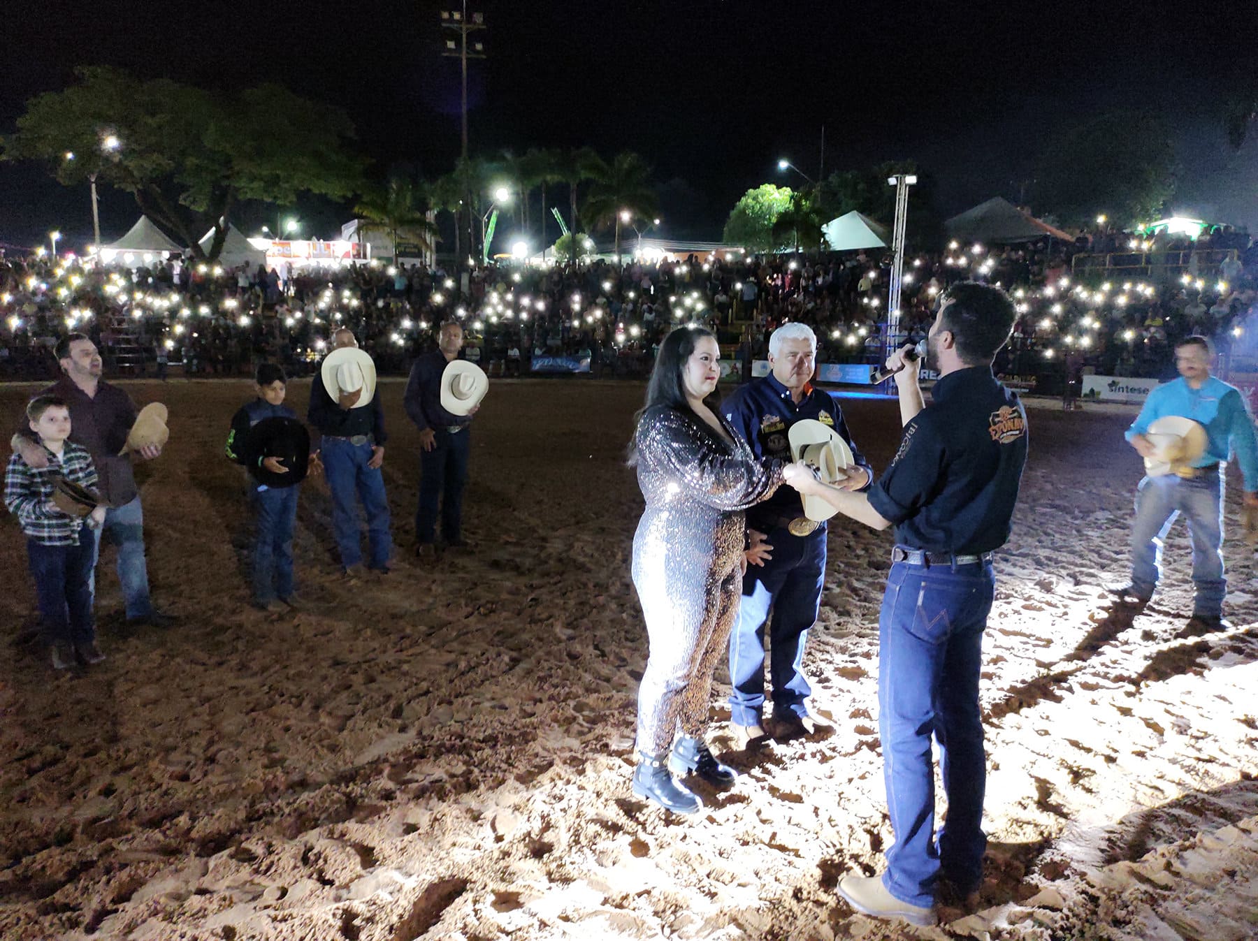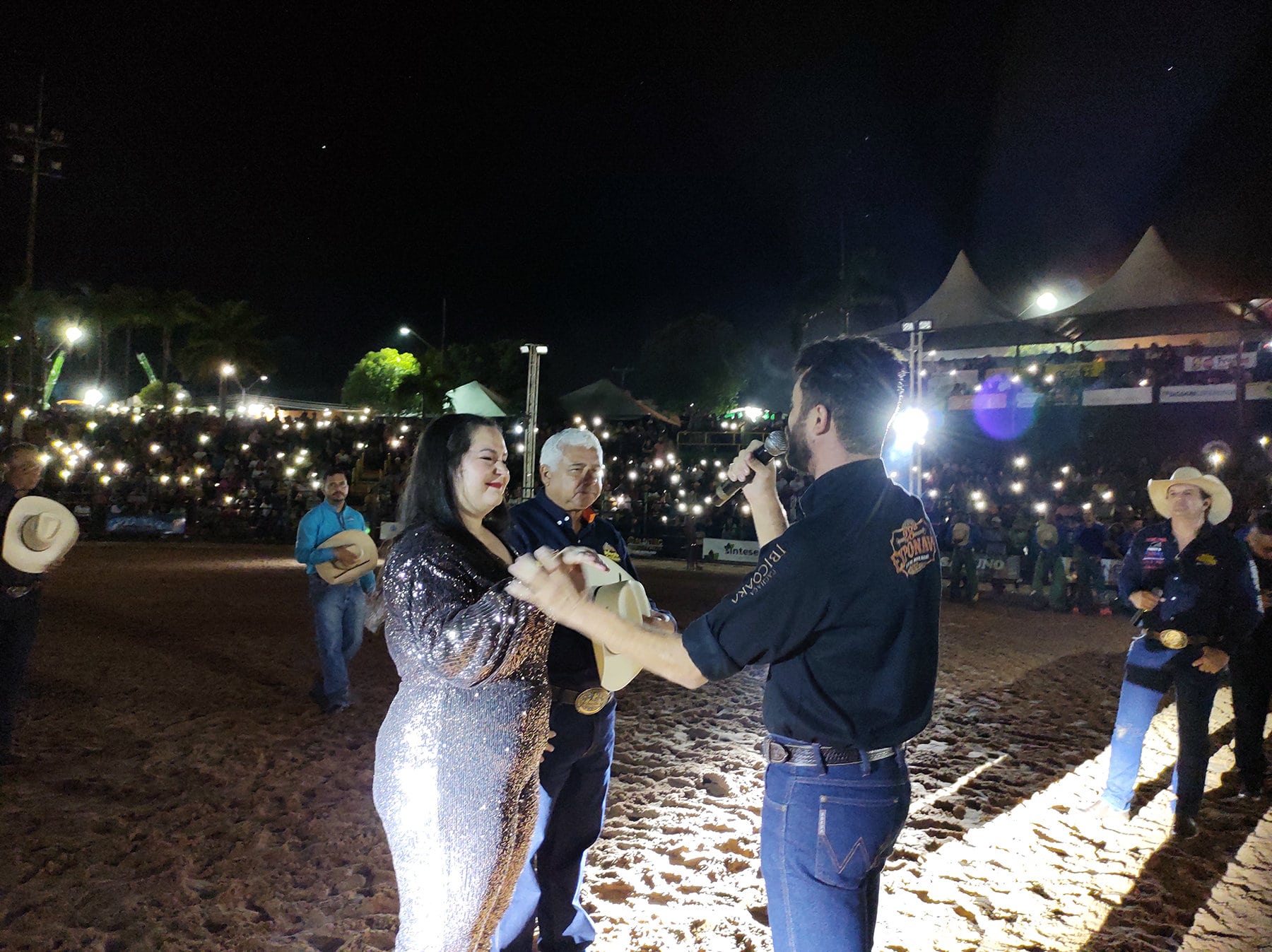 A Prefeita de Naviraí e o titular da Gerência de Desenvolvimento Econômico participaram da abertura do rodeio (Foto: Roni Silva)