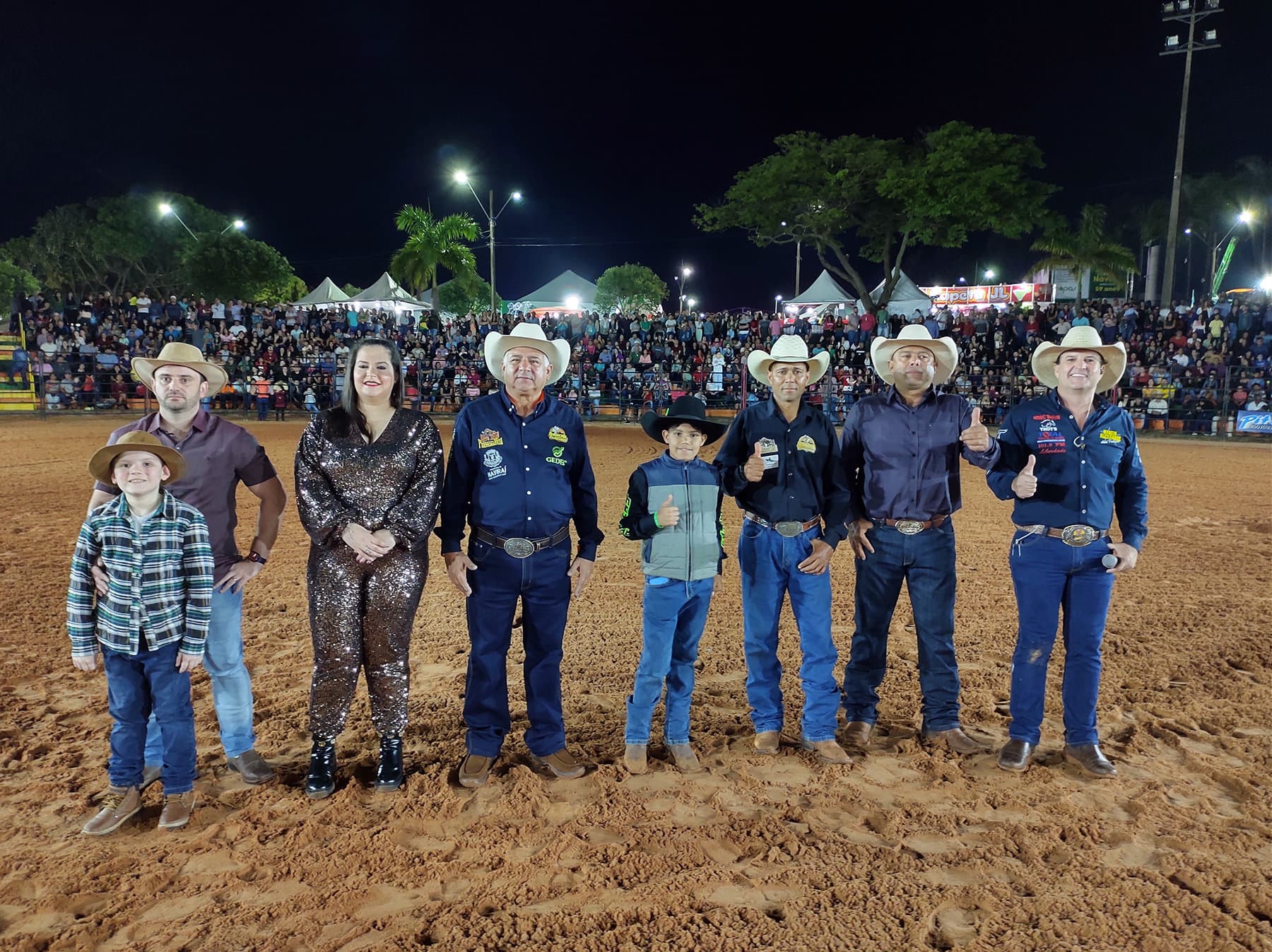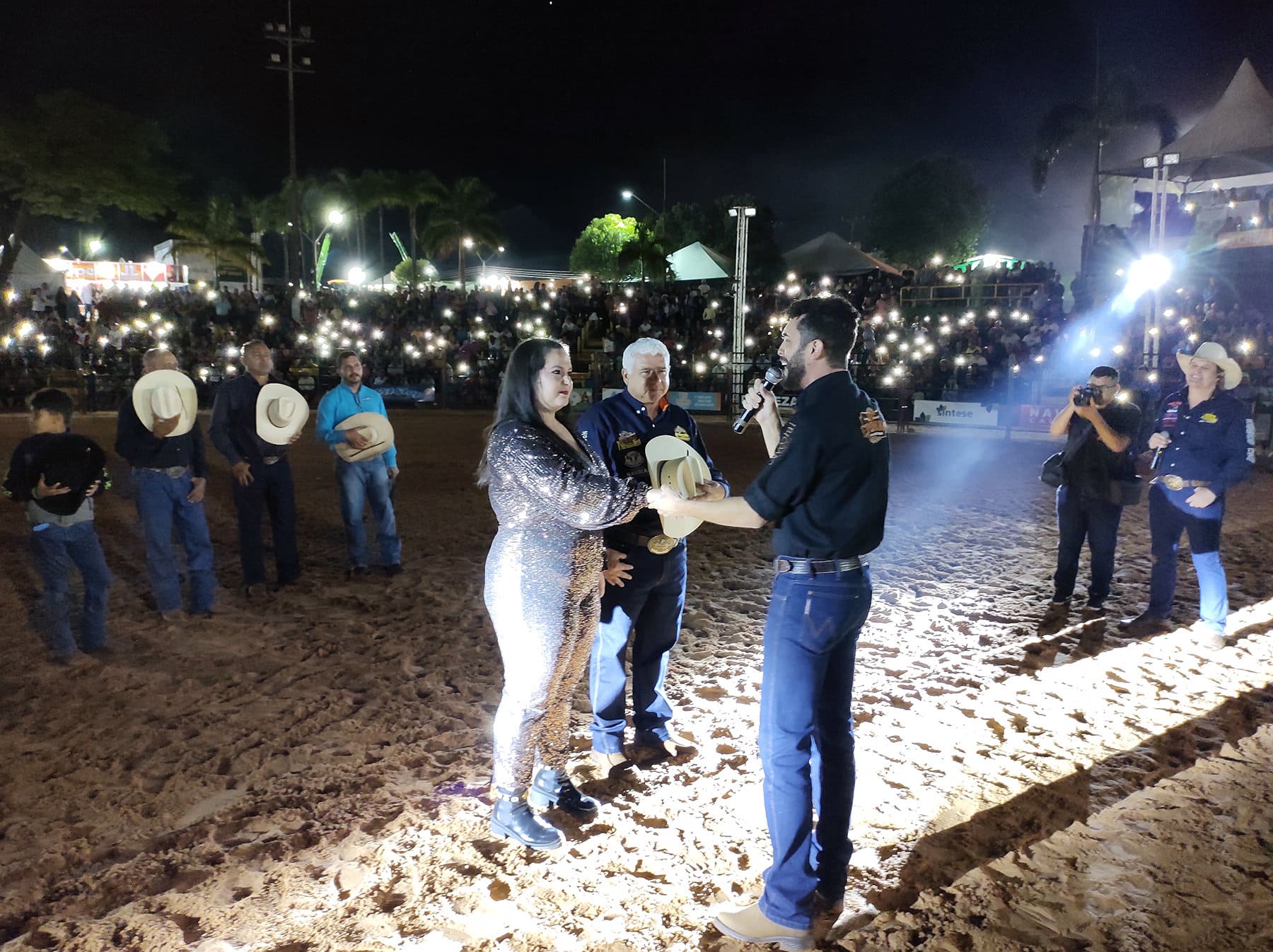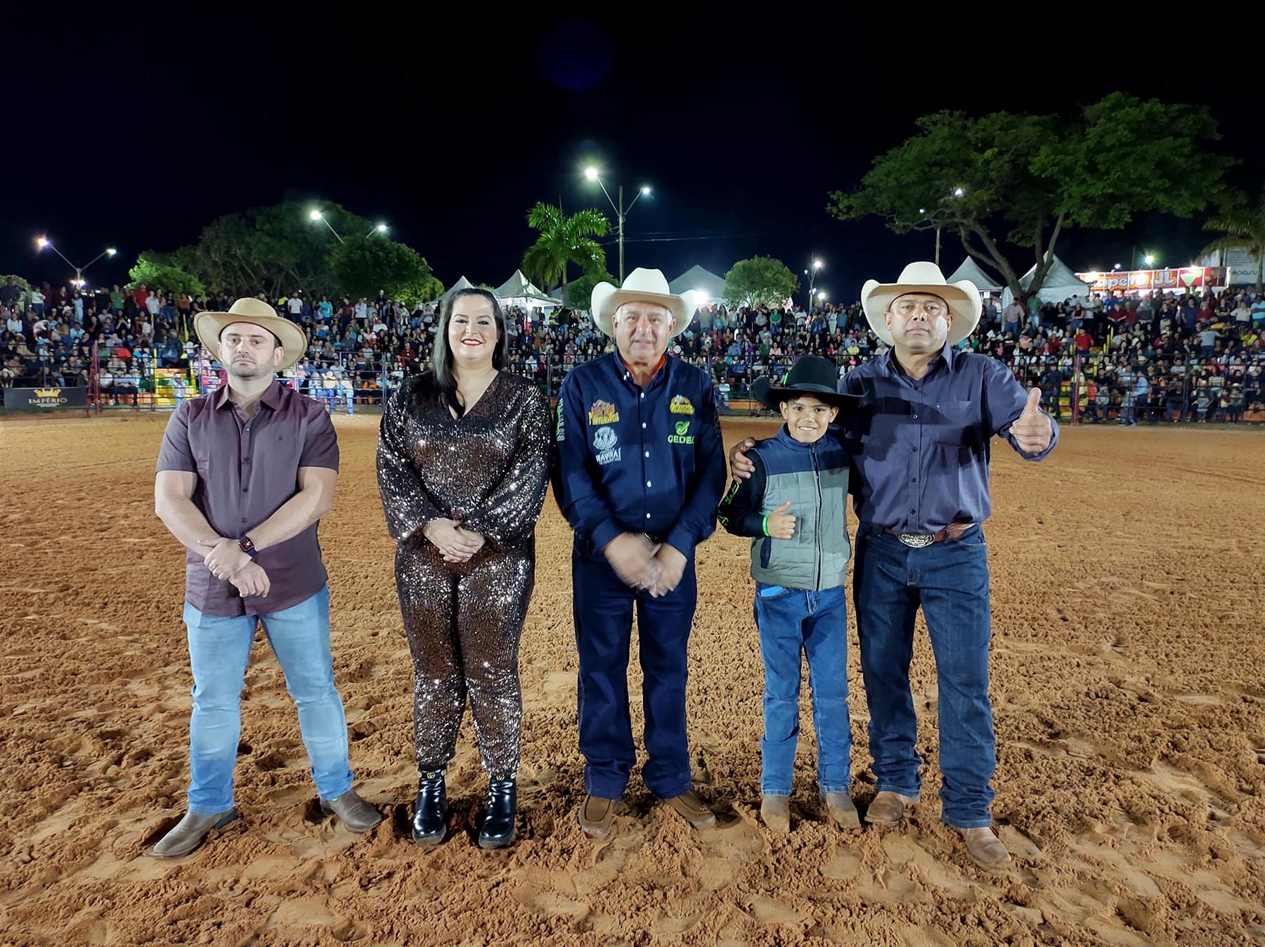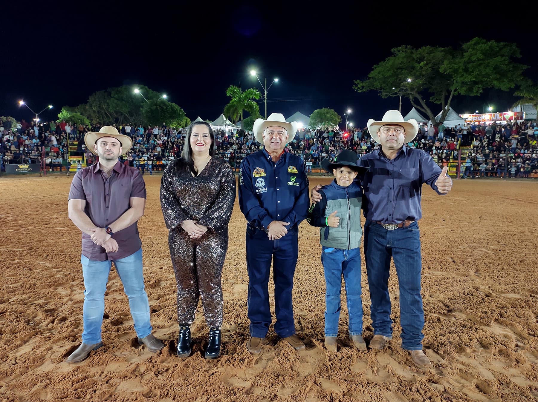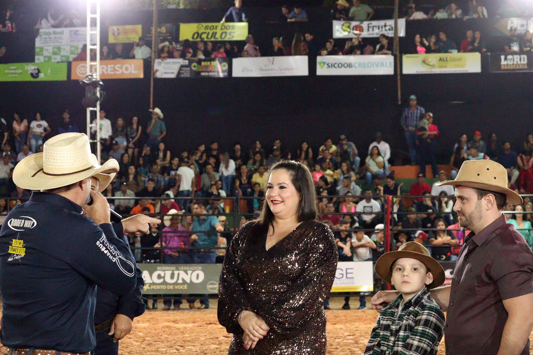 A Prefeita de Naviraí e o titular da Gerência de Desenvolvimento Econômico participaram da abertura do rodeio (Foto: Roni Silva)