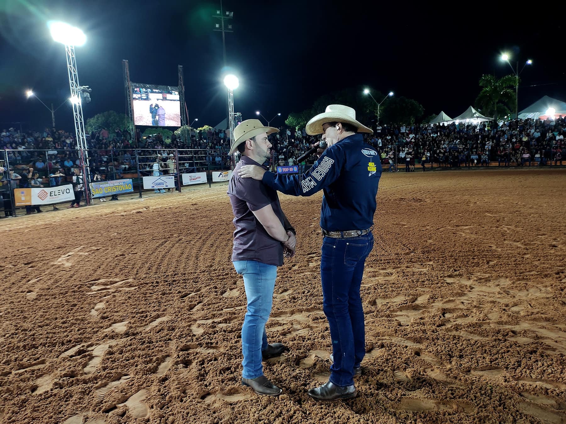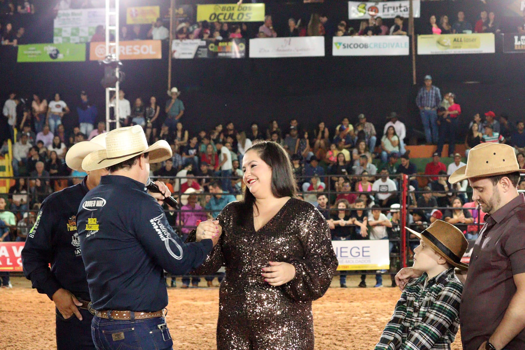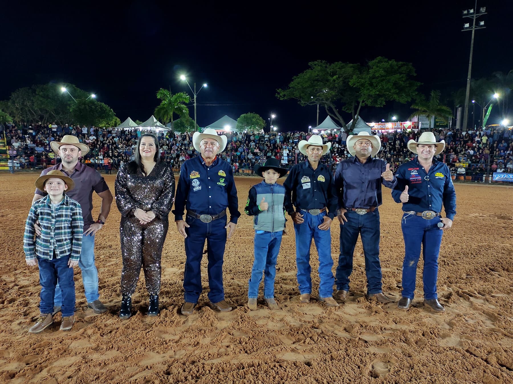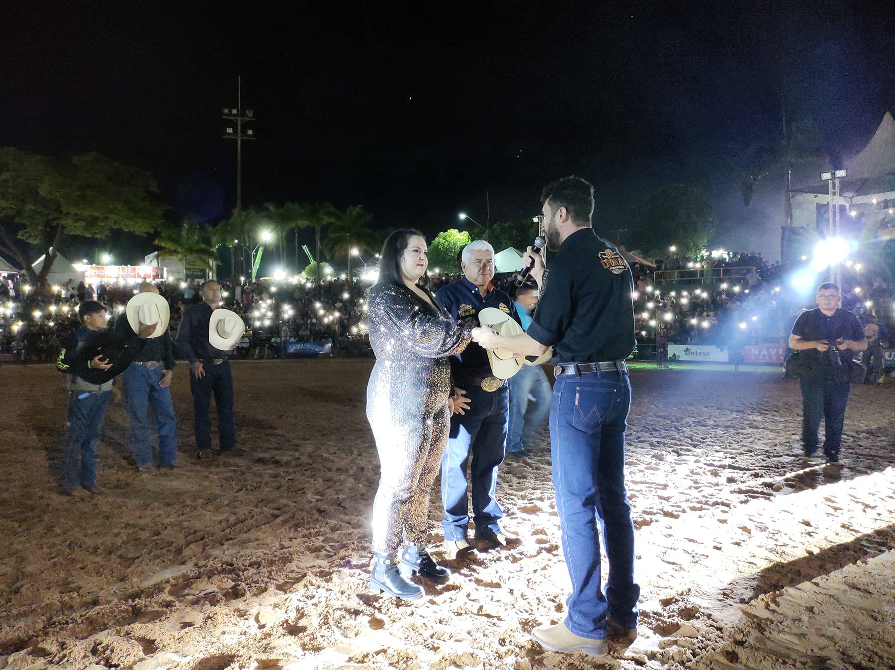 A Prefeita de Naviraí e o titular da Gerência de Desenvolvimento Econômico participaram da abertura do rodeio (Foto: Roni Silva)