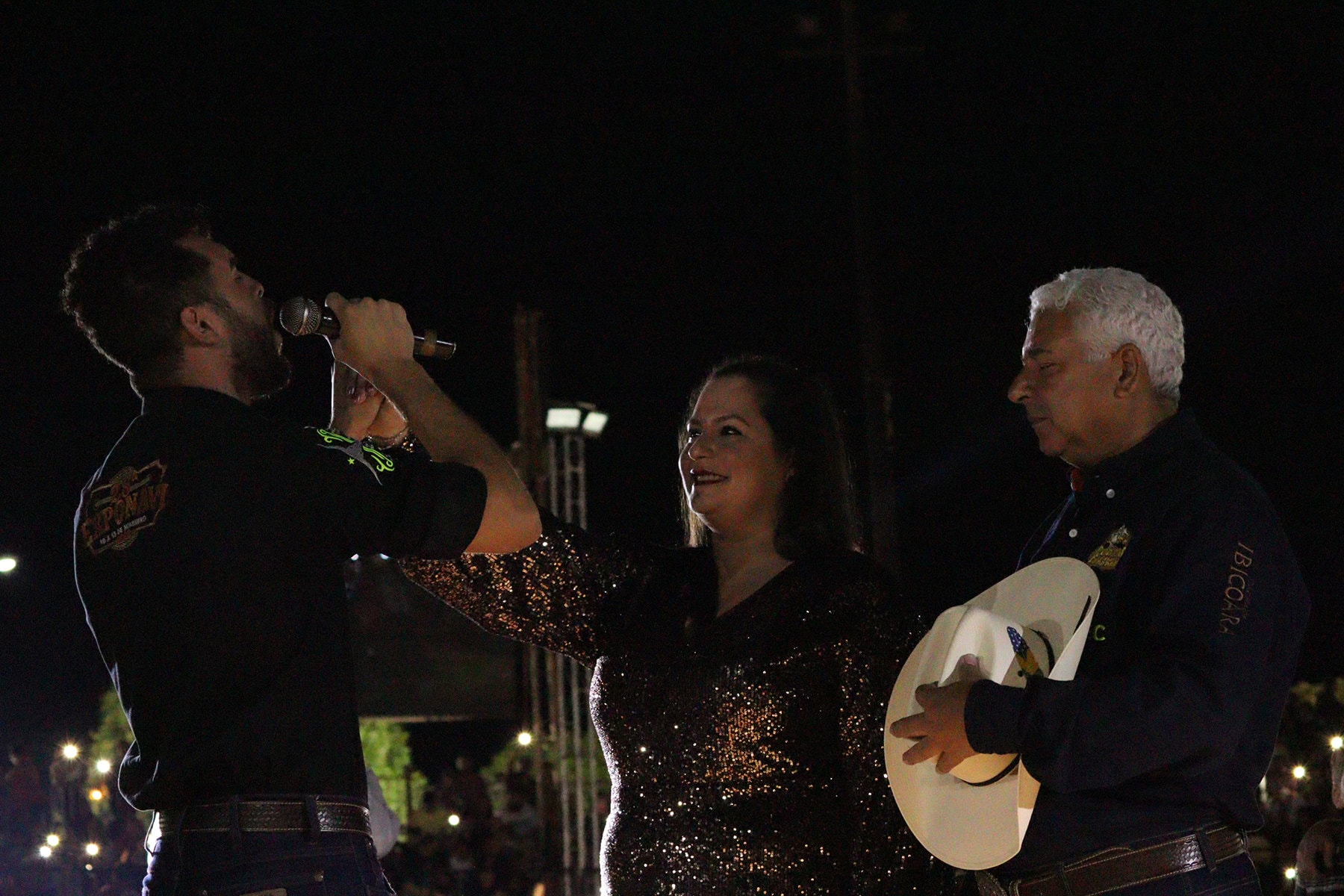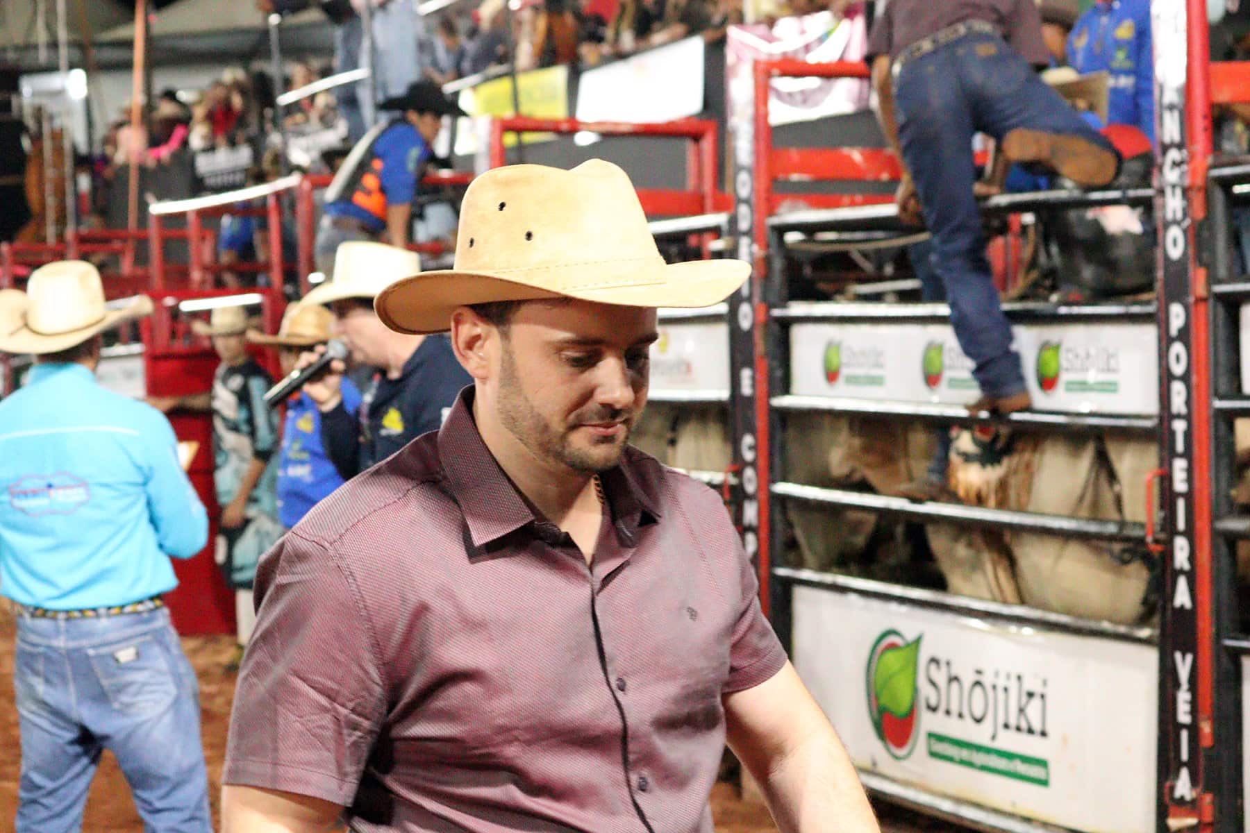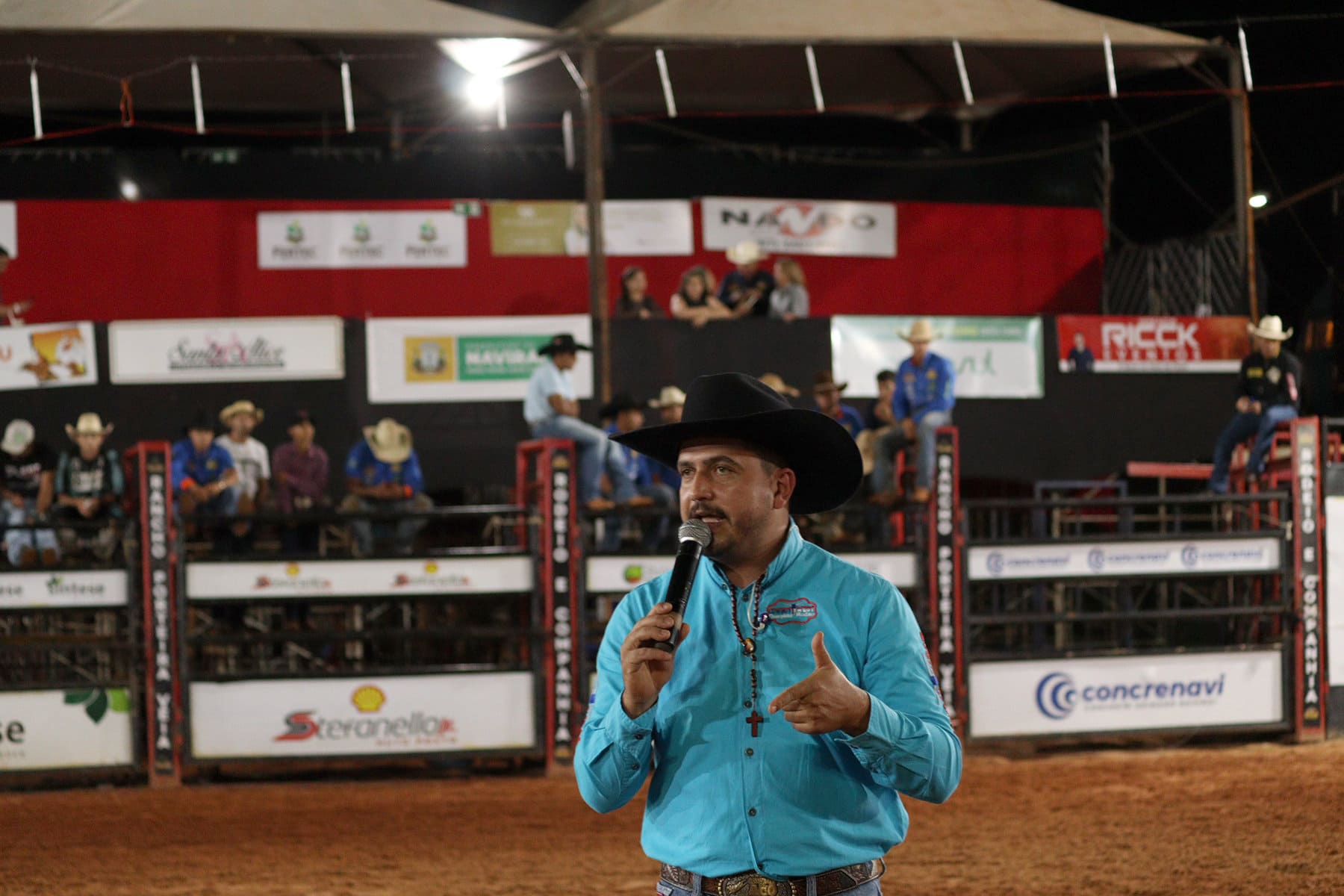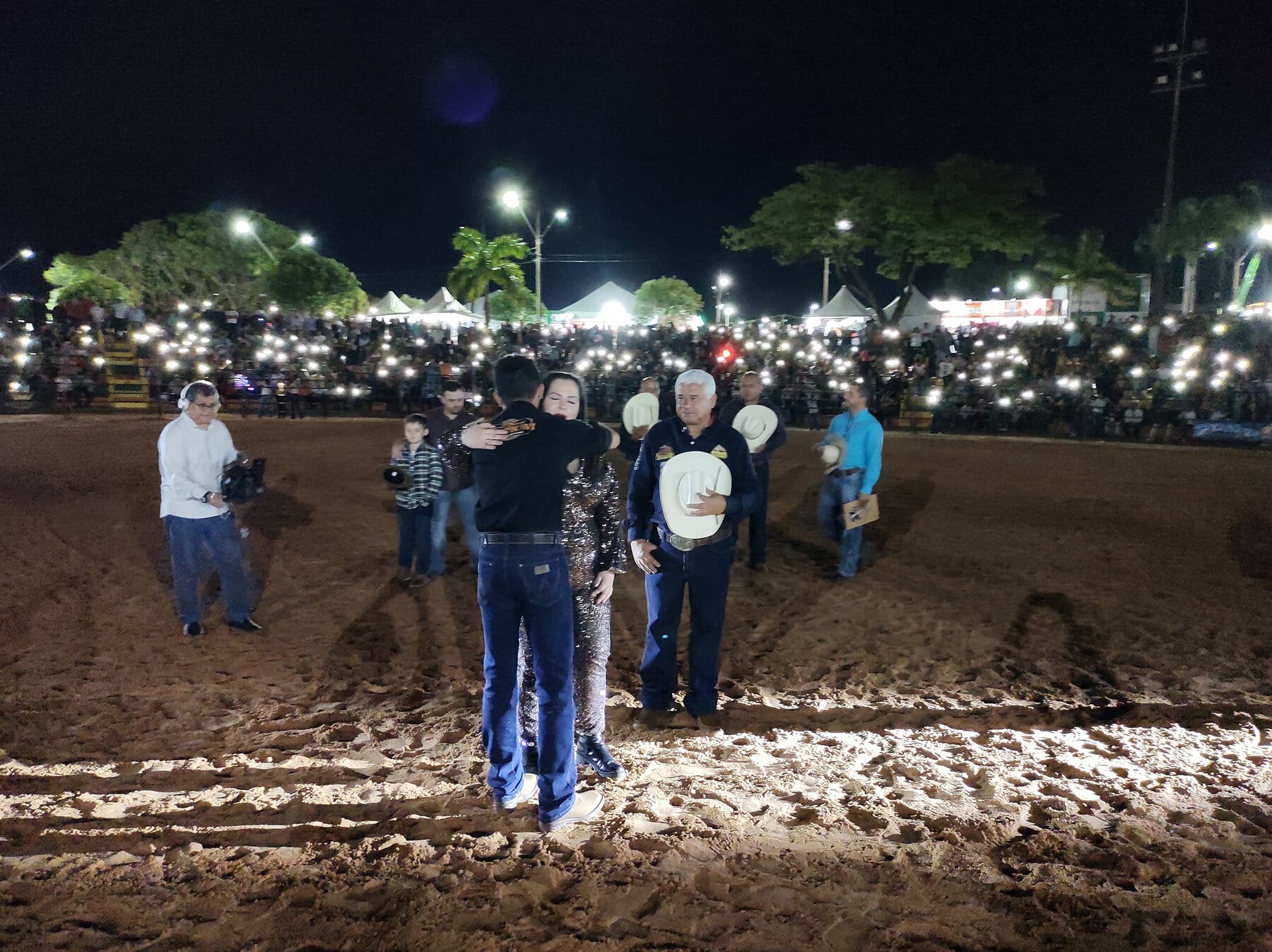 A Prefeita de Naviraí e o titular da Gerência de Desenvolvimento Econômico participaram da abertura do rodeio (Foto: Roni Silva)