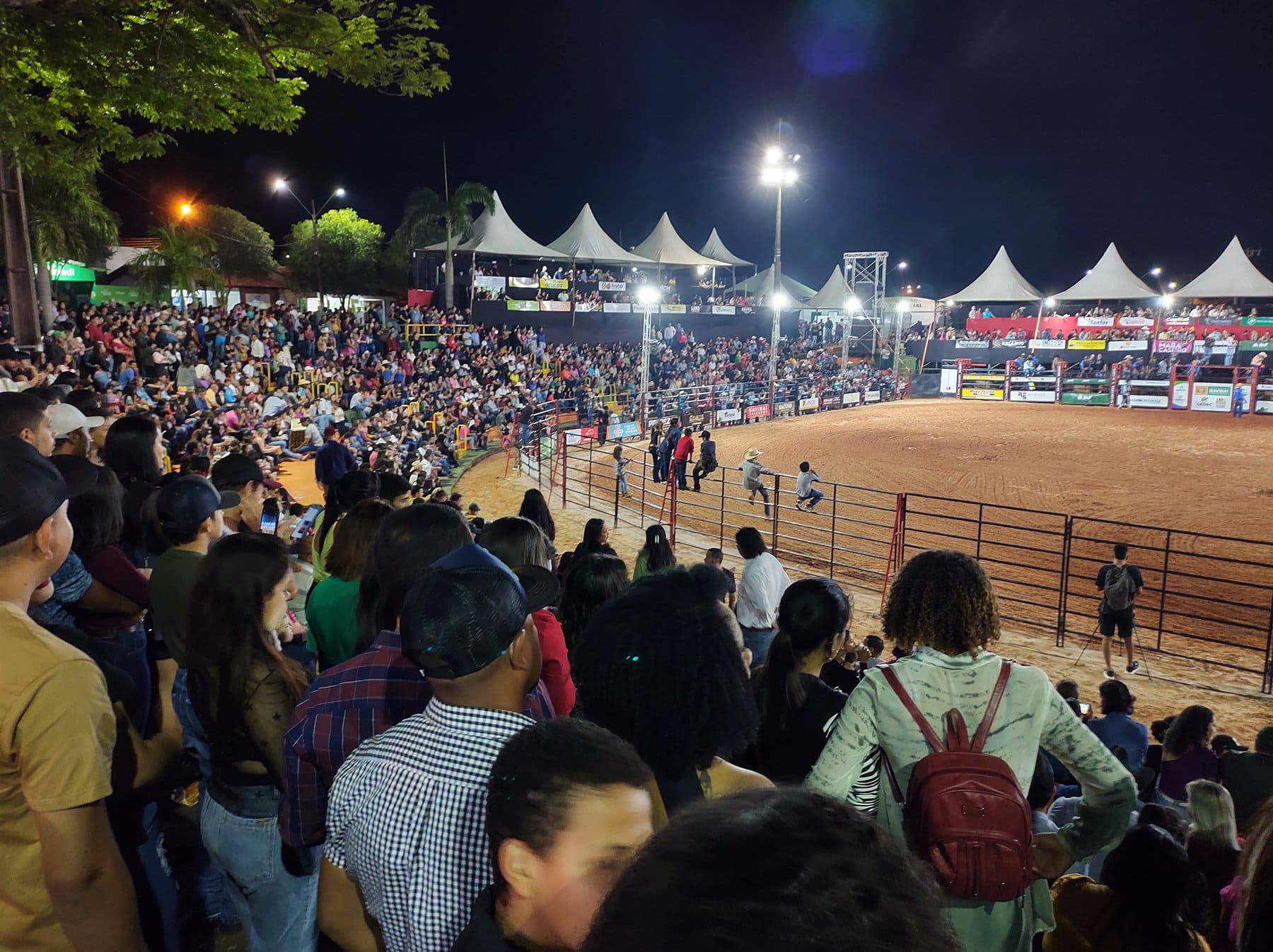 Público na Arena do Parque Municipal de Exposições Tatsuo Suekane durante o rodeio desta segunda-feira (Foto: Julio Fernando)