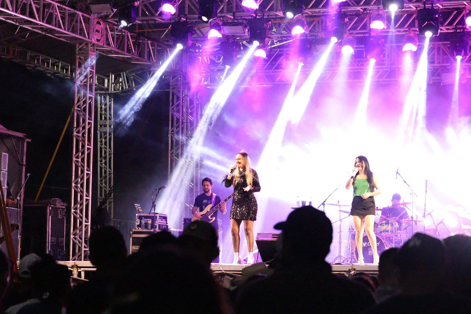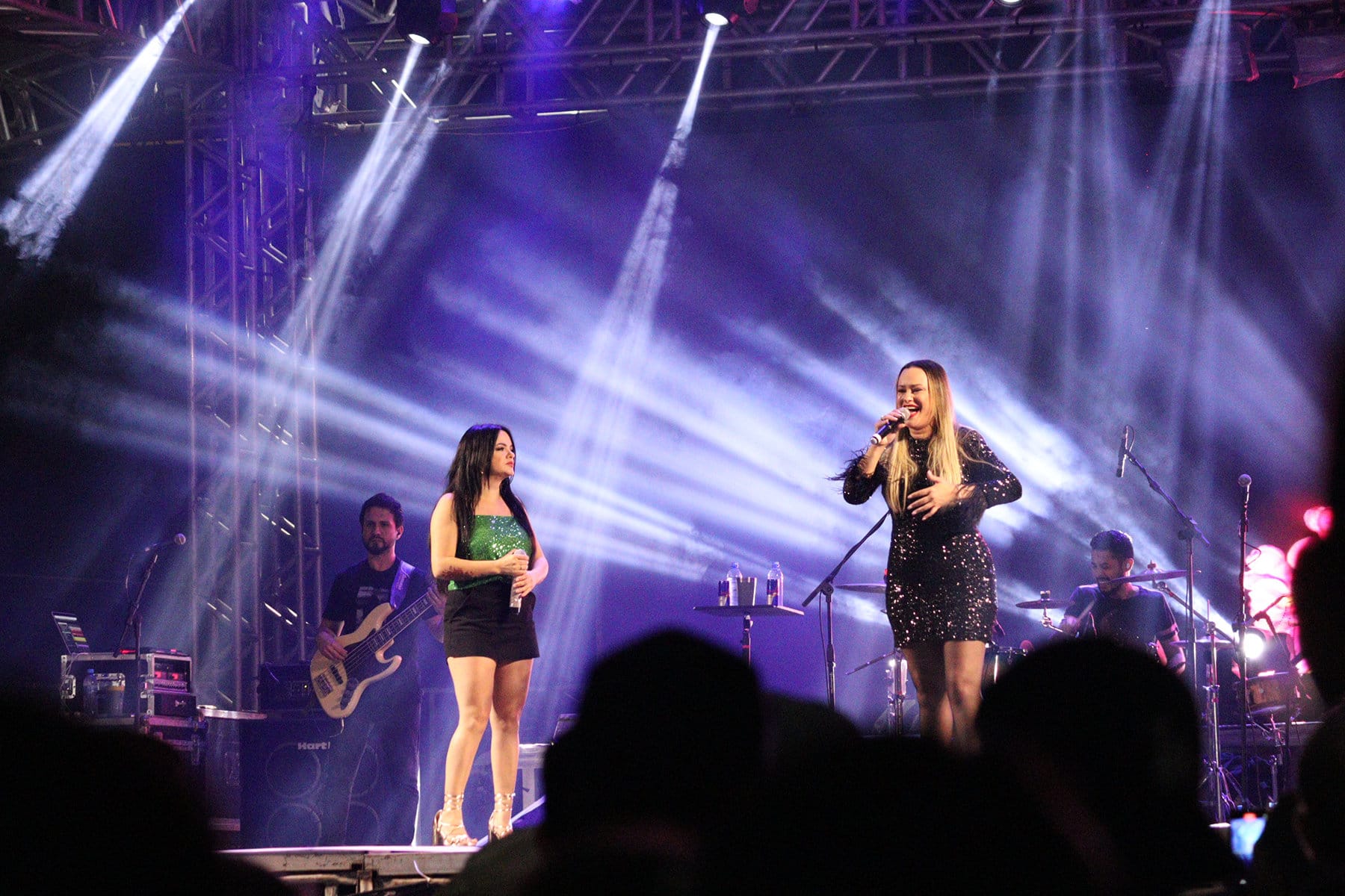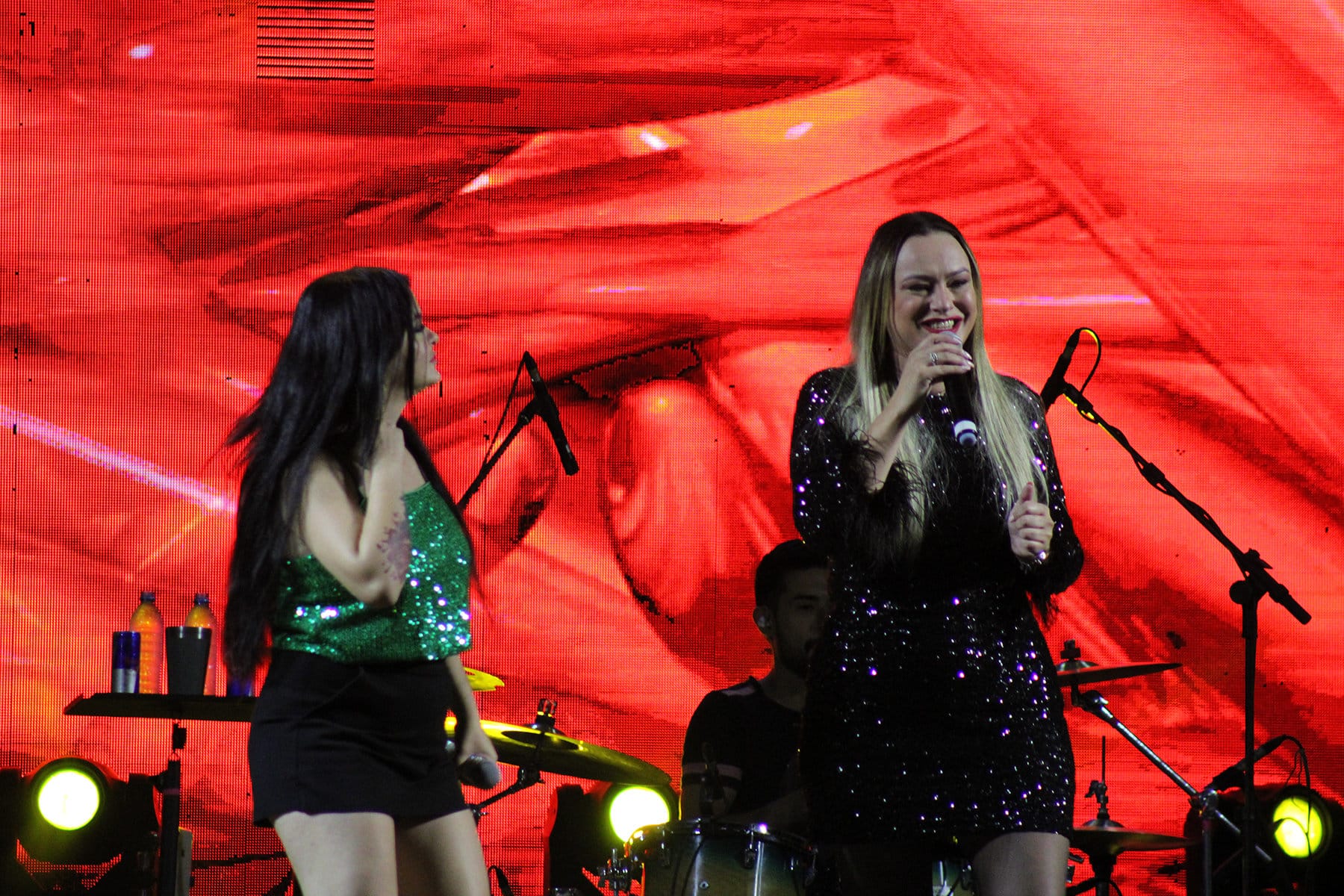 Patrícia e Adriana durante show na penúltima noite da Exponavi 2022 (Foto: Júnior Lopes/ Assessoria)
