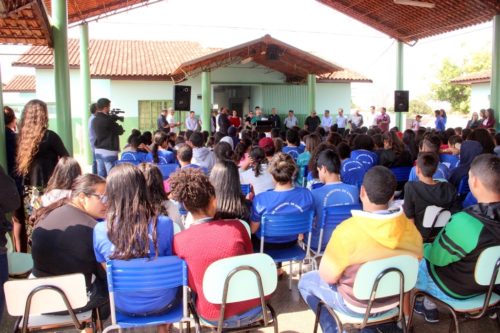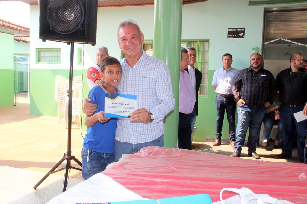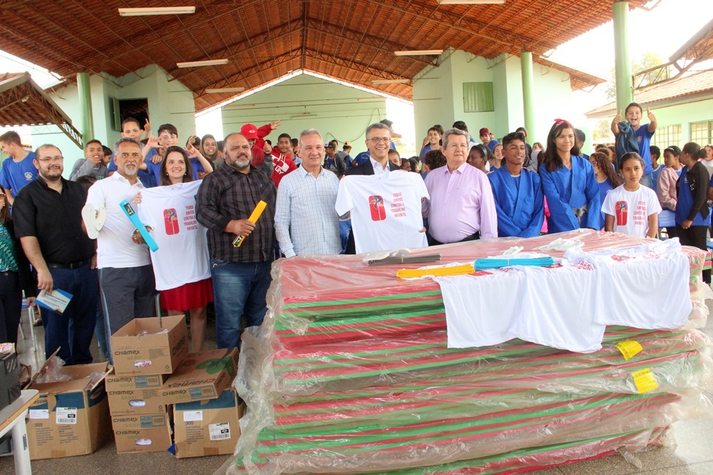 A Escola Municipal José Carlos da Silva foi contemplada com materiais esportivos para a prática de Judô. A ação aconteceu na segunda-feira (20), com a presença do Prefeito Dr. Izauri Macedo, do deputado estadual Onevan de Matos, do juiz federal Márcio Alexandre da Silva, gestor regional do “Programa de Combate ao Trabalho Infantil e de Estímulo à Aprendizagem da Justiça do Trabalho” (TRT-24) da Gerente de Educação Caroline Touro, do diretor da Escola Adriano Caires, professores, vereadores e representantes de entidades.