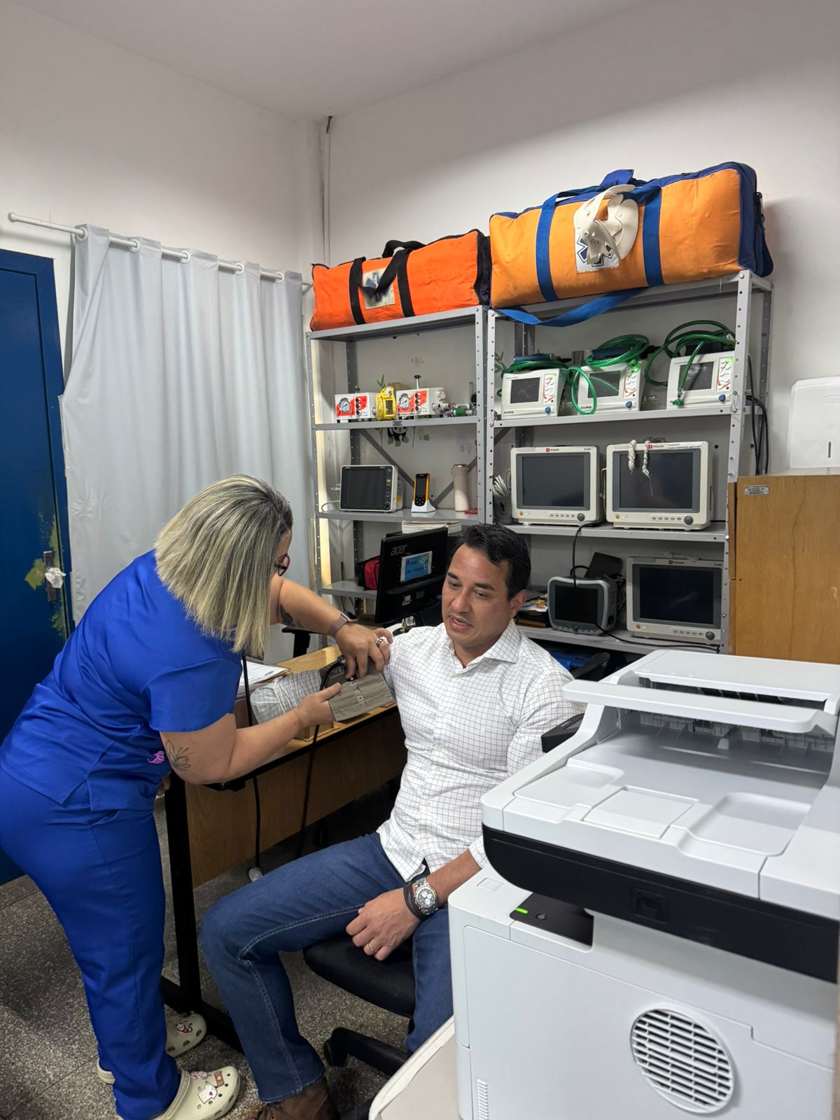 Iniciando as atividades na manhã de hoje (08-01), o prefeito Rodrigo Sacuno (PL), acompanhado pelo Gerente Geral da Prefeitura, Fauze Walid Selem, fez uma visita surpresa no Hospital Municipal, por volta das 6h30. No local, cumprimentou usuários, ouviu pacientes e acompanhantes, e relatos dos funcionários dos diversos setores.