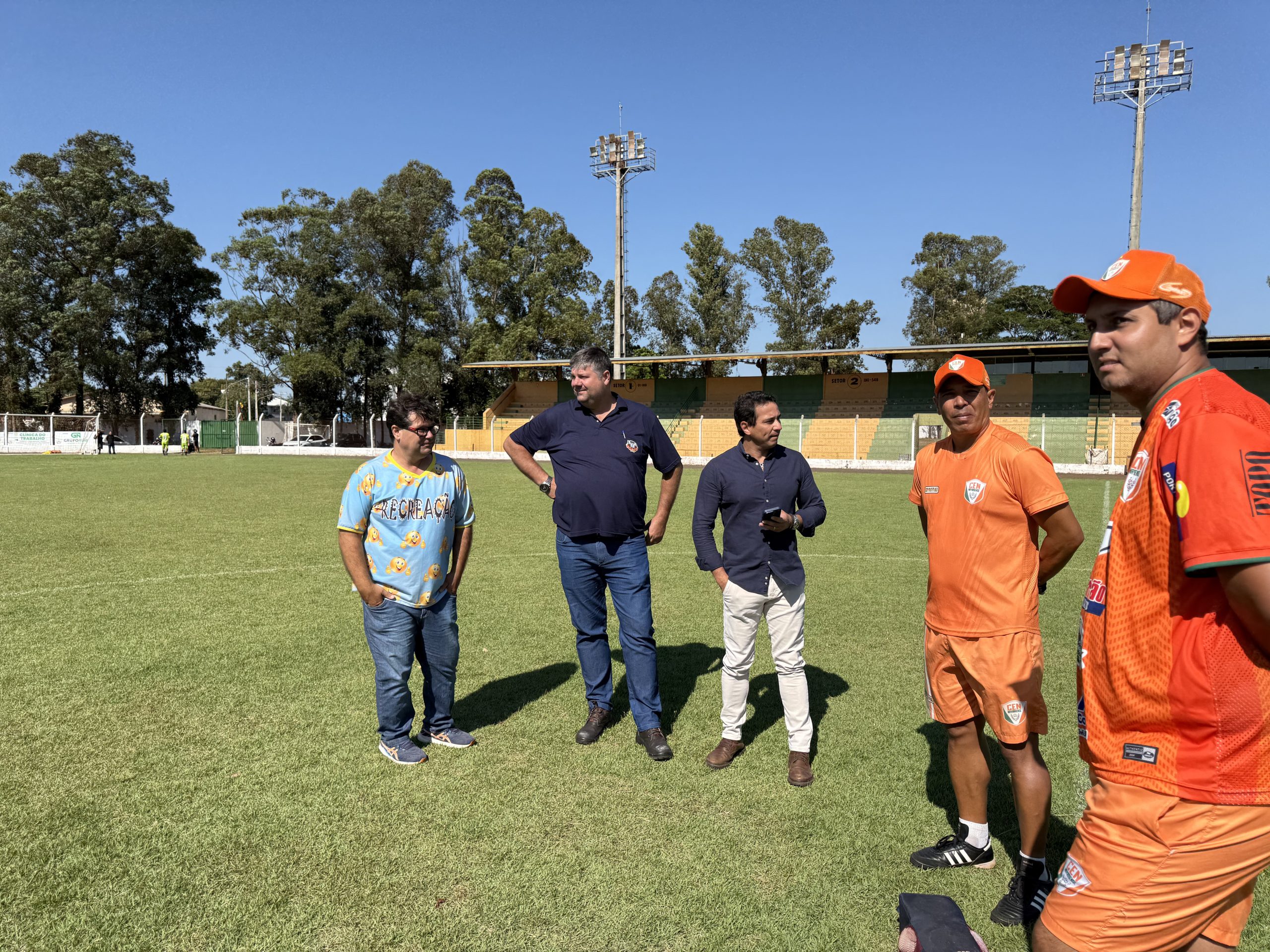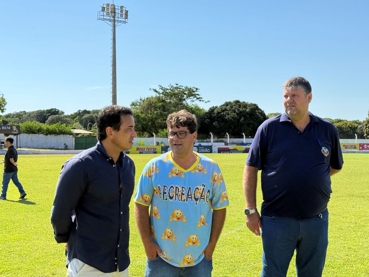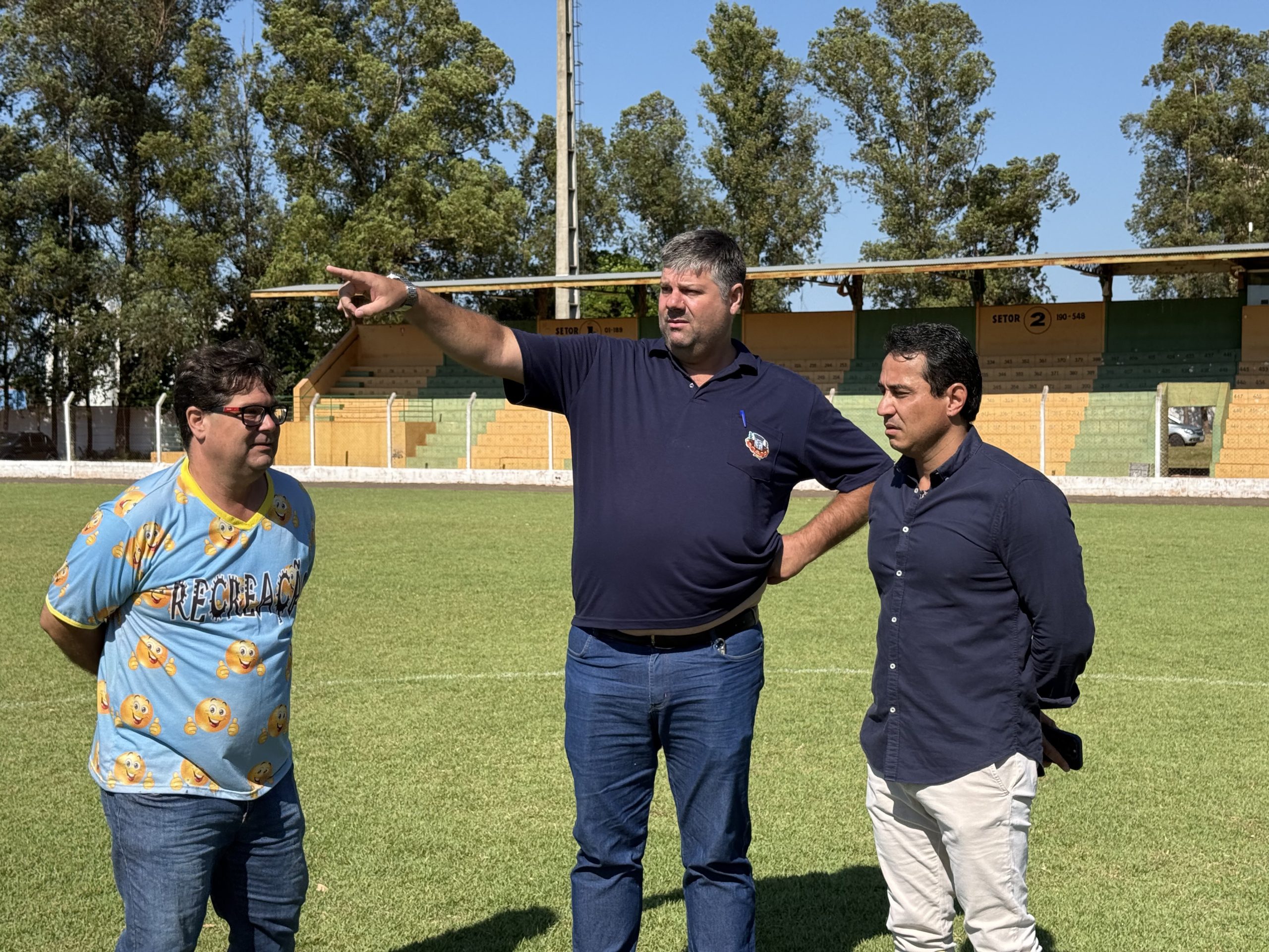 O prefeito de Naviraí, Rodrigo Sacuno, acompanhado pelo gerente municipal de Esporte e Lazer, Kerginaldo Miranda (Kejão) e Leandro “Zigão” vistoriou, na manhã de hoje (13-01), o Estádio Municipal José Cândido dos Santos Virote – Virotão. O Chefe do Executivo foi ver de perto as condições do estádio para o início dos jogos do CEN, representante de Naviraí no Campeonato Estadual – Série A 2025.