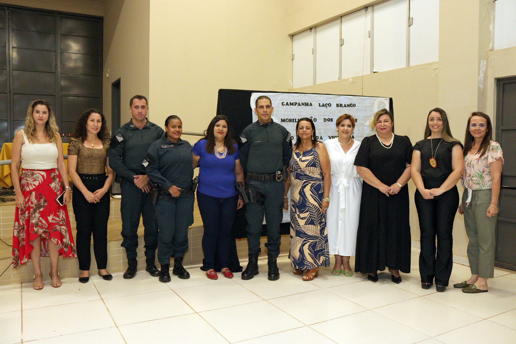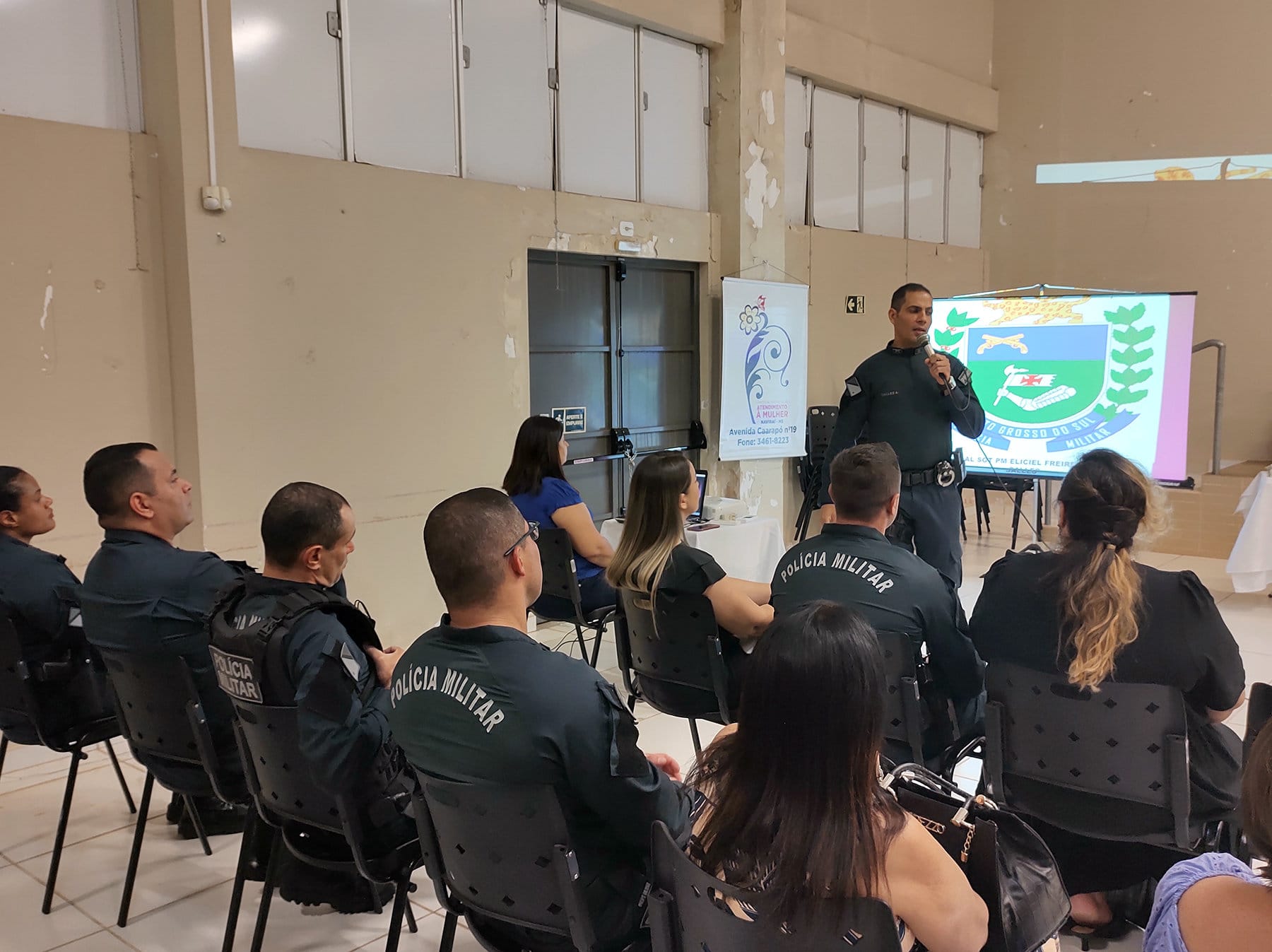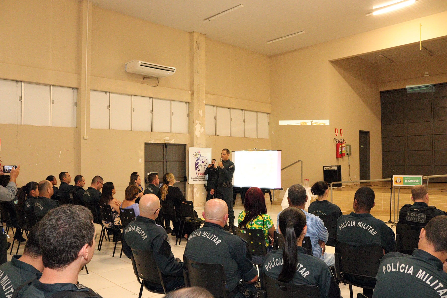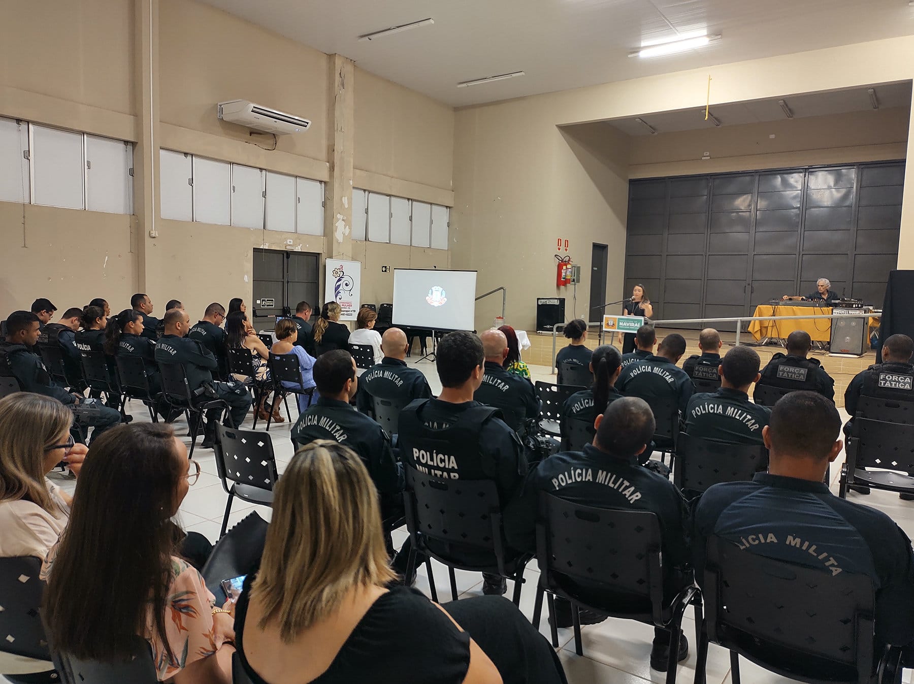 A solenidade contou com a presença das titulares da Coordenadoria de Políticas Públicas Para Mulheres e Gerência Municipal de Saúde, do Comandante do 12º Batalhão de Polícia Militar Coronel João Paulo Chink, da Delegada Sayara Quinteiro Martins, policiais Militares de Naviraí e dos municípios que que compõem o 12º BPM e o PM Eliciel Freire de Salles que ministrou a palestra “Polícia Militar e as Medidas Integradas de Prevenção”.