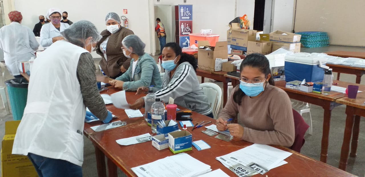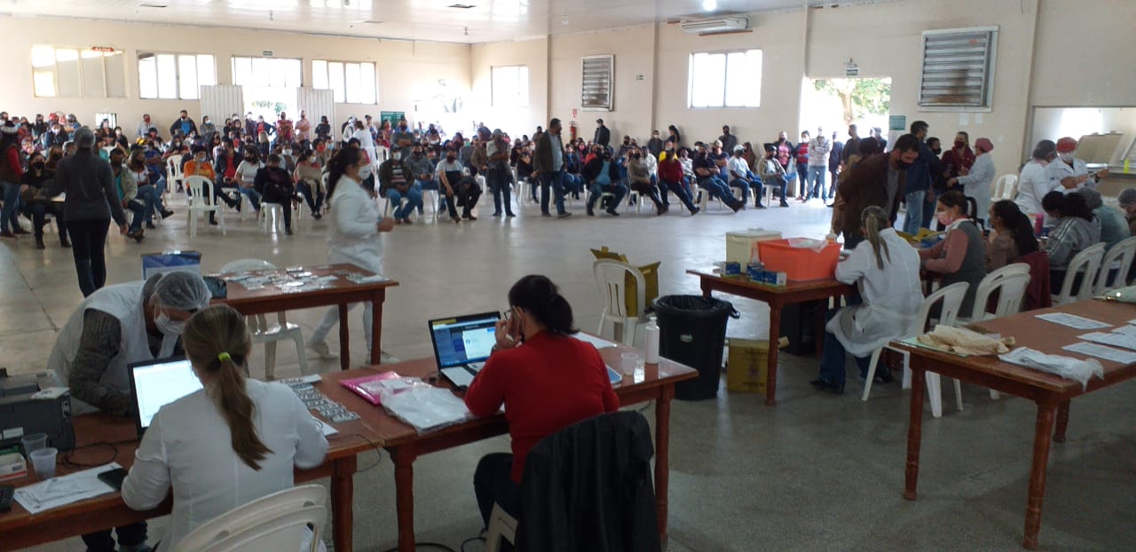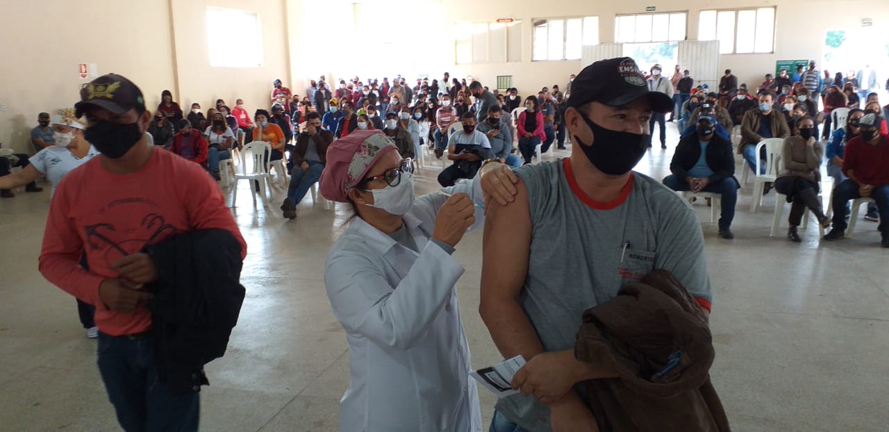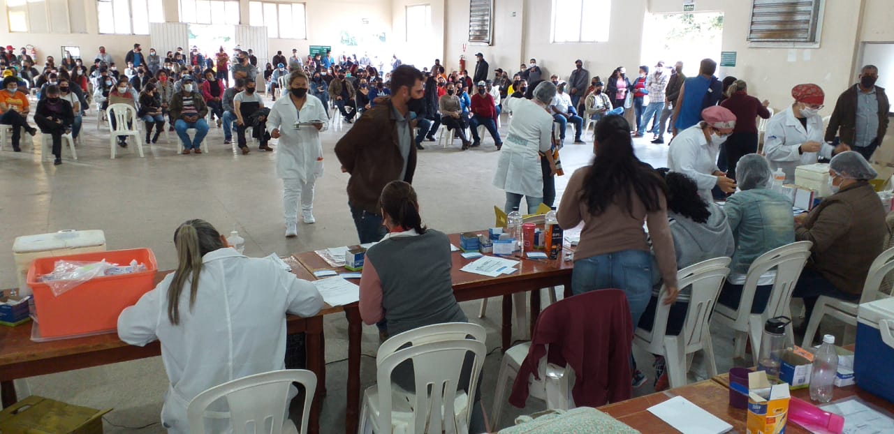 Nesta terça-feira (22-06), aproximadamente 600 pessoas estão sendo imunizadas com a 1ª dose, das 8h às 12h, numa ação que envolve uma equipe de 20 pessoas (enfermeiros, técnicos de enfermagem e administrativos). Diariamente a equipe está atendendo a população no salão da Seleta Sociedade Caritativa e Humanitária.