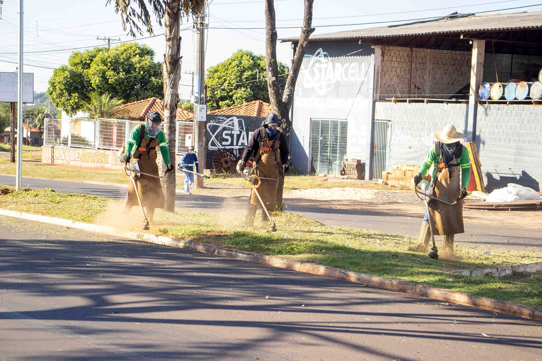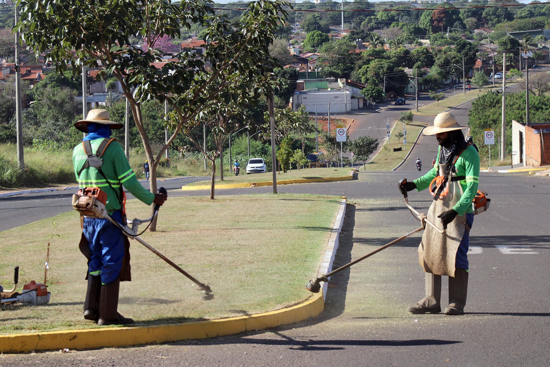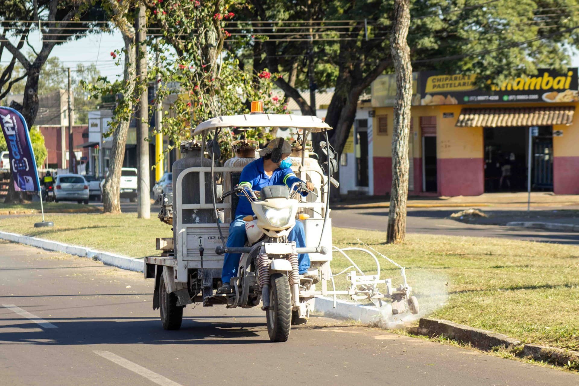 Na quinta-feira (25/05), a frente de serviço atuou na Avenida Amambai, executando o serviço de roçada e limpeza dos canteiros centrais. Paralelamente ao serviço de limpeza, a equipe de pintura do Núcleo Municipal de Trânsito atuou na restauração da pintura dos meios-fios.