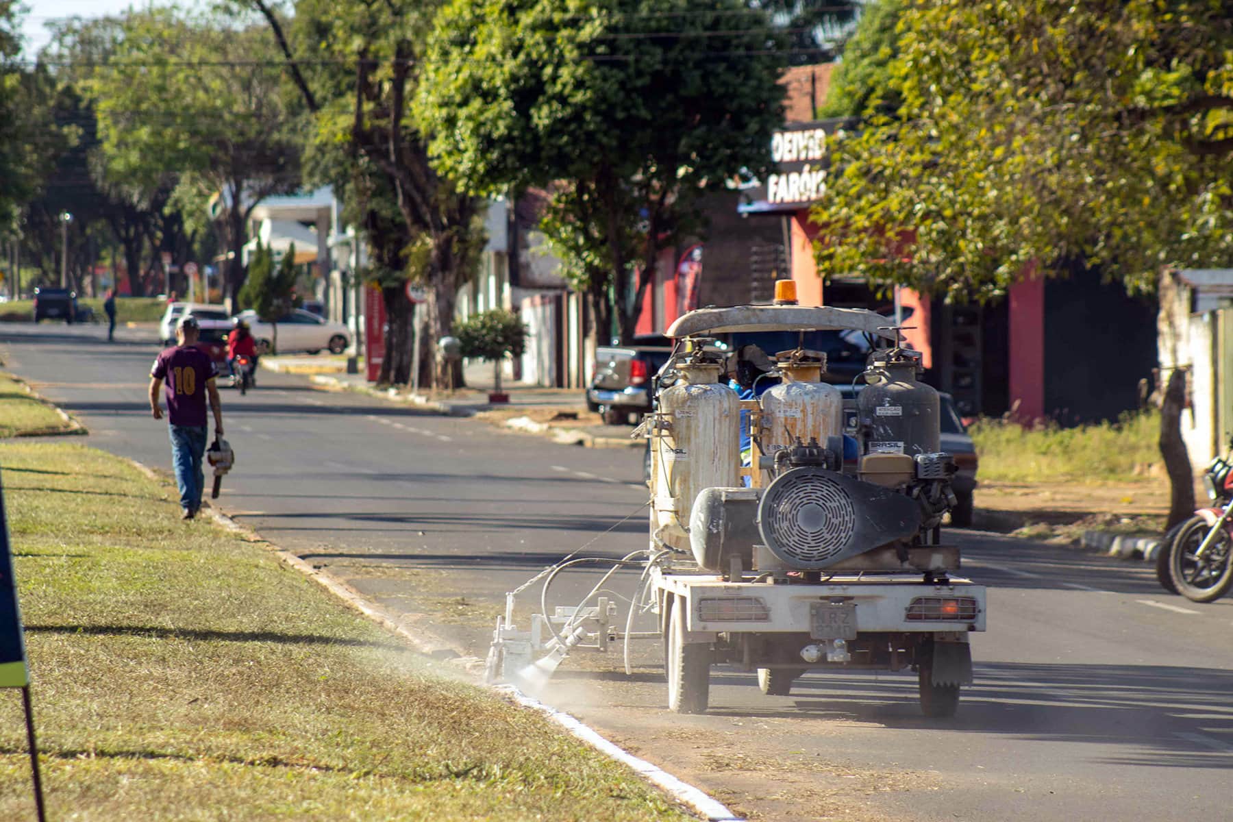Nesta sexta-feira (26/05), o serviço começou pela manutenção da limpeza da Praça Euclides Fabris – a Praça Central, em seguida a equipe se deslocou para a Avenida Miguel Sotani, no Jardim Paraíso e para a Avenida Ipuitã, na mesma região.