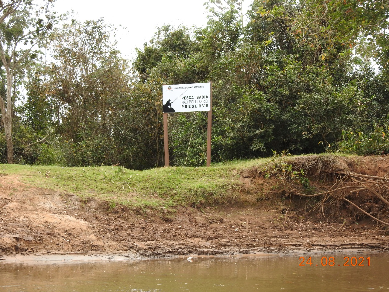 A Prefeitura Municipal, através da Gerência Municipal de Meio Ambiente e em parceria com a Polícia Militar Ambiental de Naviraí realizou, nesta terça-feira (24-08), a implantação de oito placas de conscientização, às margens o rio Amambai.