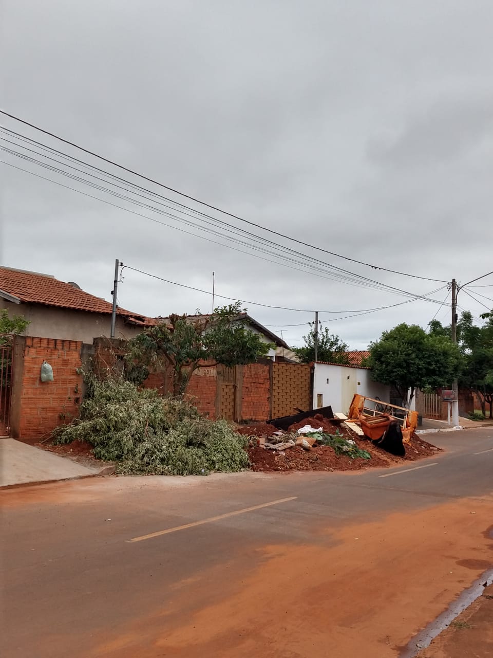 Entulhos e galhadas sendo retirados no mutirão de limpeza na região do Jardim Paraíso.
