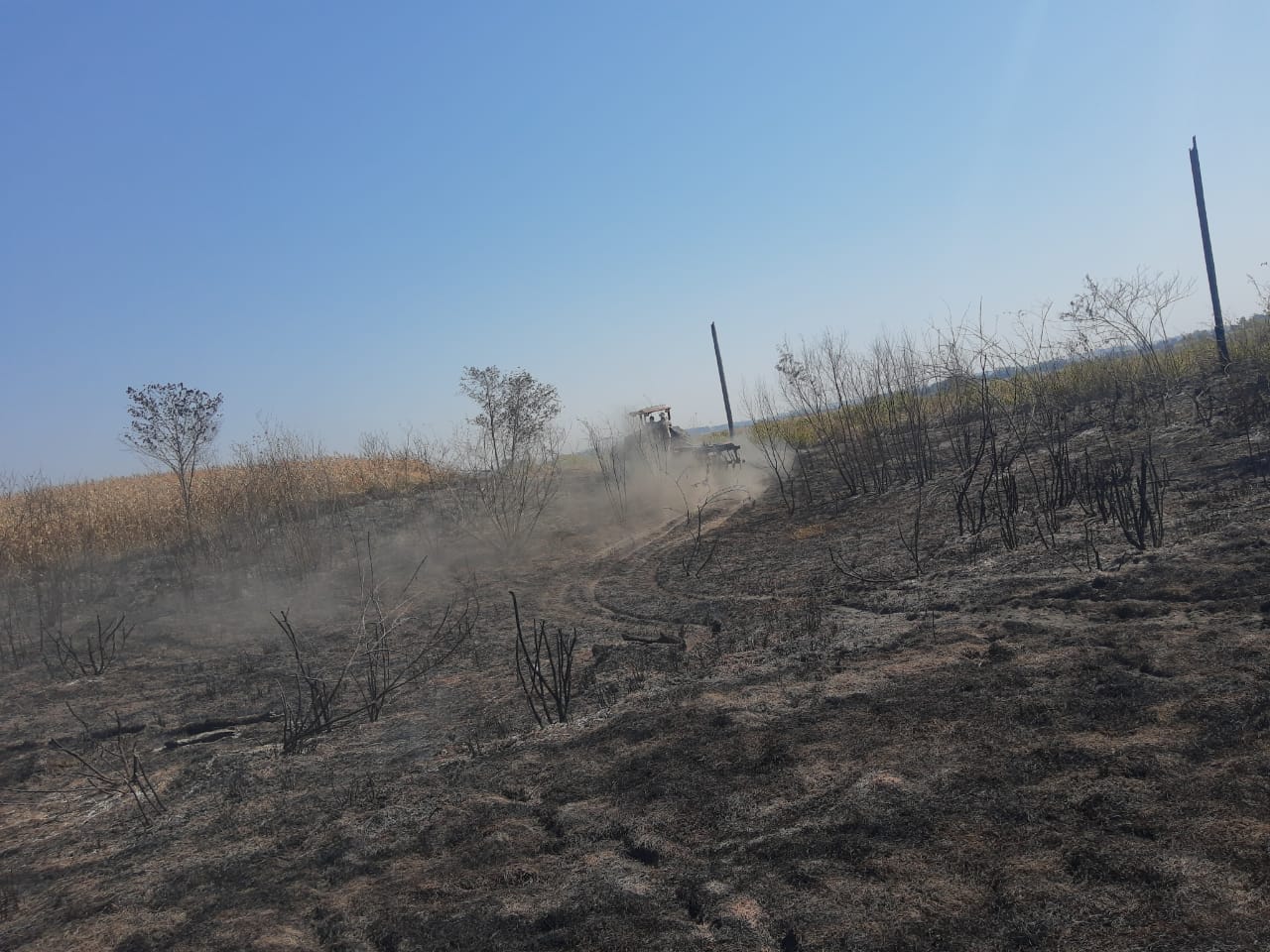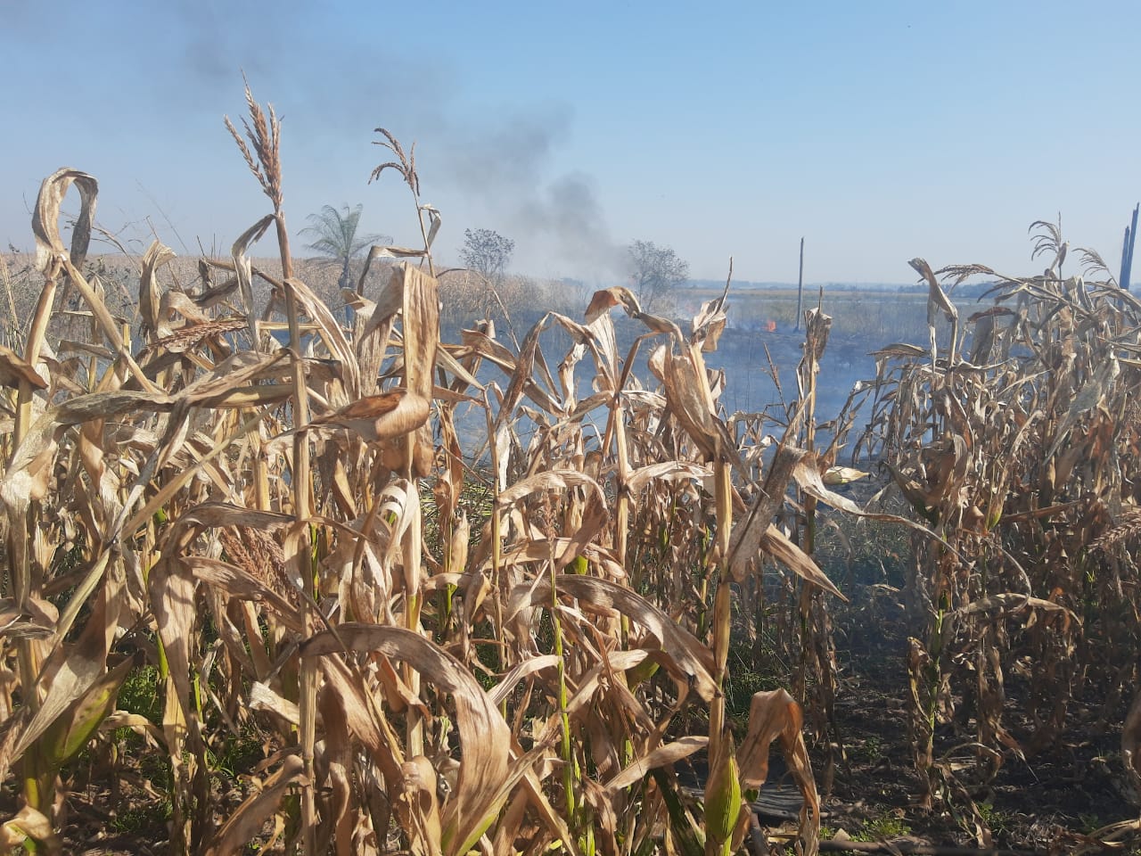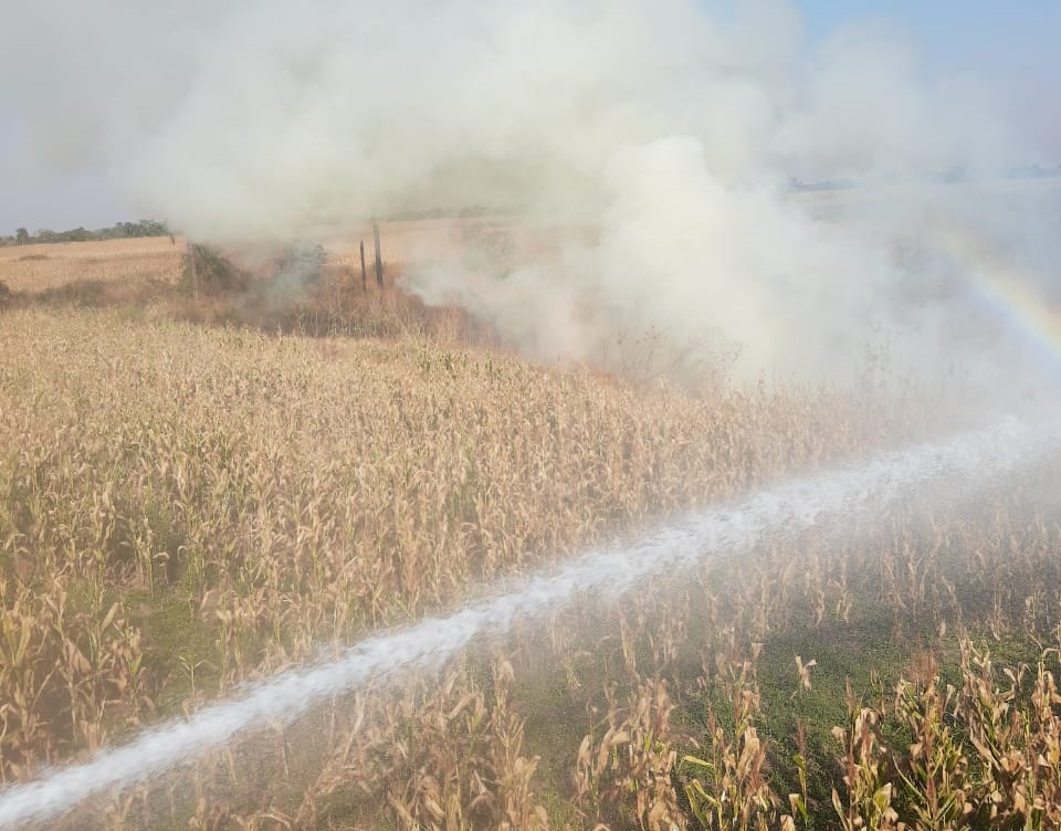 UM DOS INCÊNDIOS REGISTRADOS ONTEM (19-08) EXIGIU HABILIDADE DO CORPO DE BOMBEIROS DE NAVIRAÍ. AÇÃO EVITOU QUE FOGO DESTRUÍSSE UMA PLANTAÇÃO DE 120 ALQUEIRES DE MILHO.