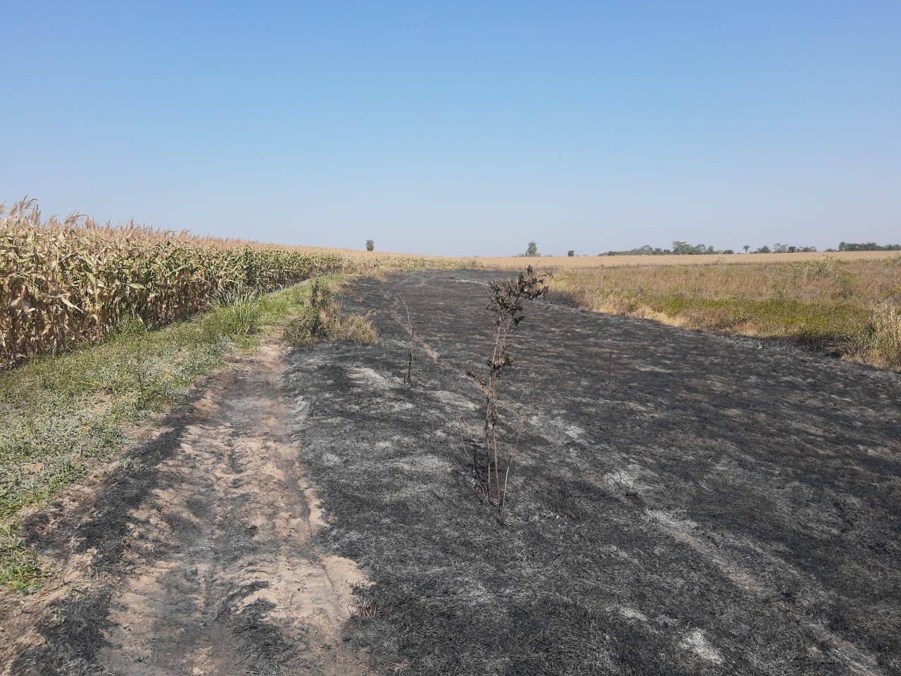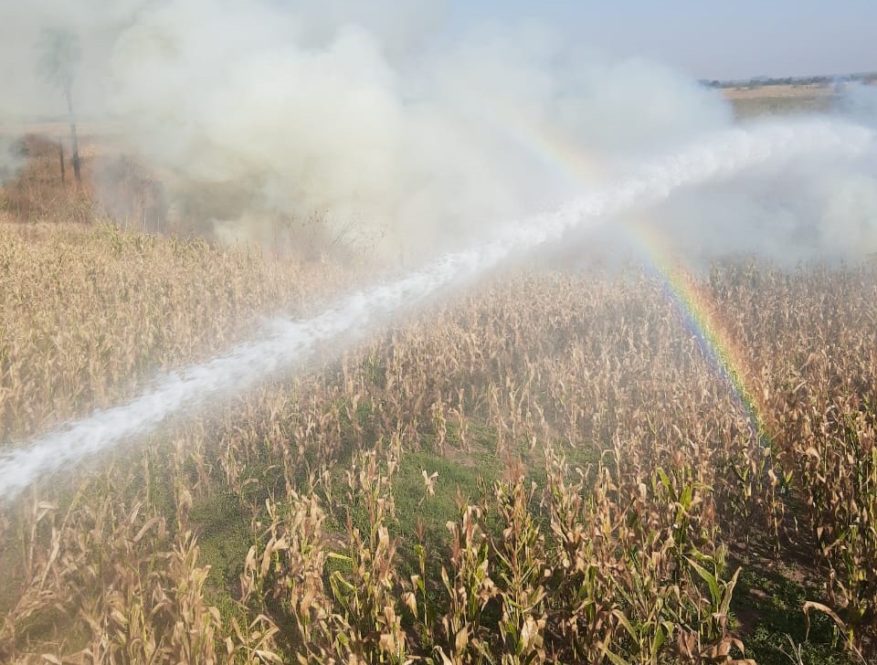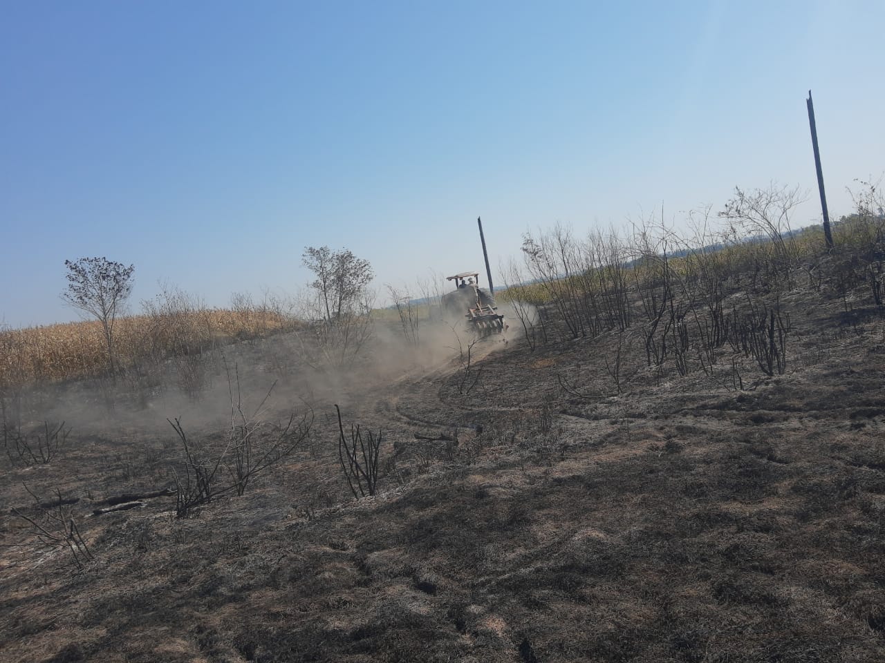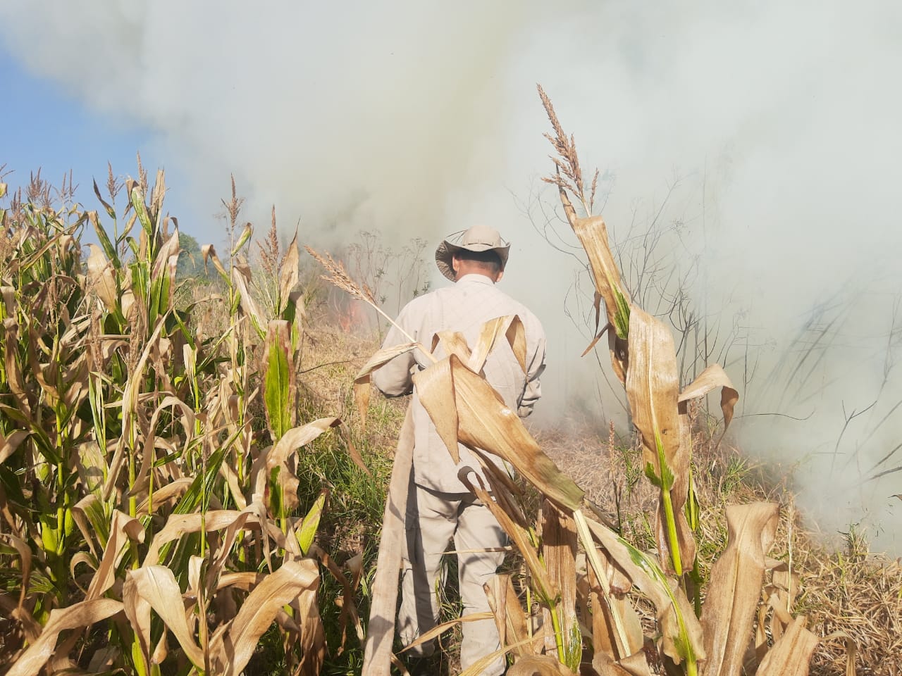 UM DOS INCÊNDIOS REGISTRADOS ONTEM (19-08) EXIGIU HABILIDADE DO CORPO DE BOMBEIROS DE NAVIRAÍ. AÇÃO EVITOU QUE FOGO DESTRUÍSSE UMA PLANTAÇÃO DE 120 ALQUEIRES DE MILHO.