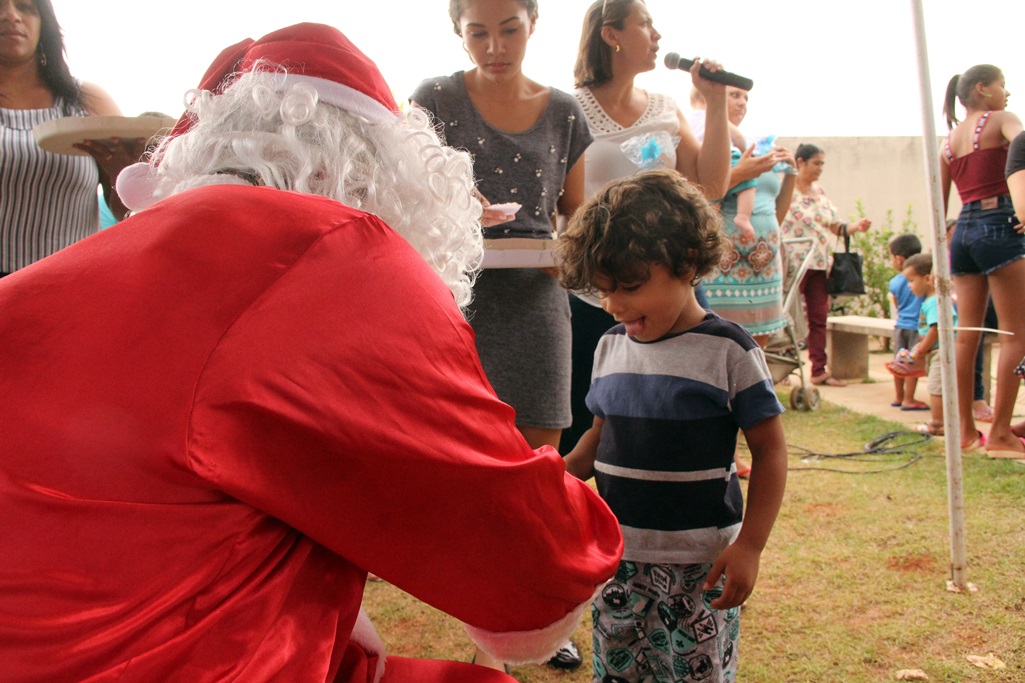 A primeira Dama do município Mariony Macedo que esteve presente, disse da alegria de ver pais e crianças participando ativamente e do contentamento em receber o seu presente de fim de ano, que com certeza enche a criança de animo e felicidade.