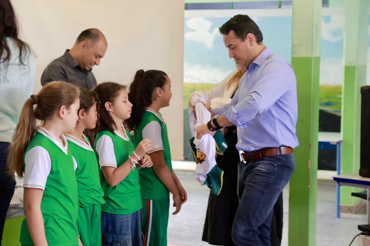 A Prefeitura de Naviraí, por meio da gestão Compromisso com o Futuro, deu mais um importante passo no fortalecimento da educação ambiental, financeira e nutricional nas escolas municipais. Nesta manhã, o Projeto Verdinho realizou a entrega oficial de camisetas e cartões “Verdinho” a 390 crianças das escolas Milton Dias Porto e José Carlos da Silva.