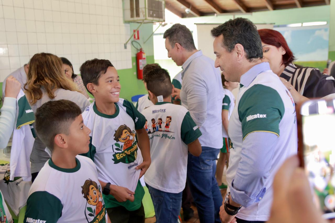 A ação é fruto da parceria entre o poder público e a iniciativa privada. Neste primeiro momento, o apoio da empresa Nilcatex Têxtil foi fundamental para viabilizar as camisetas e fortalecer o pontapé inicial do projeto. A presidente da empresa, Simone Oliveira, acompanhou de perto a entrega ao lado do prefeito Rodrigo Sacuno, do gerente de Desenvolvimento Econômico José Antonio Umenura (Mano) , Diretor da escola Milton Dias Porto Admilson Santana, do professor André Santana Vieira, gerente de Educação e Cultura, e das mães dos alunos, que celebraram o momento com entusiasmo.