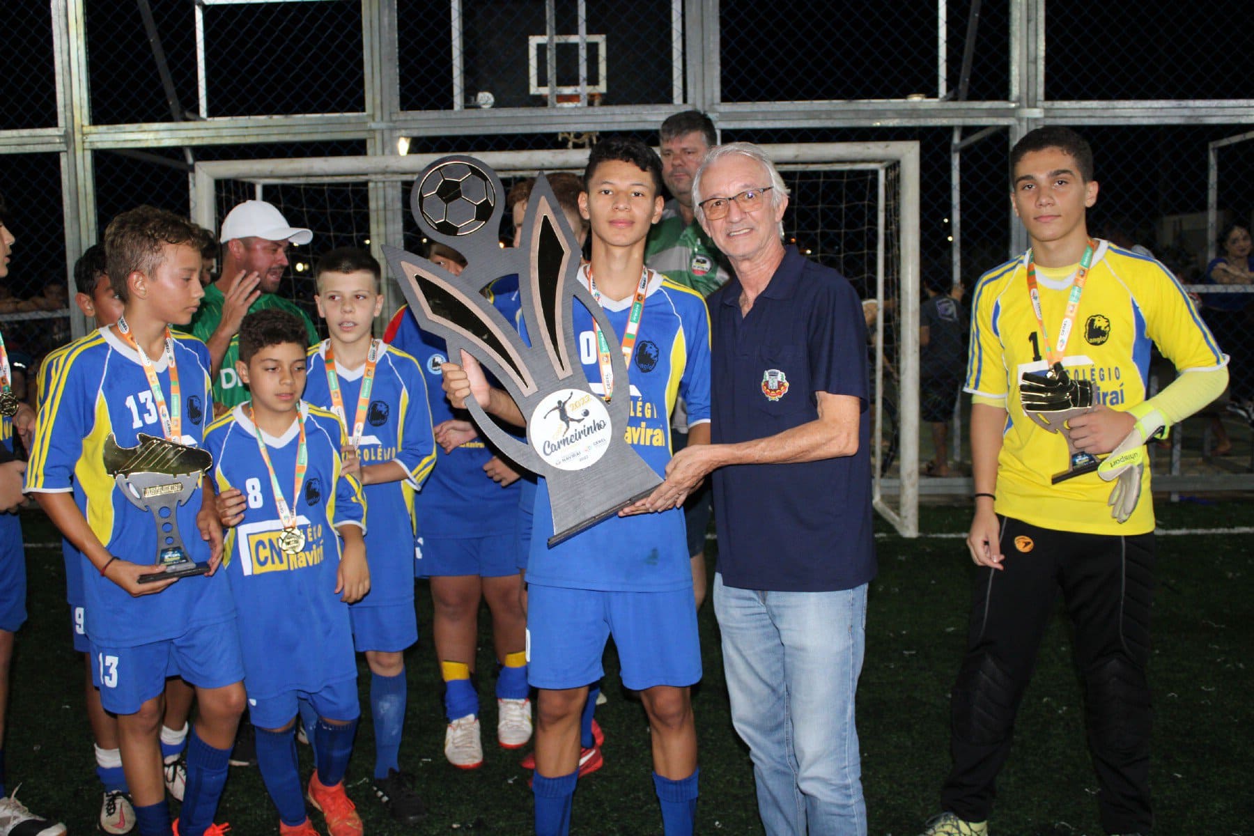 A taça de campeão da categoria Sub-13 também foi conquistada pelo Colégio Naviraí. A equipe garantiu o título da categoria ao vencer a Escolinha do Pitu pelo placar de 5 a 2.