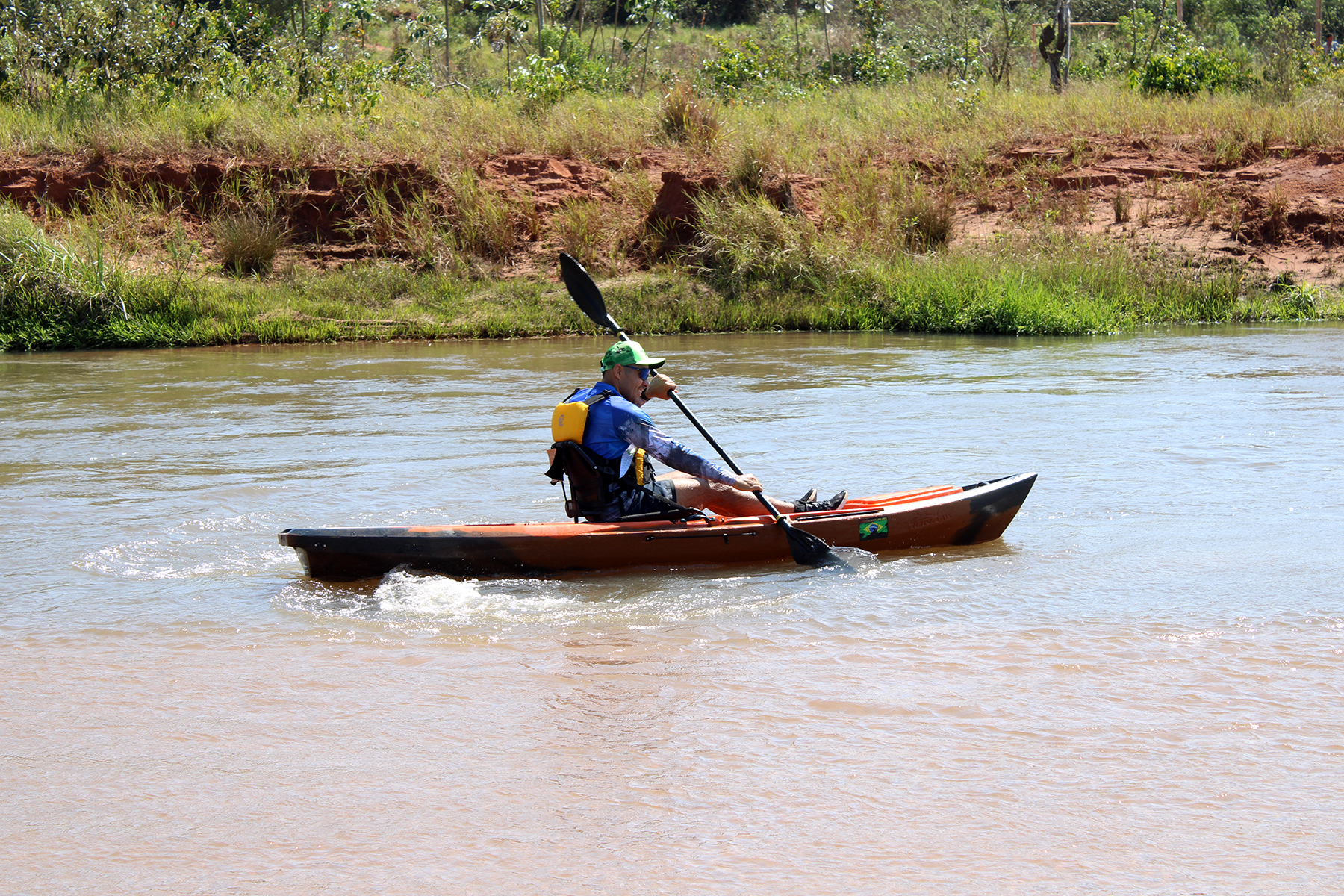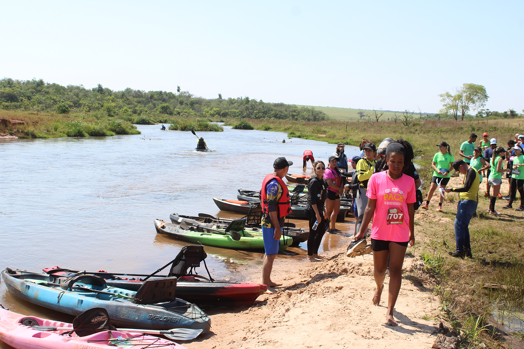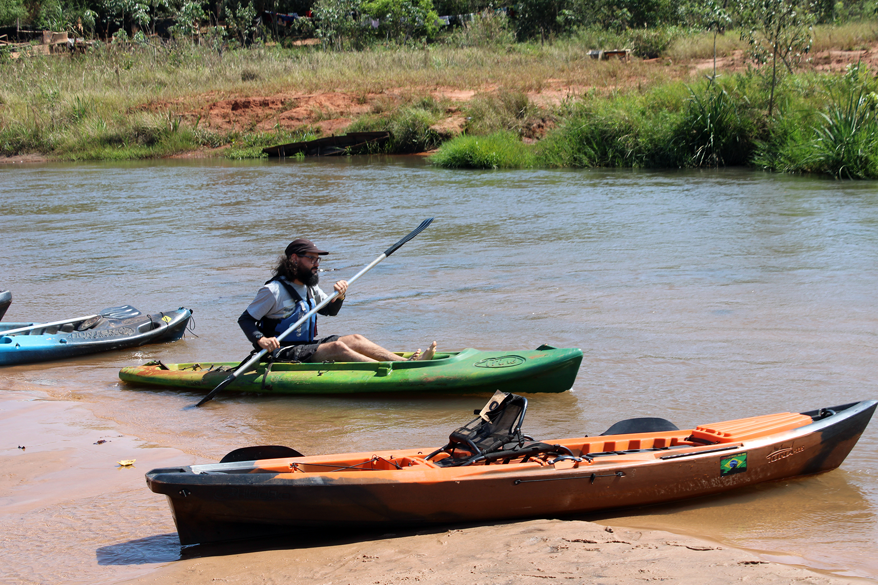 Canoístas remaram de caiaque nas águas do Rio Laranjaí até o Sítio Ecológico Pachama (Foto: Júnior Lopes/ Assessoria)