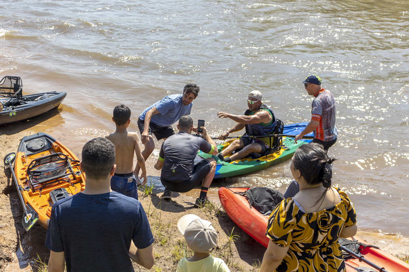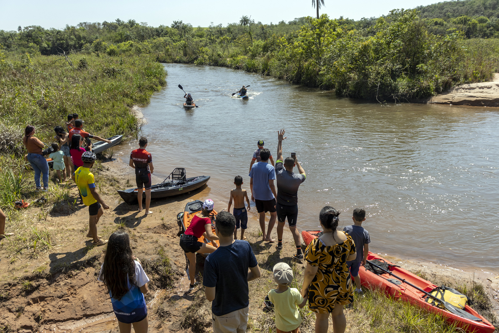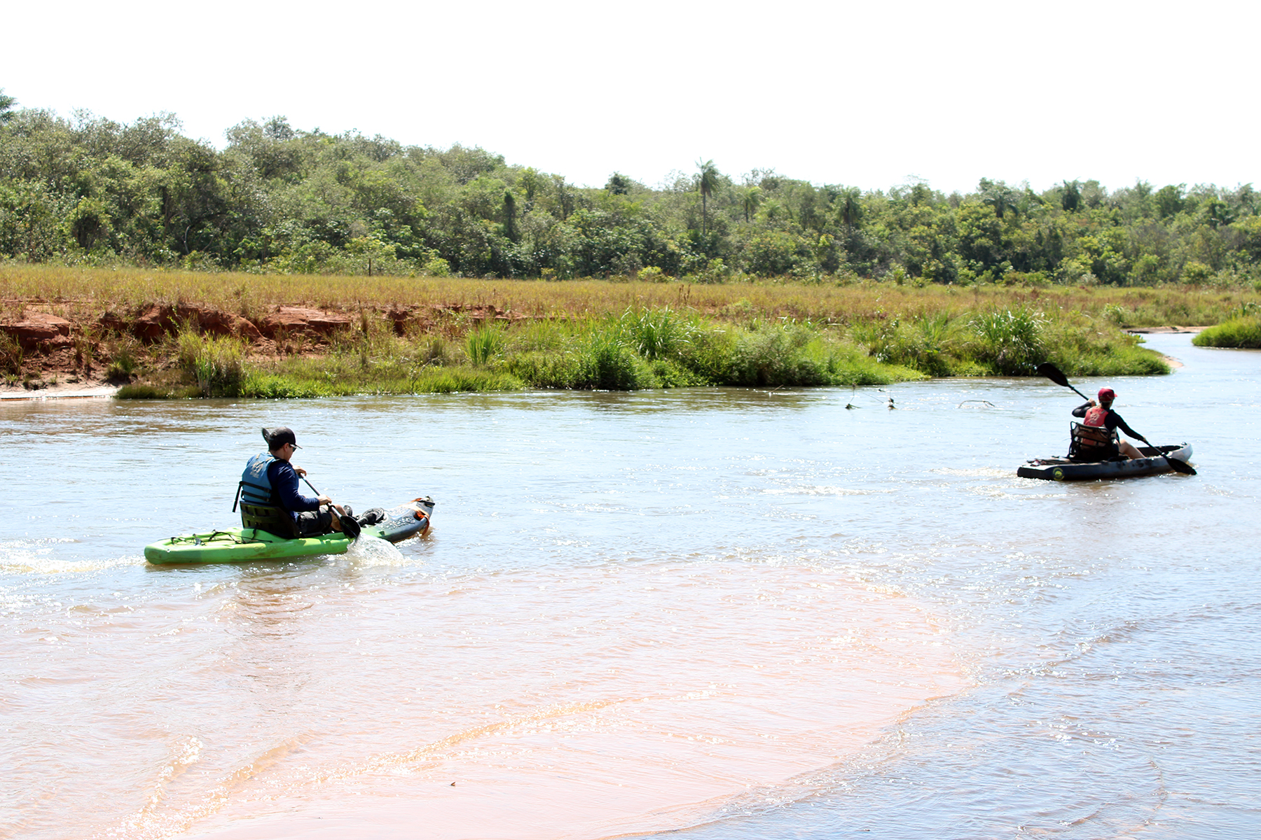 Canoístas remaram de caiaque nas águas do Rio Laranjaí até o Sítio Ecológico Pachama (Foto: Júnior Lopes/ Assessoria)