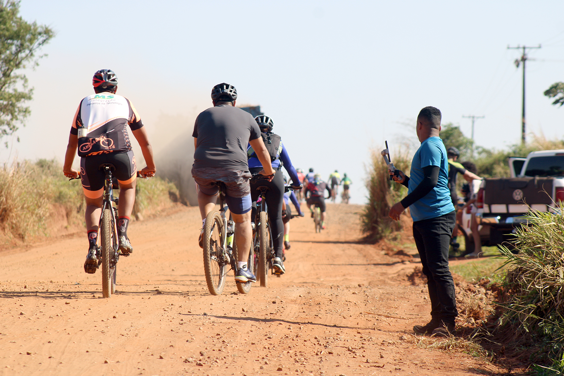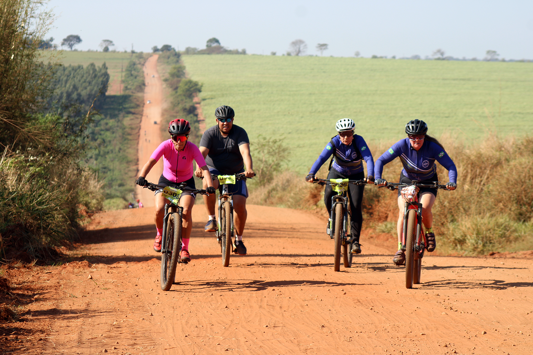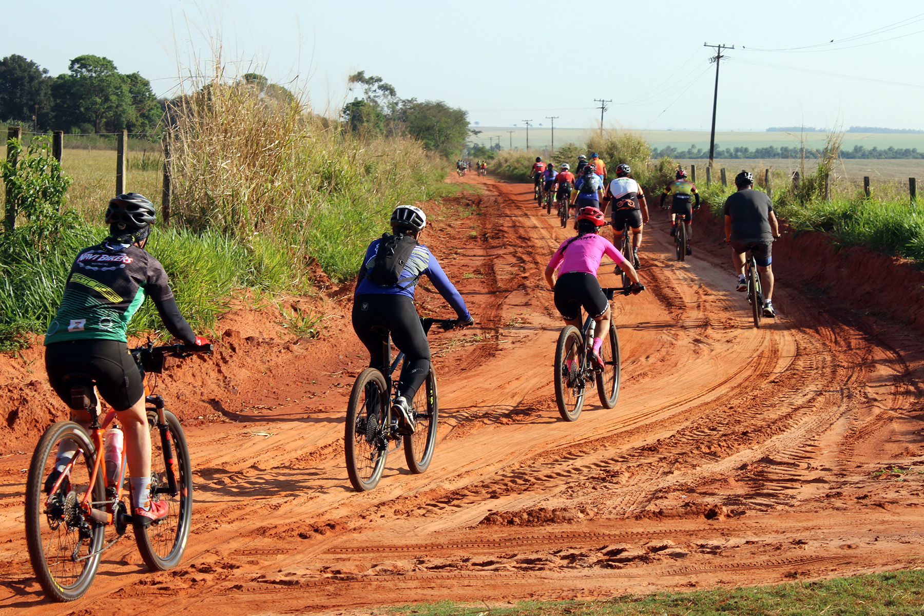 Ciclistas percorreram 32 quilômetros pelas estradas rurais até a chegada no Assentamento Juncal (Foto: Júnior Lopes/ Assessoria)