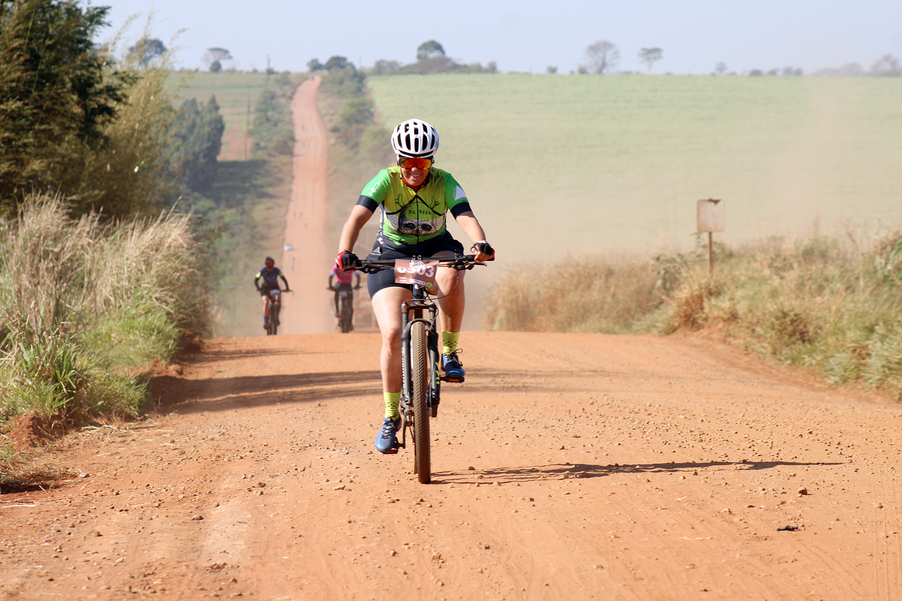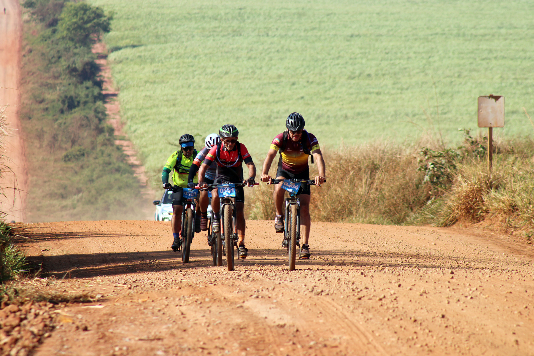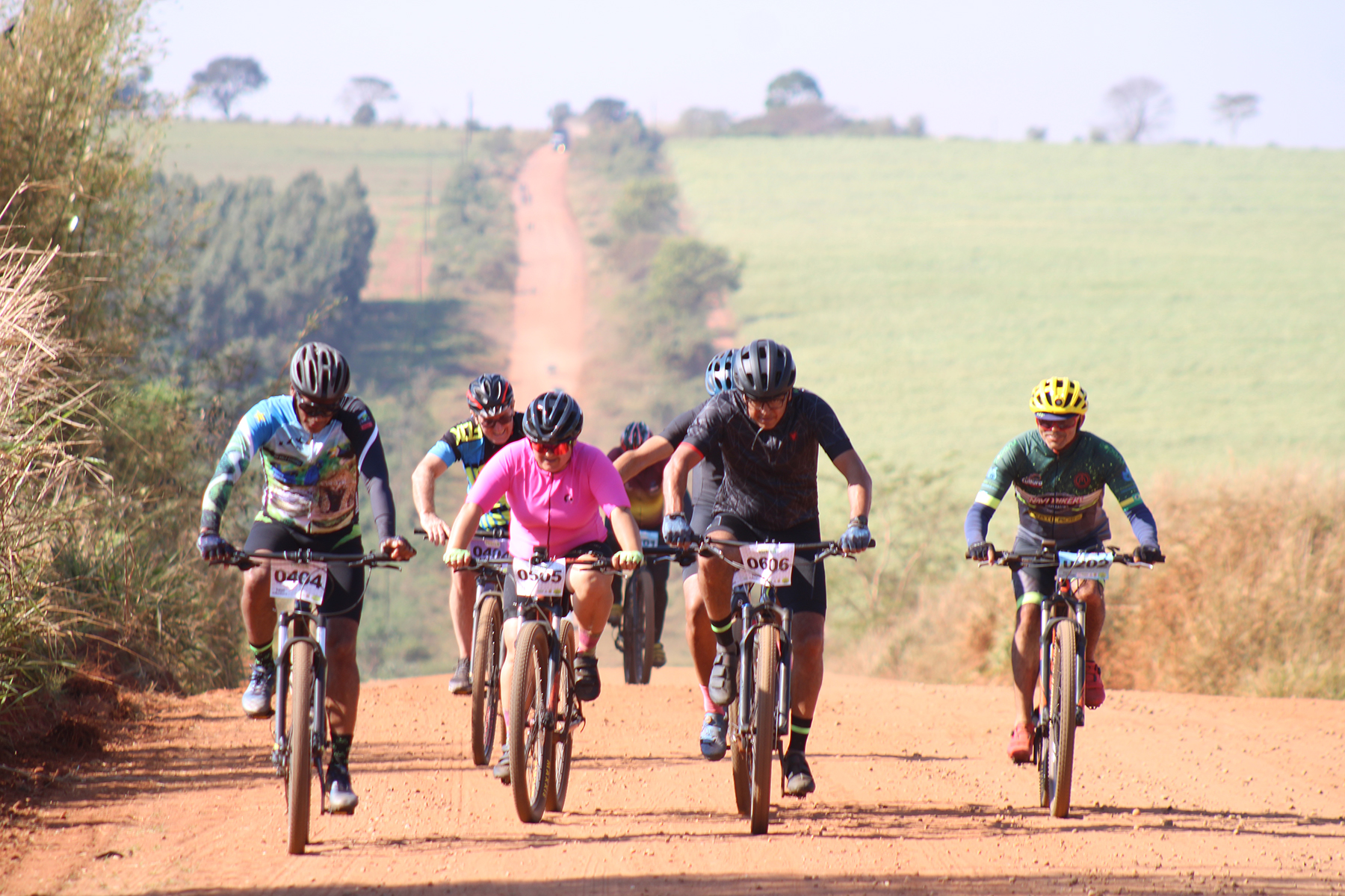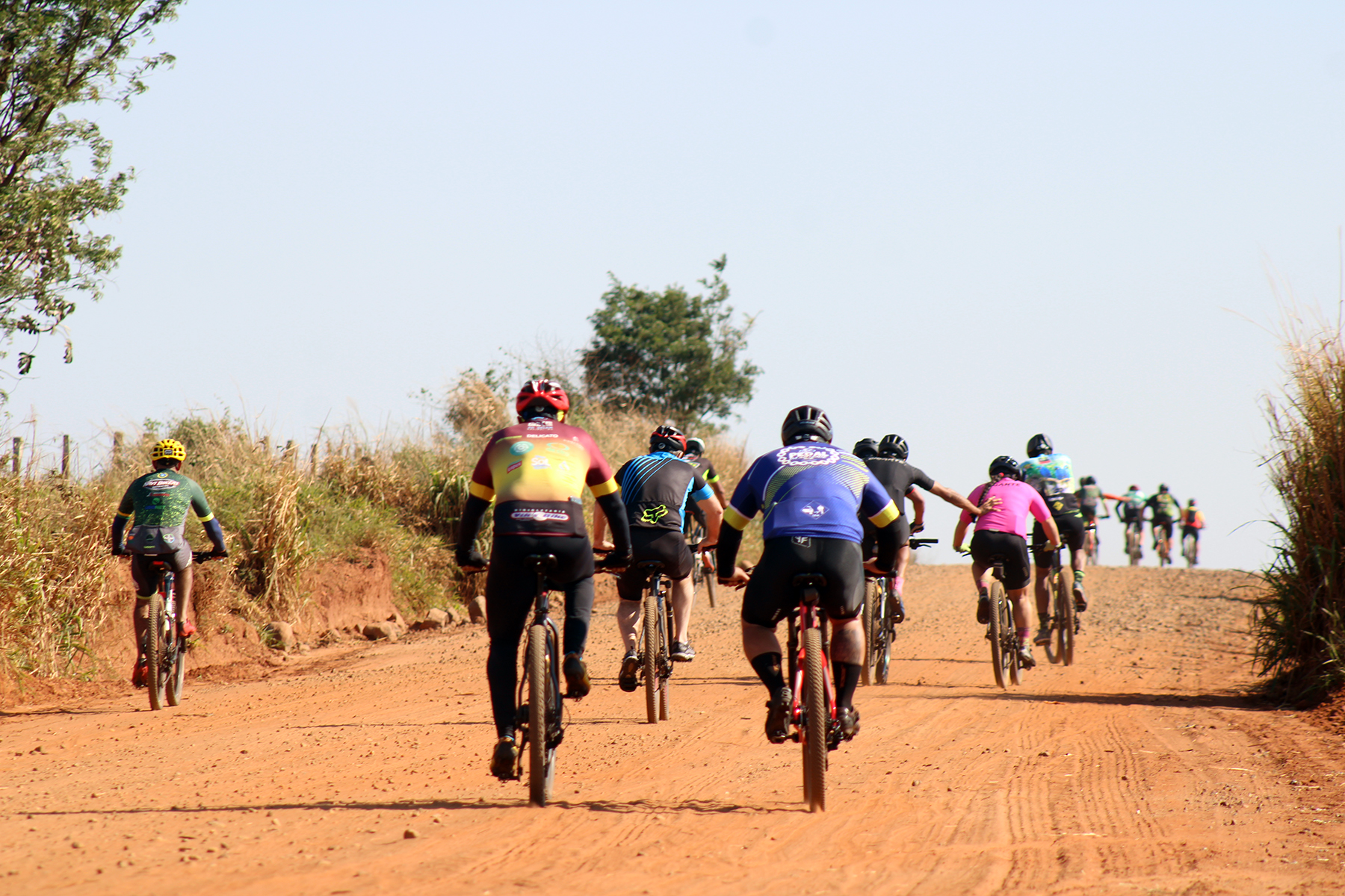 Ciclistas percorreram 32 quilômetros pelas estradas rurais até a chegada no Assentamento Juncal (Foto: Júnior Lopes/ Assessoria)
