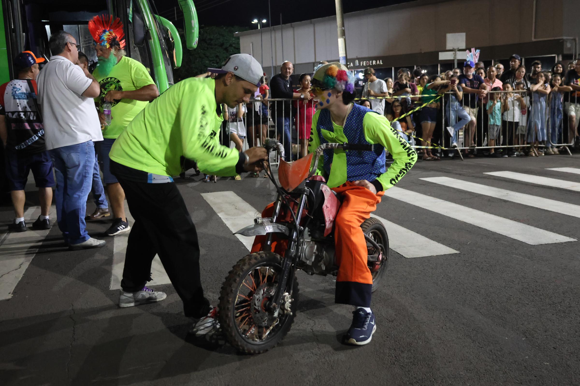 A noite desta sexta-feira (11-04) vai ficar marcada na memória de muitas crianças, jovens e adultos que assistiram o espetáculo radical apresentado pela equipe de motociclistas e palhaços “Jacaré Du Brejo”.