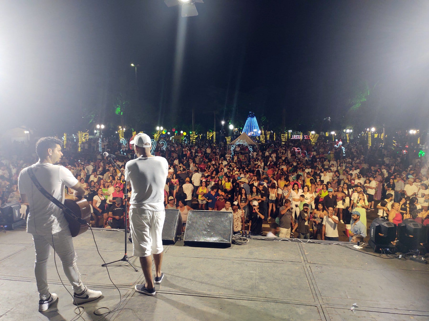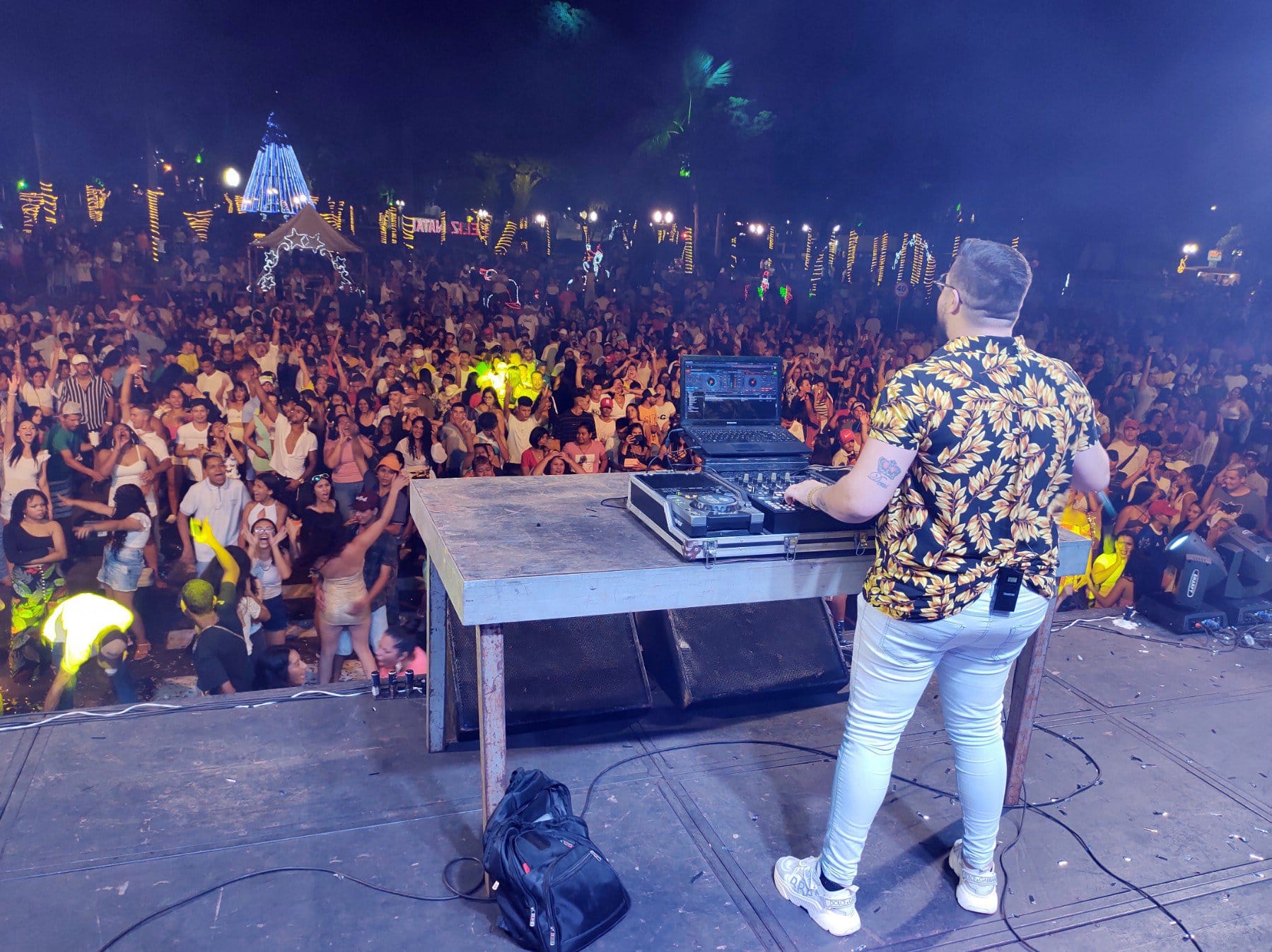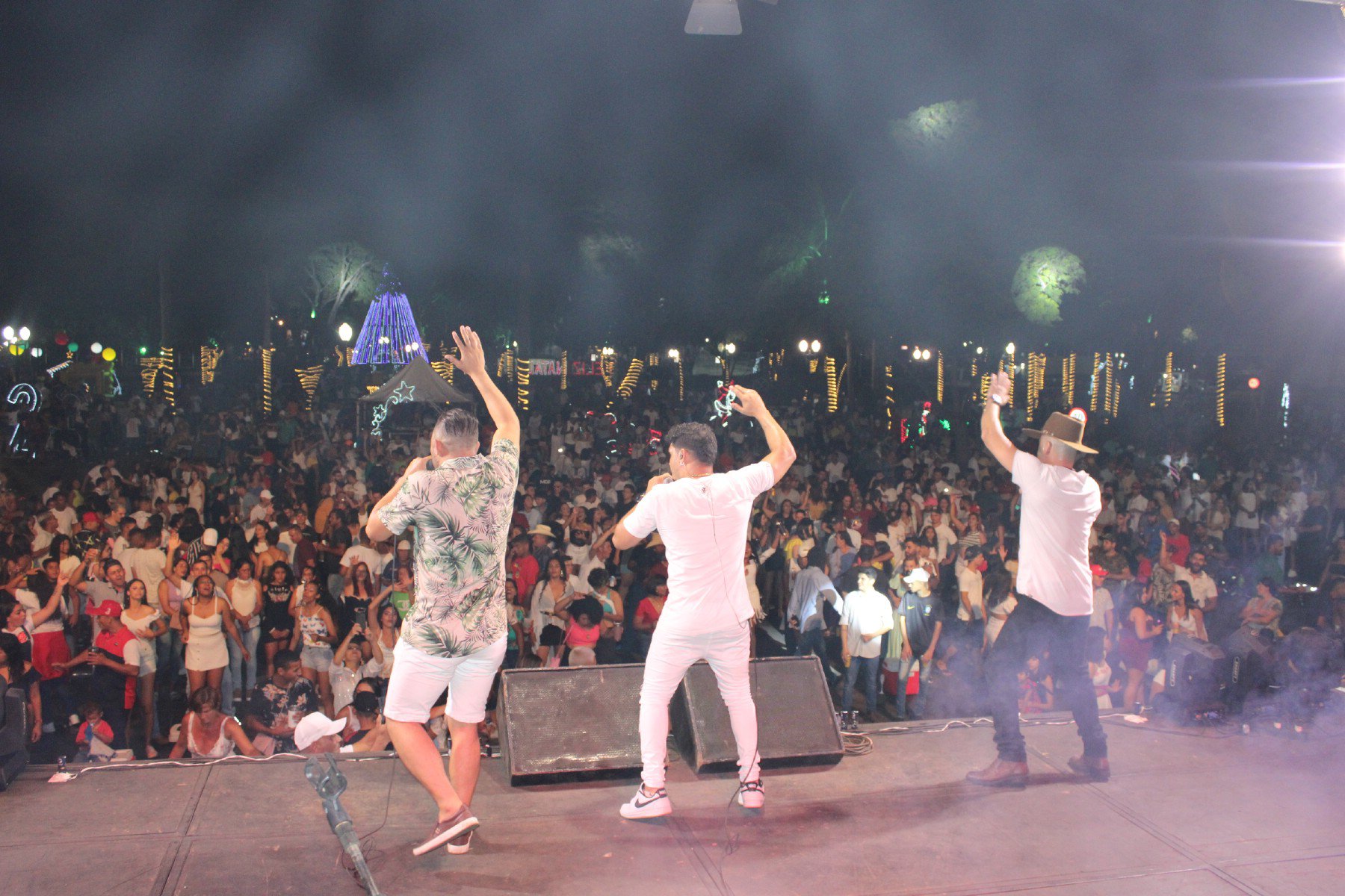 A festa do Réveillon na Praça contou com queima de fogos de baixo ruído à meia-noite para comemorar a chegada de 2023 e foi encerrada com apresentação do DJ Marcos Votan.