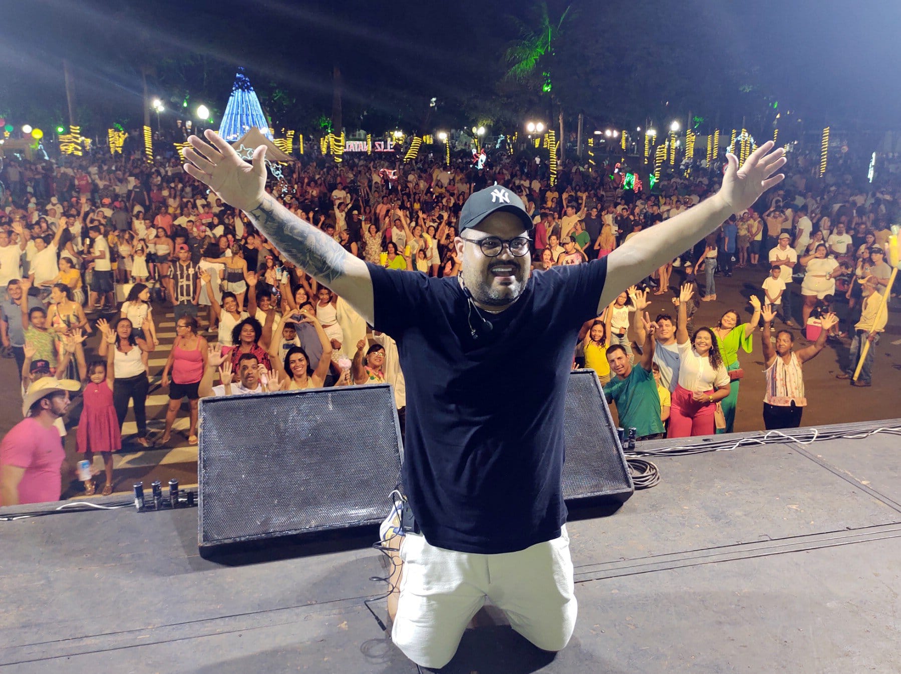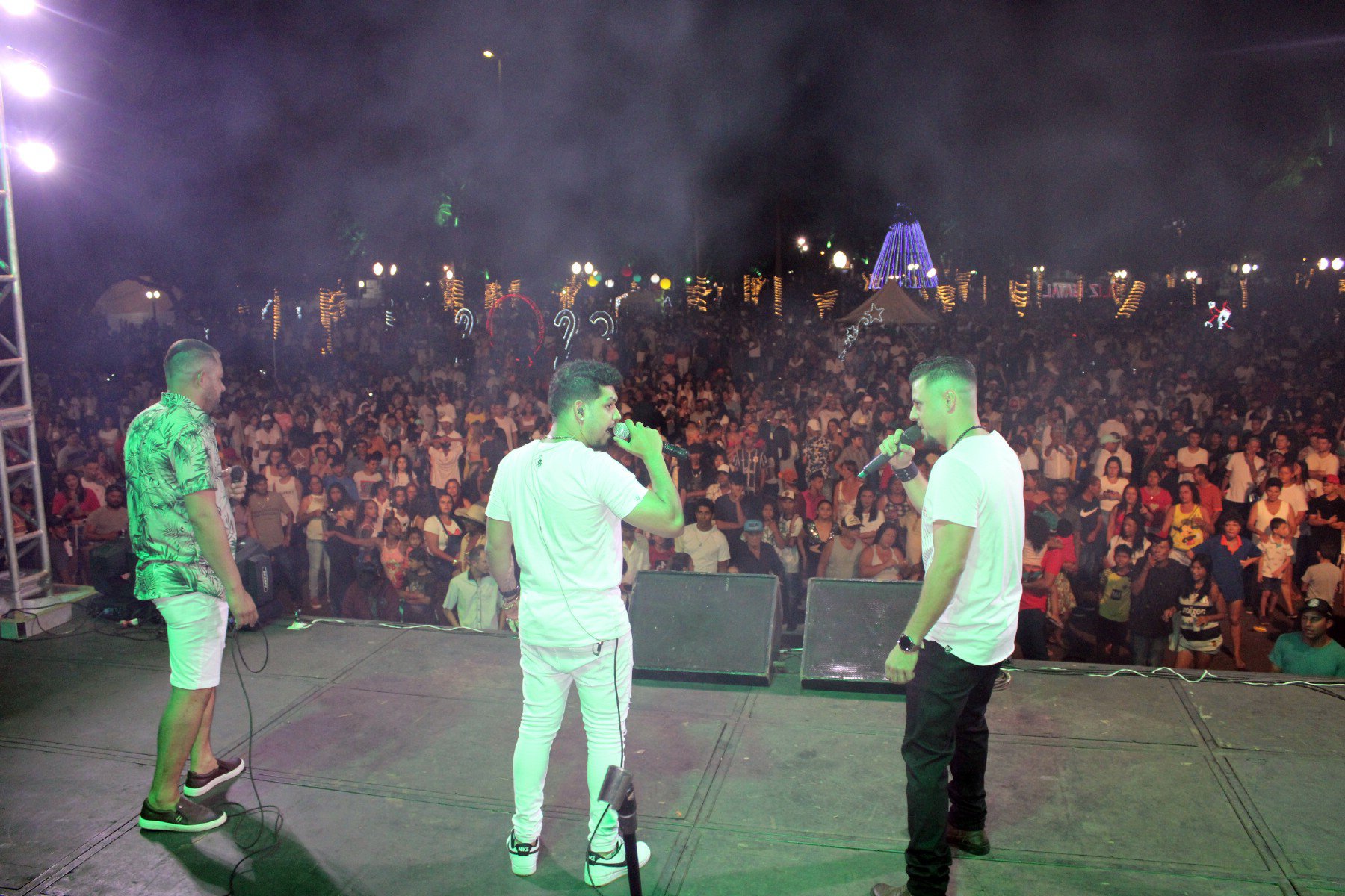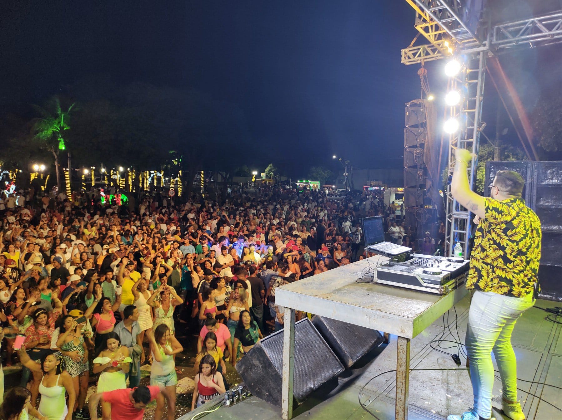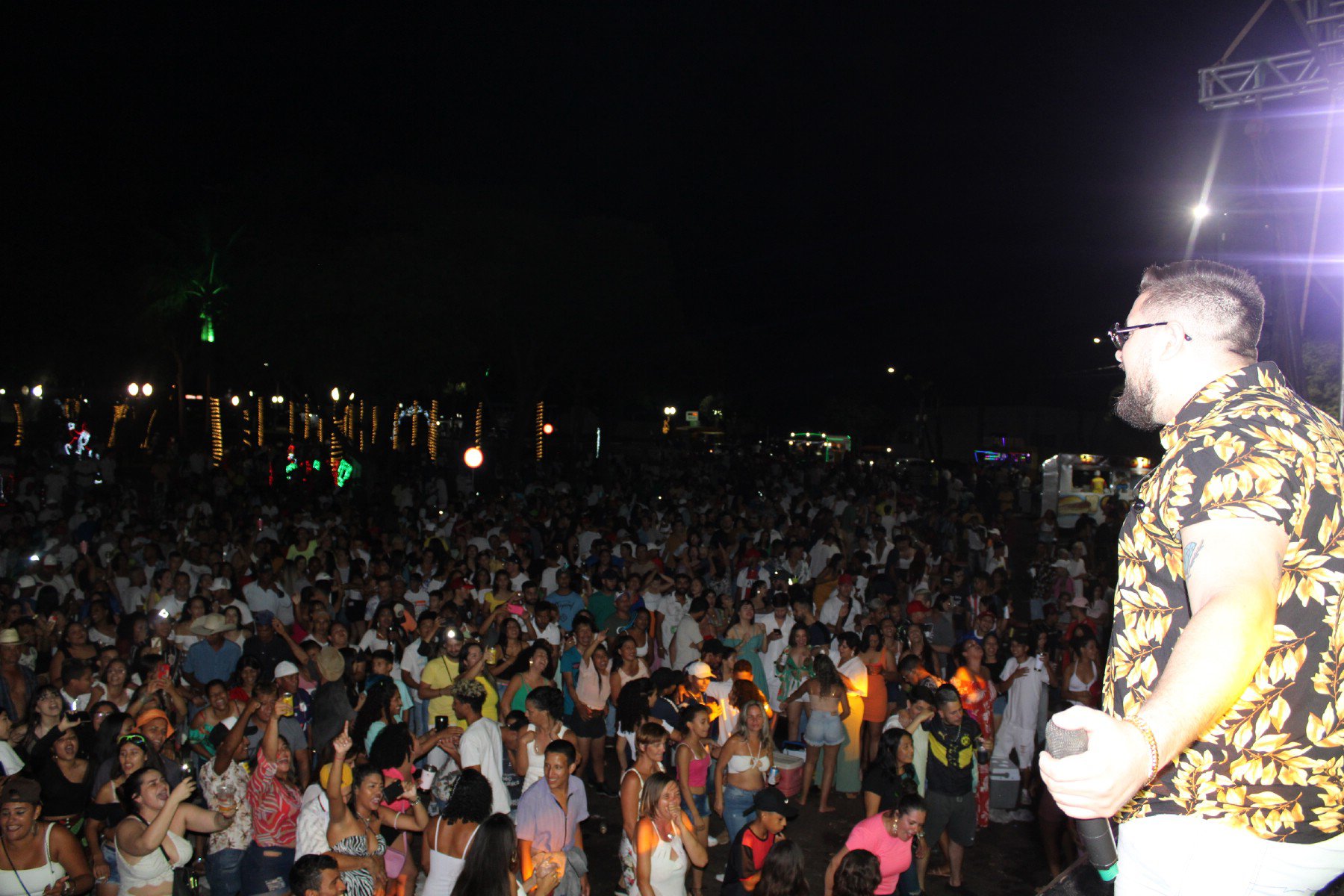 A festa do Réveillon na Praça contou com queima de fogos de baixo ruído à meia-noite para comemorar a chegada de 2023 e foi encerrada com apresentação do DJ Marcos Votan.
