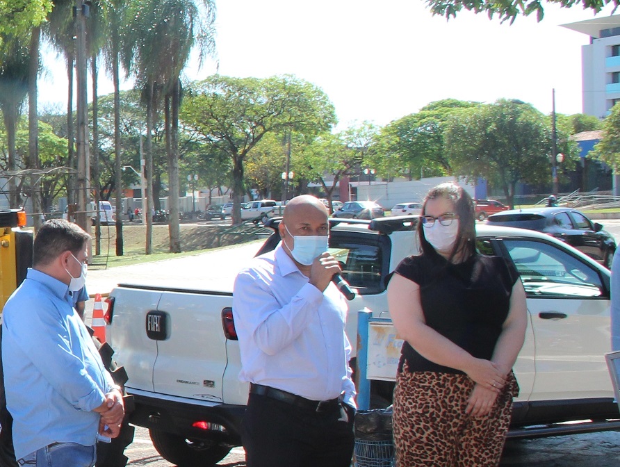 O gerente do Núcleo de Vigilância Sanitária, veterinário José Mário Fernandes recebeu as chaves da pick-up Touro. O gerente Fabiano Costa recebeu as chaves da motoniveladora. Tão logo o fornecedor entregue mais uma pick-up, o veículo será entregue à Saúde do Trabalhador.