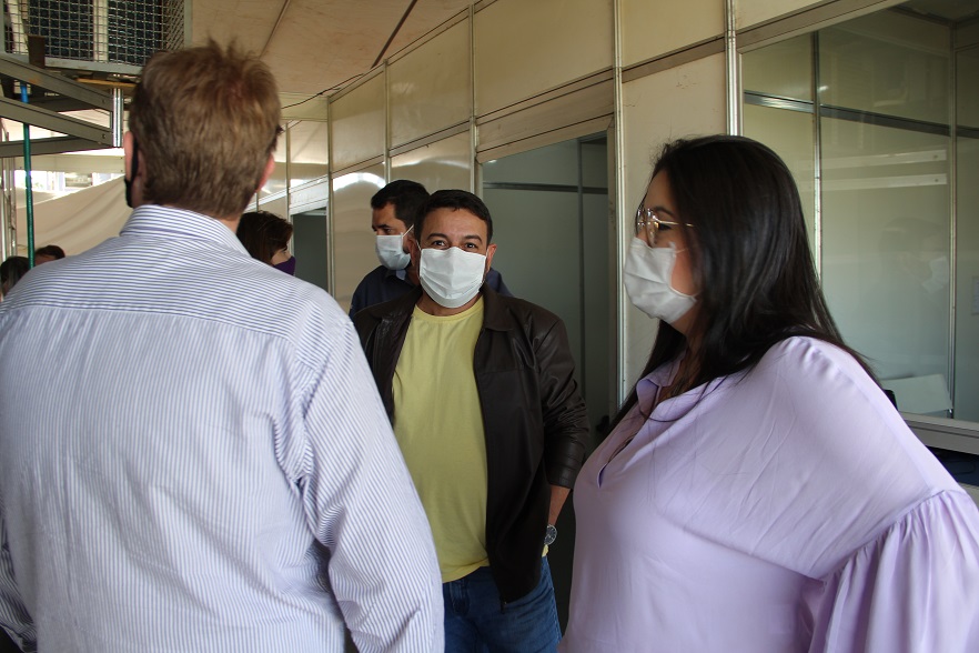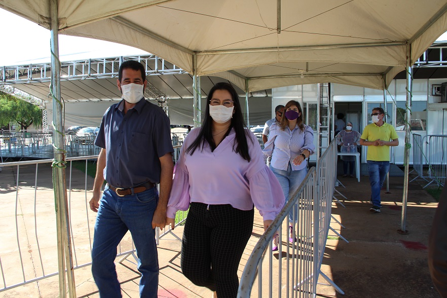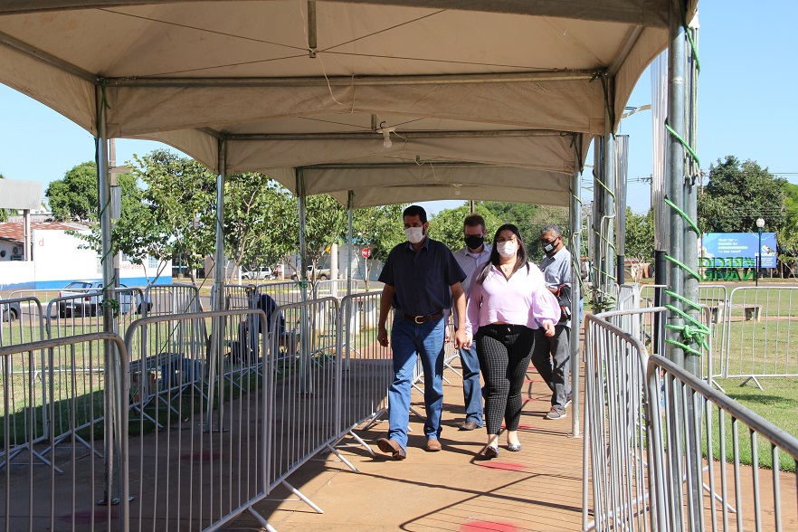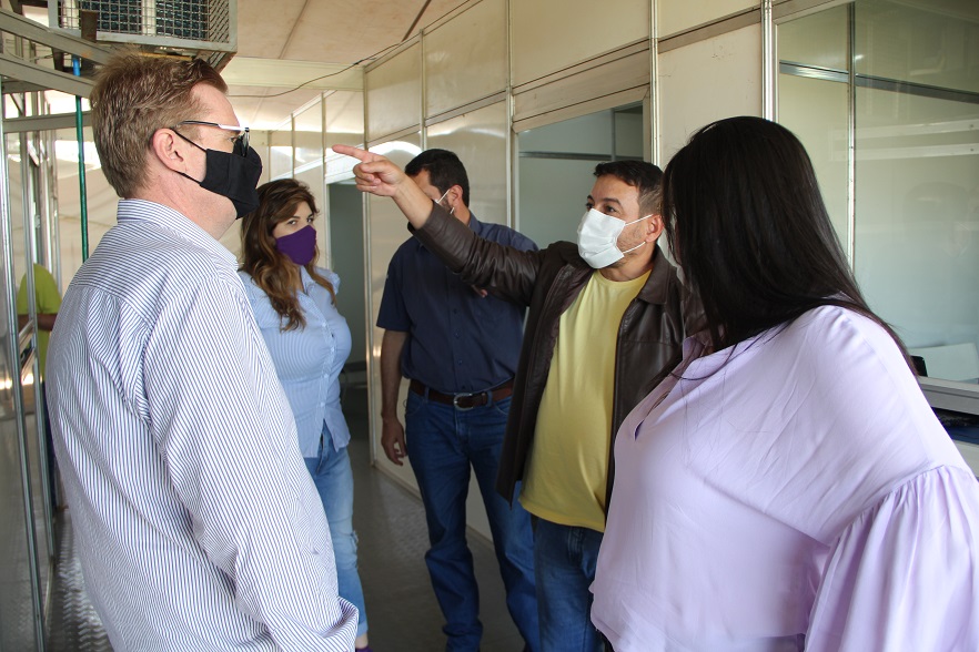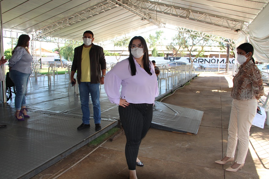 Prefeita Rhaiza Matos (à esquerda) vistoriou todos os consultórios e dependências do ambulatório de campanha para reativar o Centro de Triagem de combate à Covid. Foto: Roney Minella