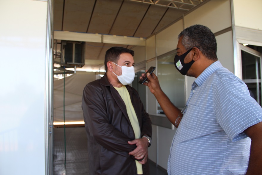 Ambulatório de campanha (Centro de Triagem e Atendimento de Pacientes da Covid-19) reinaugurado hoje pela prefeita de Naviraí Rhaiza Matos e gerente de Saúde Márcio Vidal Figueiredo. Foto: Roney Minella
