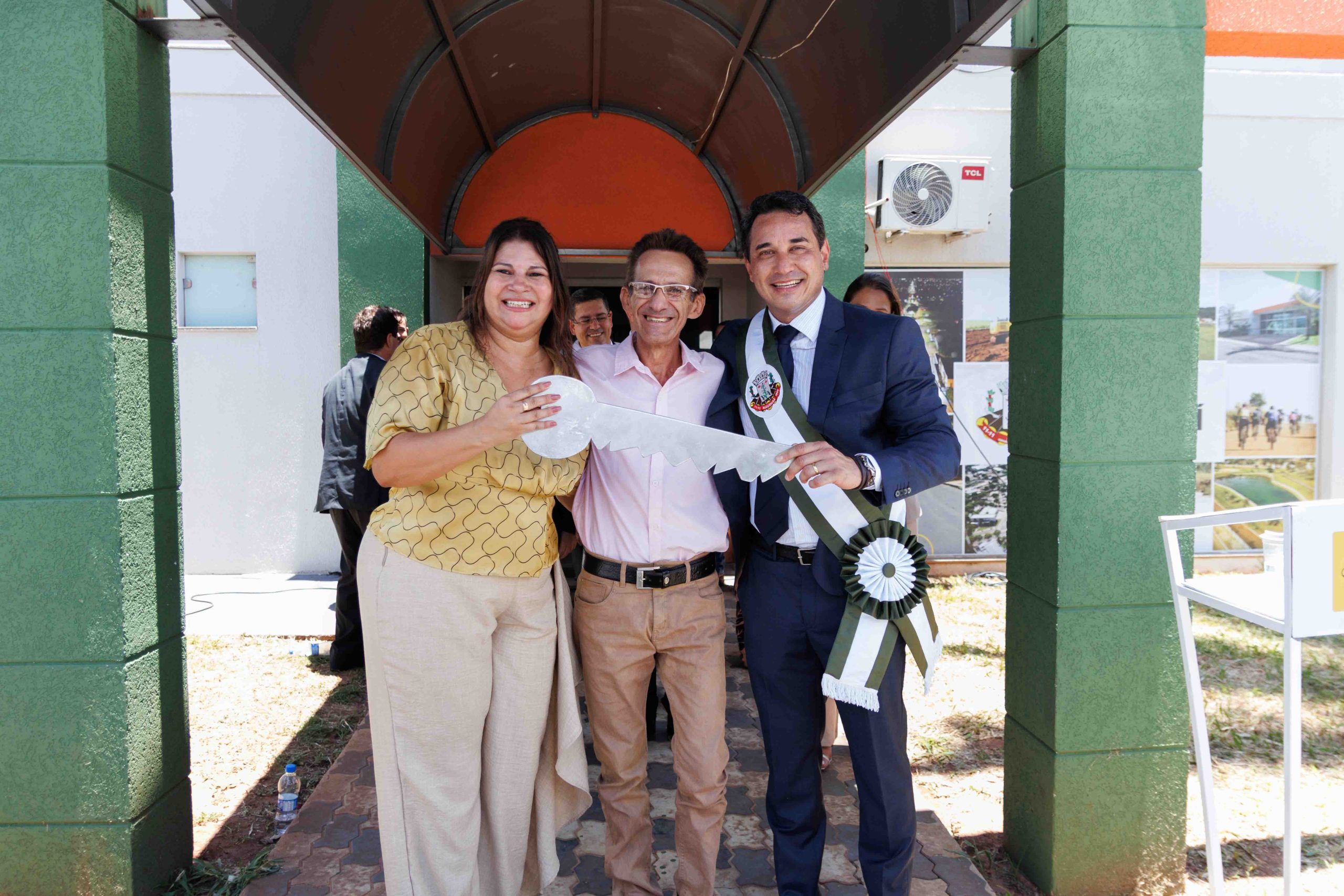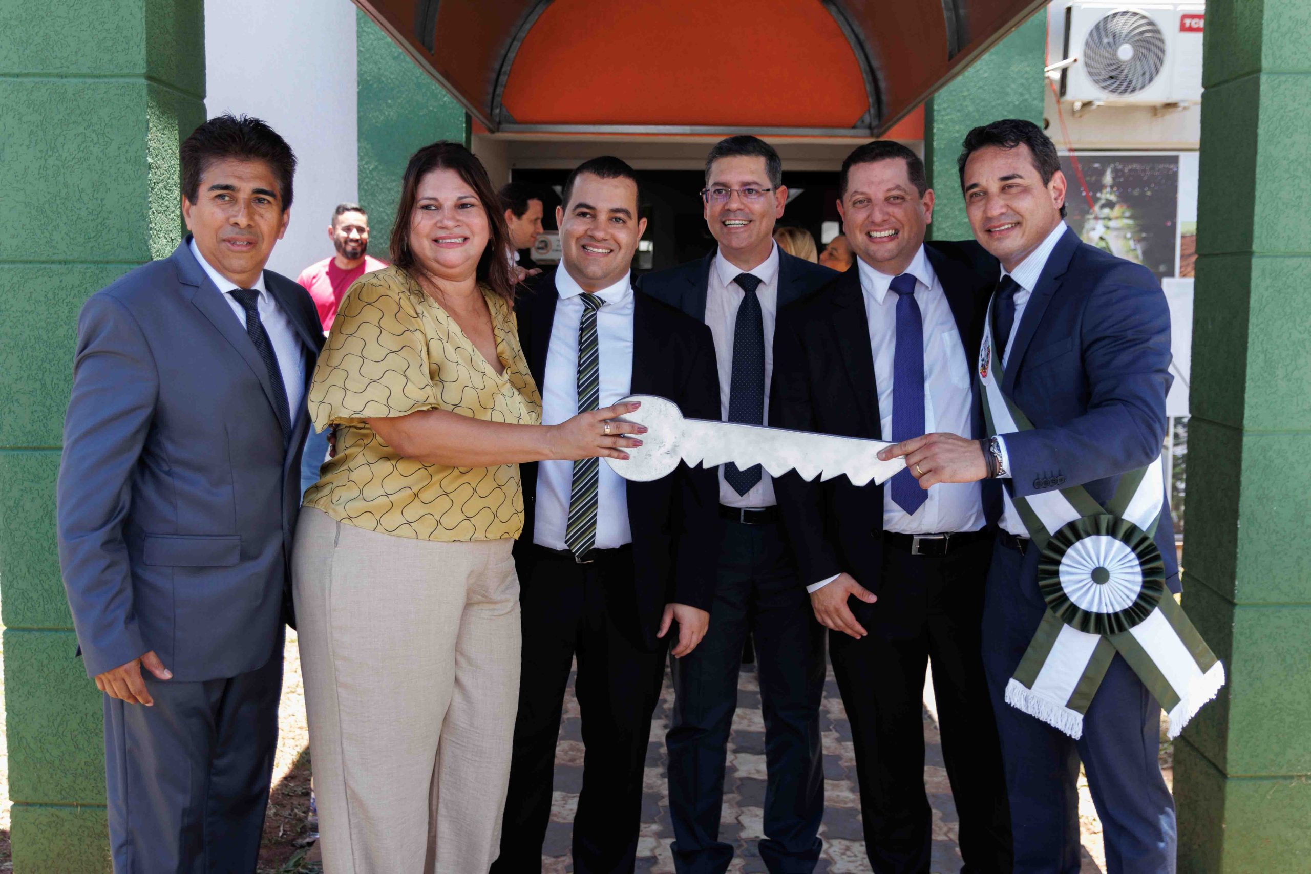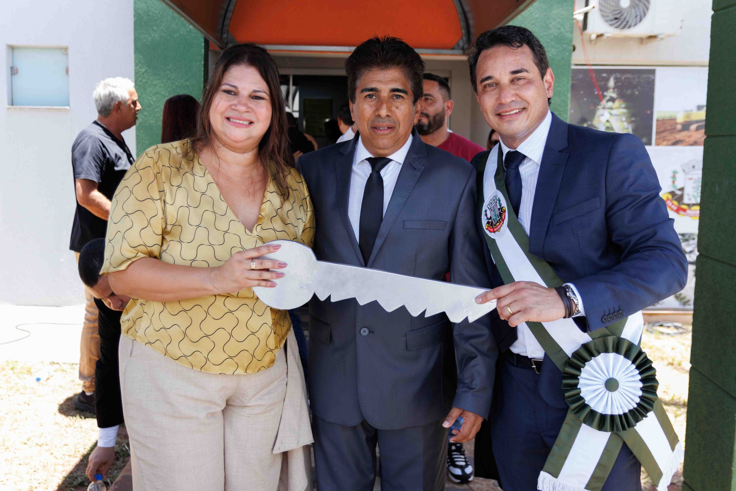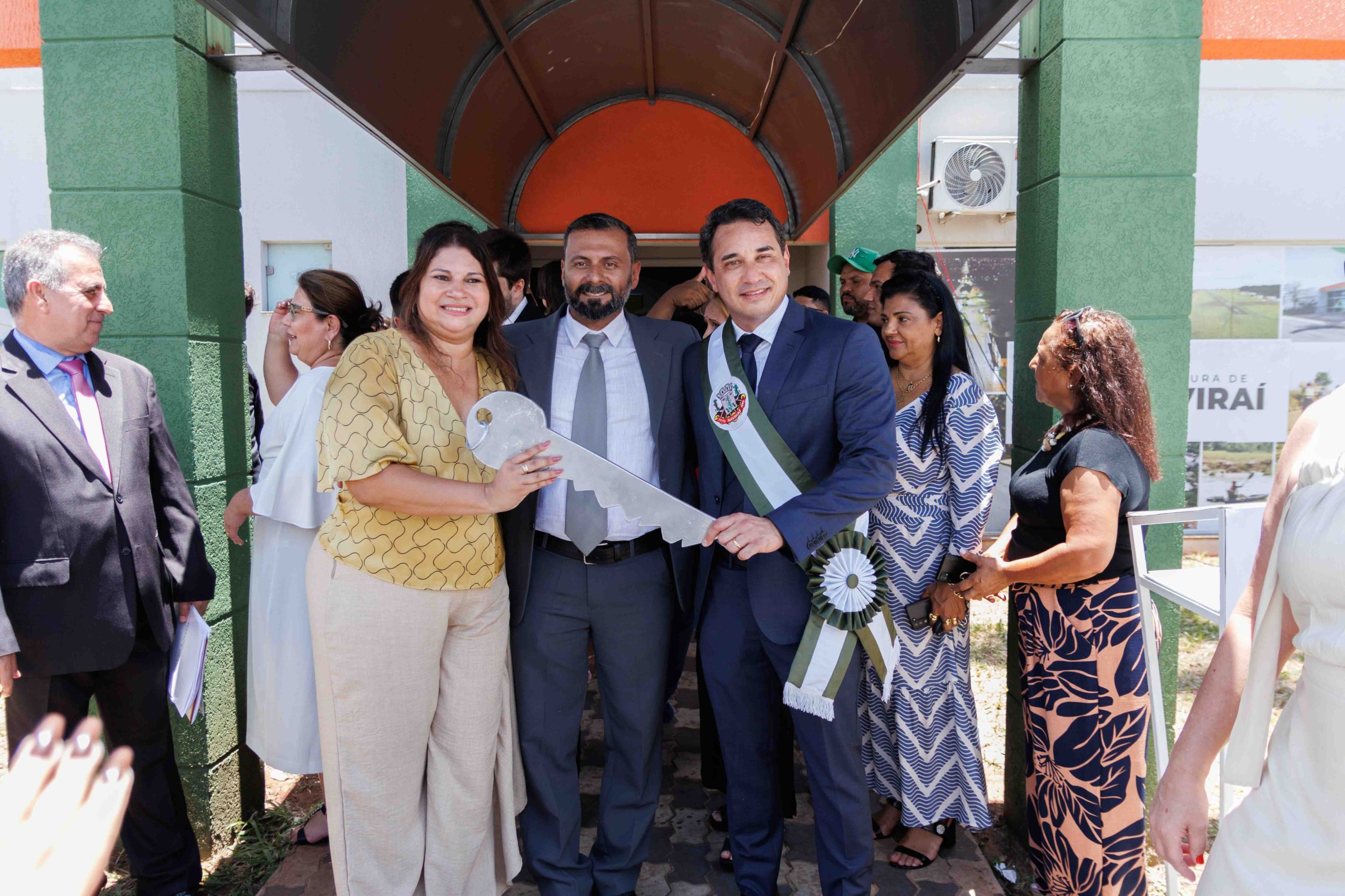 Por volta das 10h30, teve início a Cerimônia de Transmissão de Cargo em frente ao Paço Municipal. Após formação do espaço das autoridades e execução dos hinos oficiais do Brasil, Estado e Município, para cumprir a Lei Orgânica do Município, a ex-prefeita Rhaiza Matos entregou a chave simbólica da Prefeitura e passou a Faixa Oficial ao prefeito Rodrigo Sacuno. Concomitantemente, o cargo de vice-prefeito foi transmitido do ex-vice-prefeito Márcio Araguaia para Telma Minari.