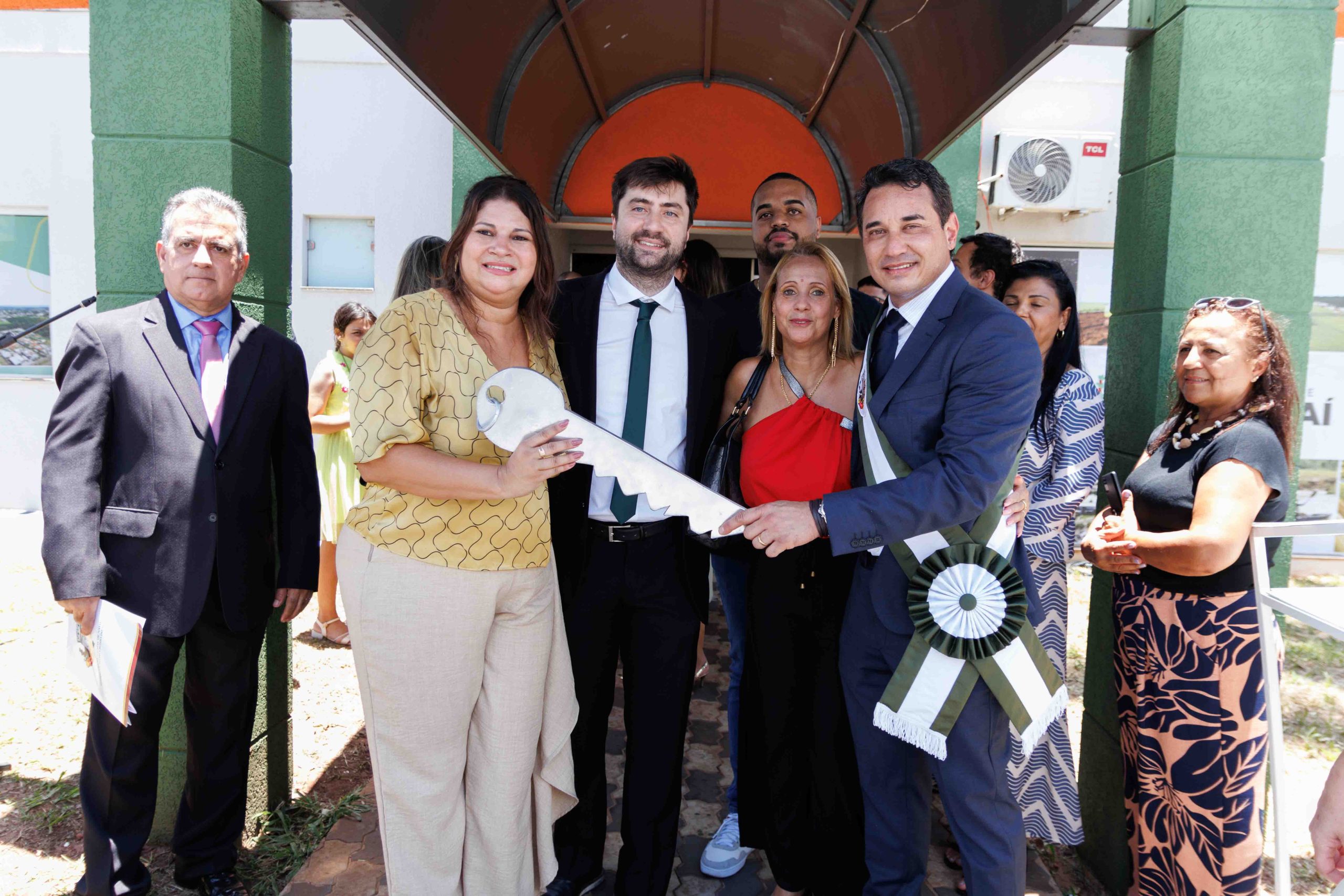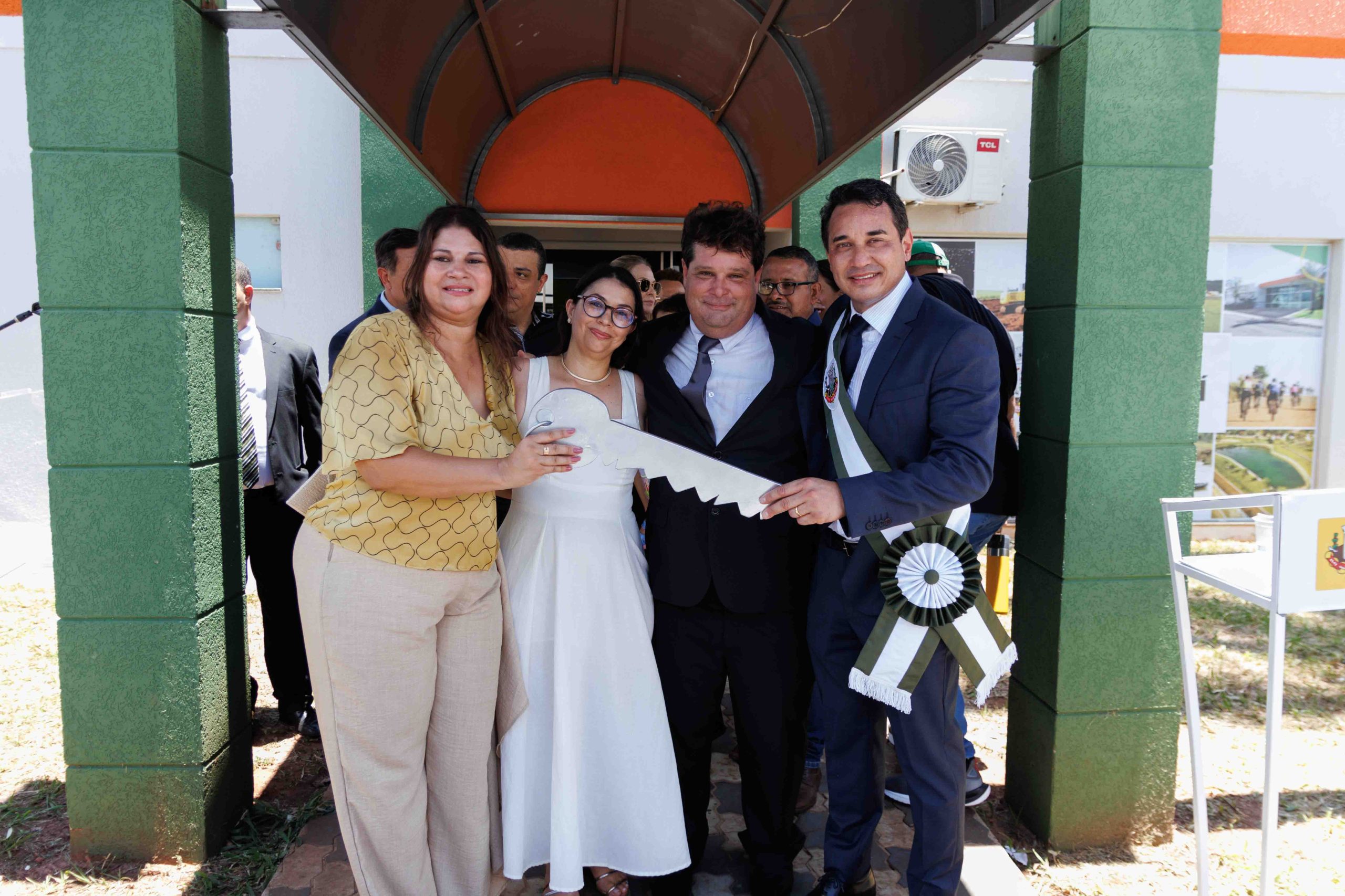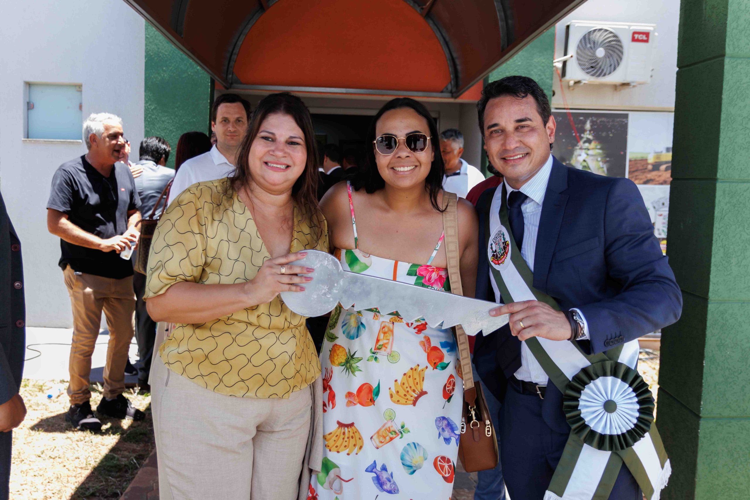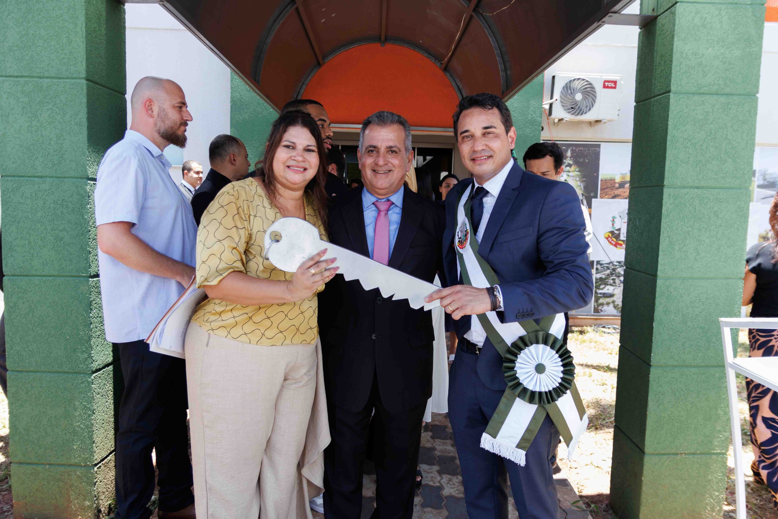 Por volta das 10h30, teve início a Cerimônia de Transmissão de Cargo em frente ao Paço Municipal. Após formação do espaço das autoridades e execução dos hinos oficiais do Brasil, Estado e Município, para cumprir a Lei Orgânica do Município, a ex-prefeita Rhaiza Matos entregou a chave simbólica da Prefeitura e passou a Faixa Oficial ao prefeito Rodrigo Sacuno. Concomitantemente, o cargo de vice-prefeito foi transmitido do ex-vice-prefeito Márcio Araguaia para Telma Minari.