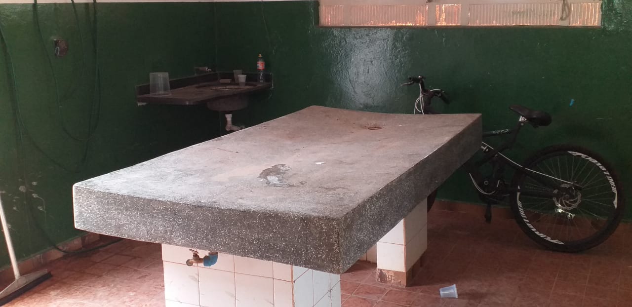 - Mesa para necropsia, em sala do Cemitério Municipal.
