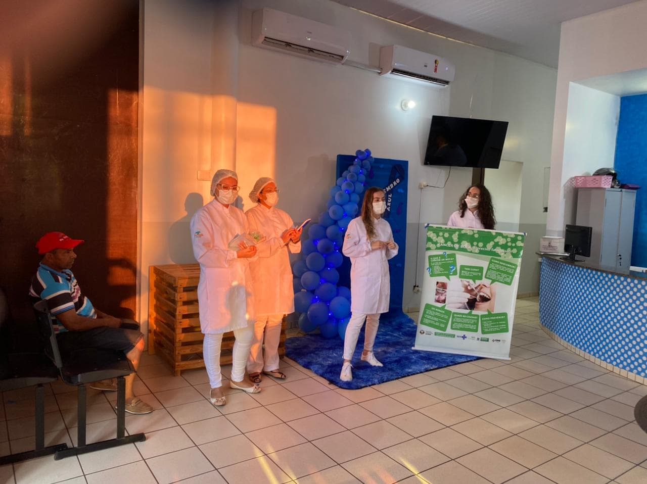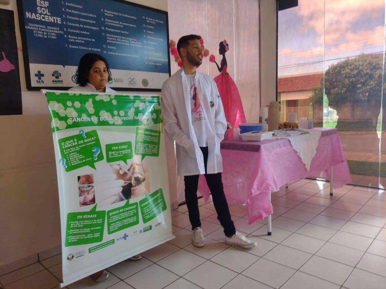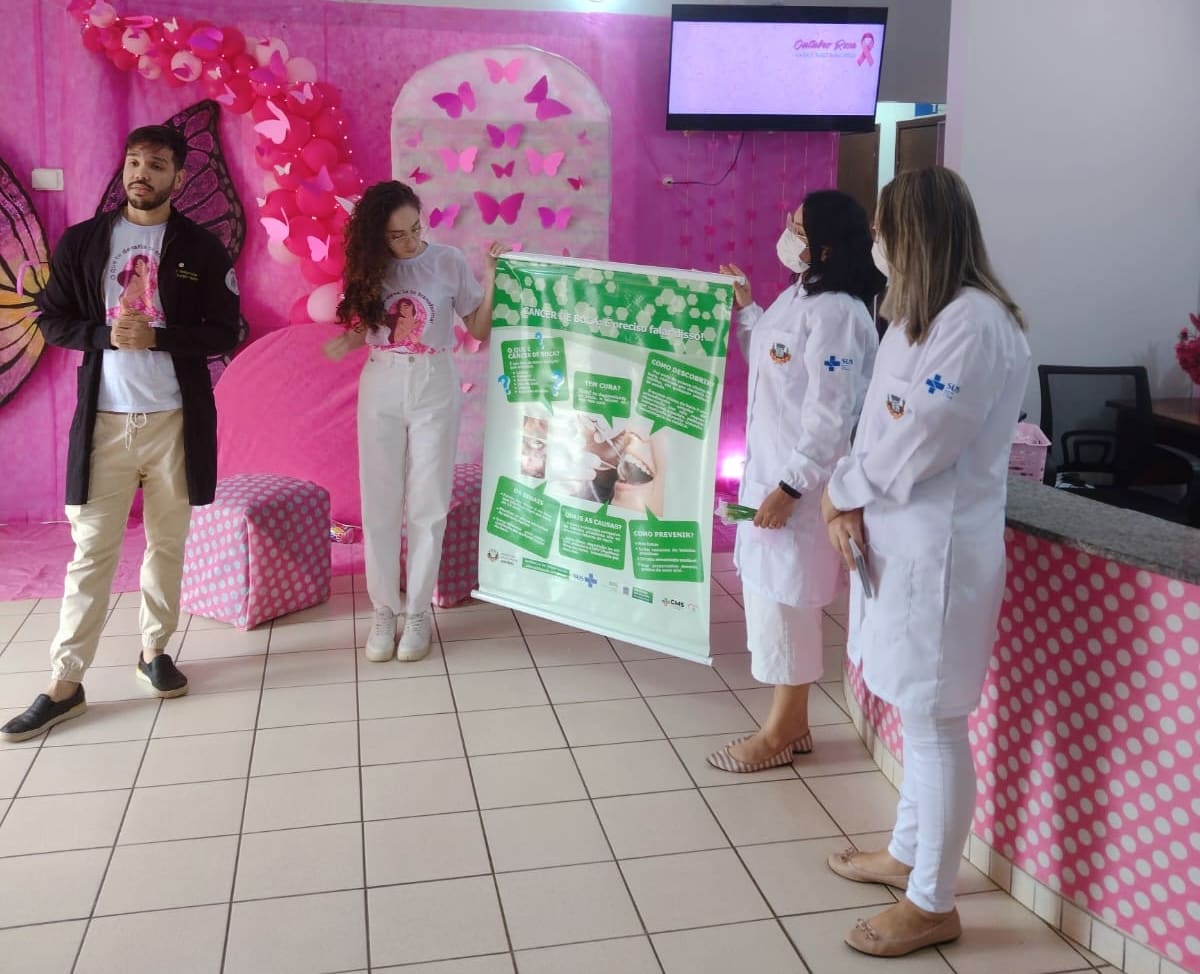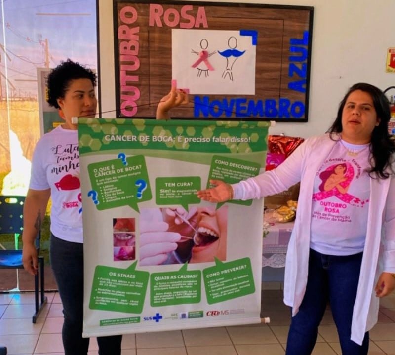 Nos meses do Outubro Rosa e Novembro Azul as equipes de saúde bucal trabalharam em parceria com as ESFs, em horários normais e horários estendidos (noturnos), além doa atendimentos odontológicos, realizando a campanha de Prevenção do Câncer Bucal, com orientações coletivas e individuais sobre higiene bucal, palestras sobre a prevenção do câncer de boca e também realizando os exames clínicos/físicos por cirurgiões-dentistas, procurando identificar algum sinal de indicação de lesão pré ou cancerizável e encaminhando para o Centro de Especialidades Odontológicas (CEO II) para biópsia, quando detectadas lesões suspeitas, com o objetivo do diagnóstico precoce da doença.