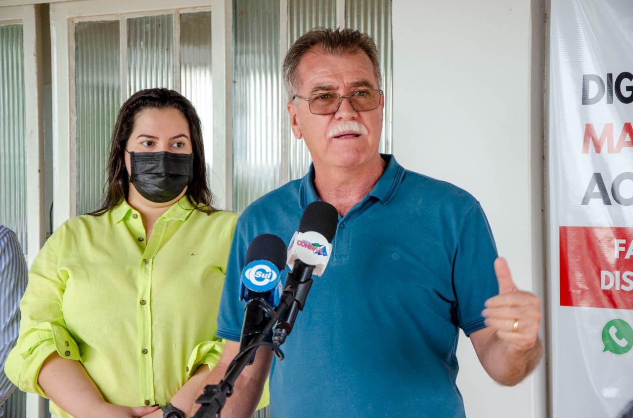 Prefeita Rhaiza Matos destaca a importância da Sede Administrativa do Abrigo de Cães e Gatos, durante inauguração do escritório no recinto do Parque de Exposições de Naviraí. Foto: Júlio Fernando