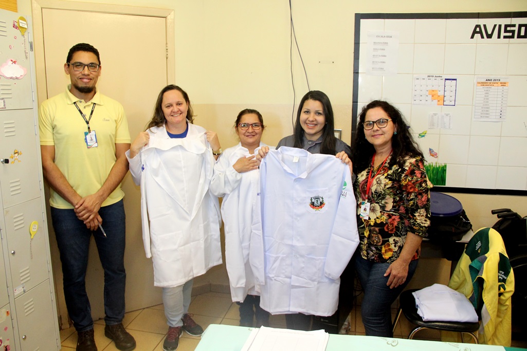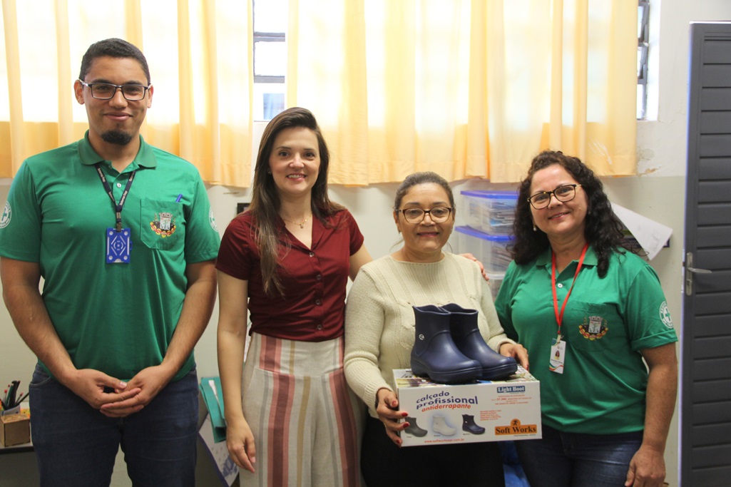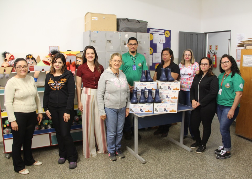 Também foram entregues calçados profissionais antiderrapantes para todas as auxiliares dos CEIS, de limpeza das escolas, vale lembrar que no ano passado foi realizado uma ação nas cozinhas onde foram fornecidos os calçados profissionais, avental e luvas para pegar panelas quentes.
