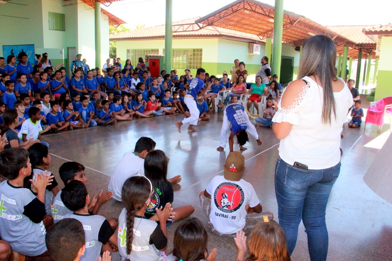 Durante três meses, alunos das turmas do terceiro ao quinto ano da Escola Municipal José Carlos da Silva, do Jardim Paraíso, em Naviraí, trabalharam a linguagem teatral e a expressaram musicalidade e ficaram mais desinibidos com a prática da capoeira. Foi um experimento com boa aceitação de sociabilidade com resultados notados pelos professores em sala de aula.